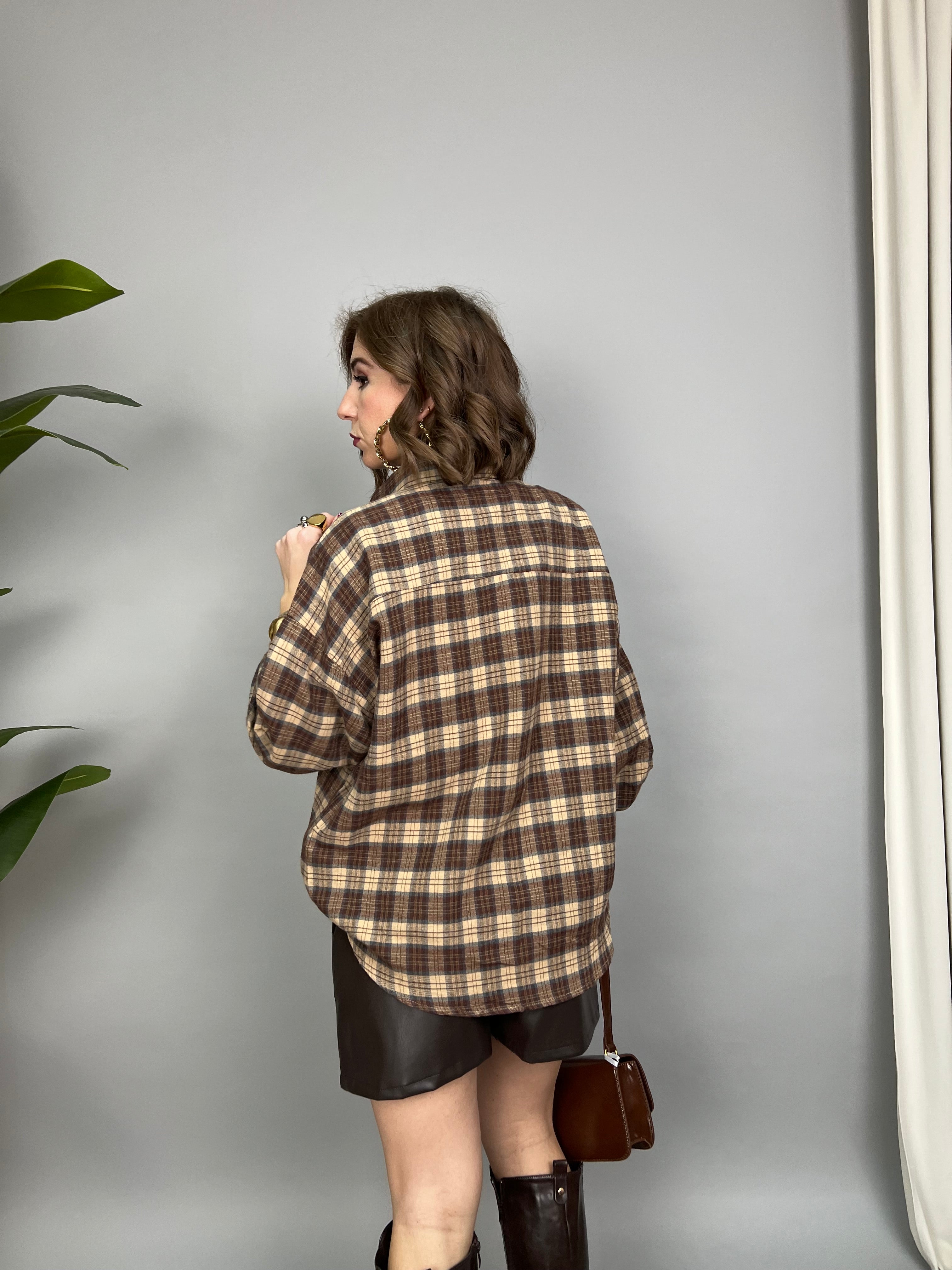 Camicia in flanella dalla vestibilità molto comoda. Il modello presenta una chiusura con bottoni a pressione, maniche ampie a palloncino e una tasca frontale.