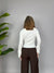 Maglioncino elasticizzato con rouches frontali e maniche a campanella.