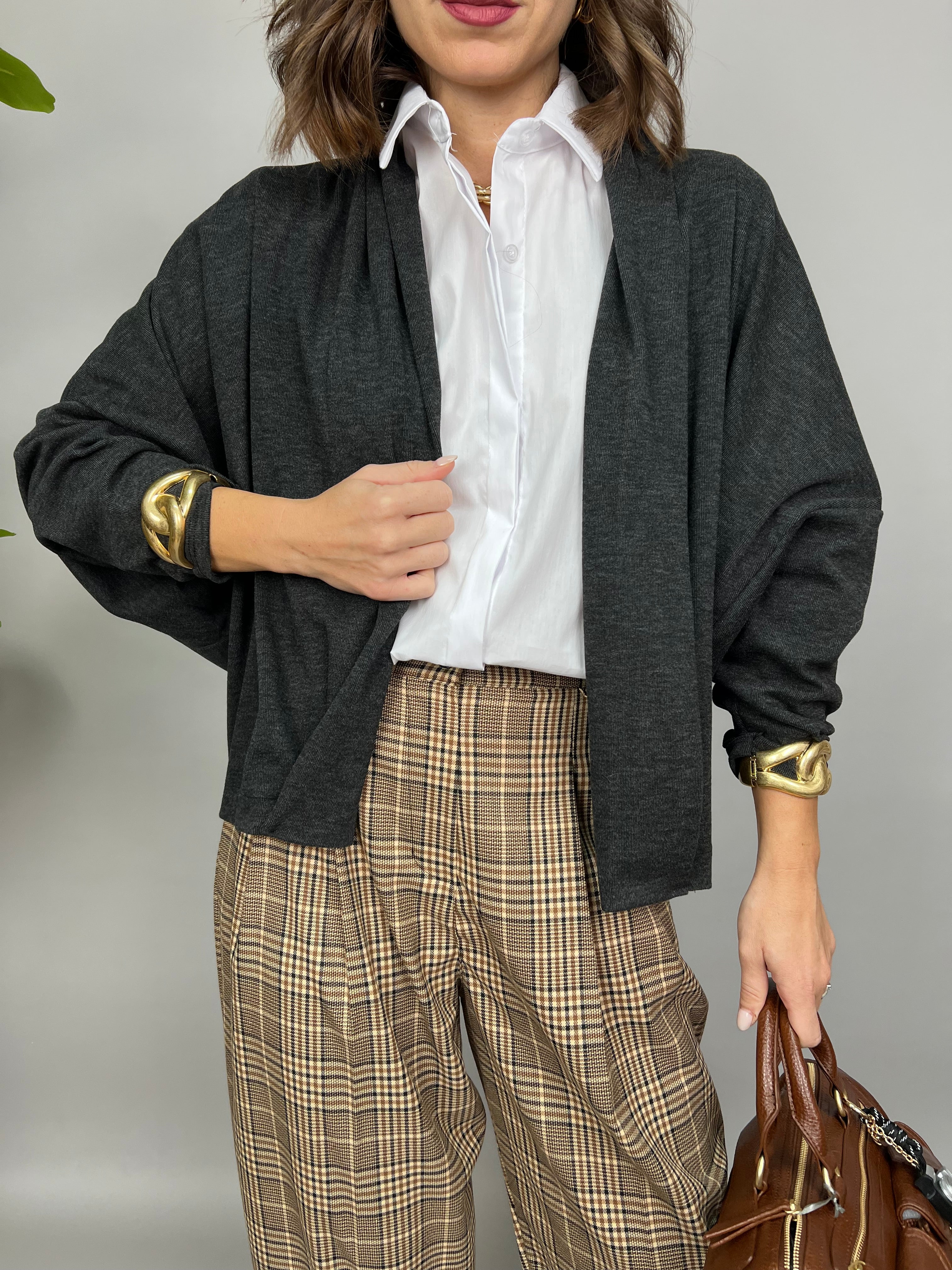 Cardigan in tessuto morbido al tatto e caldo. Il modello ha una manica comoda e non presenta chiusura