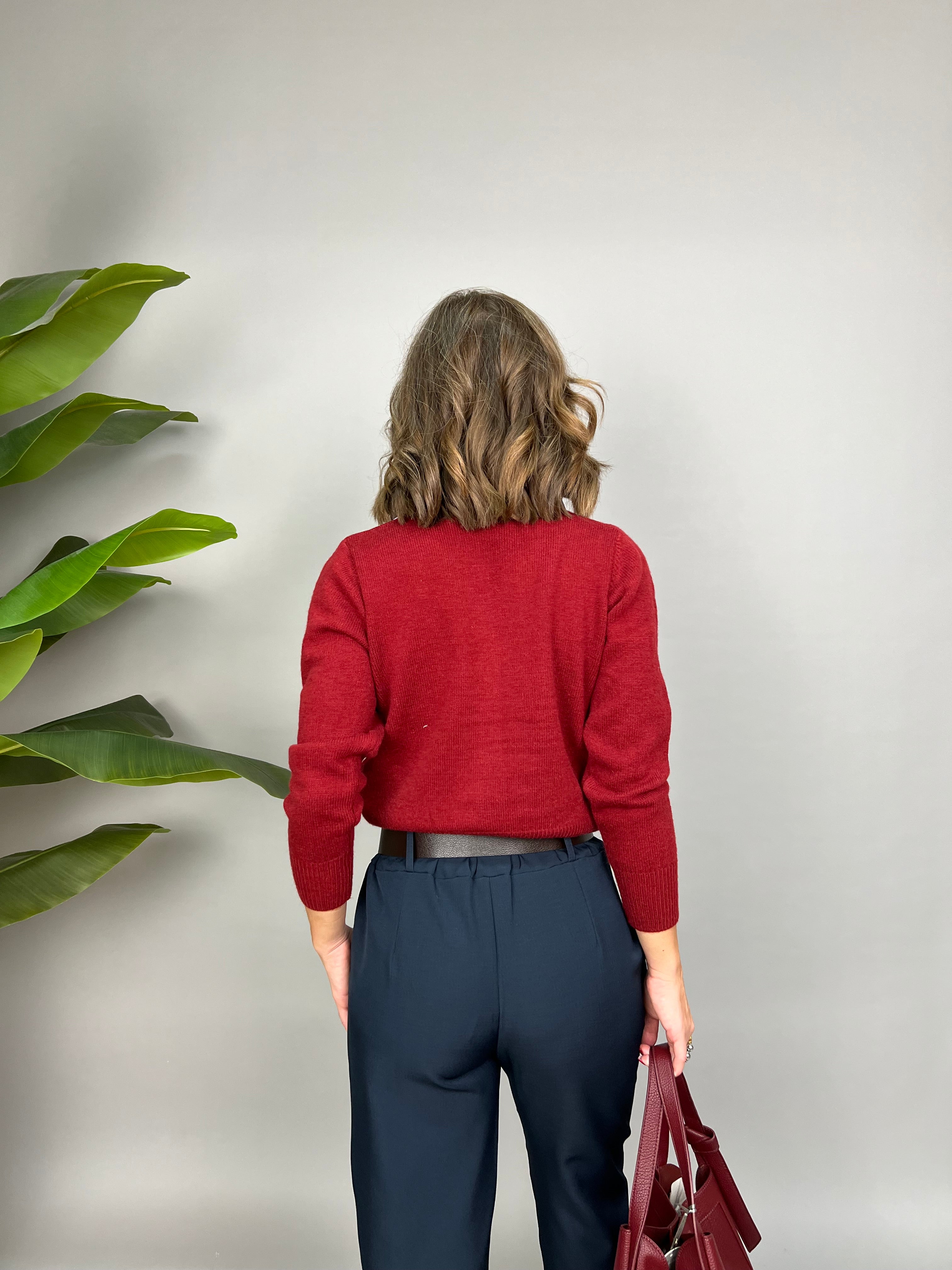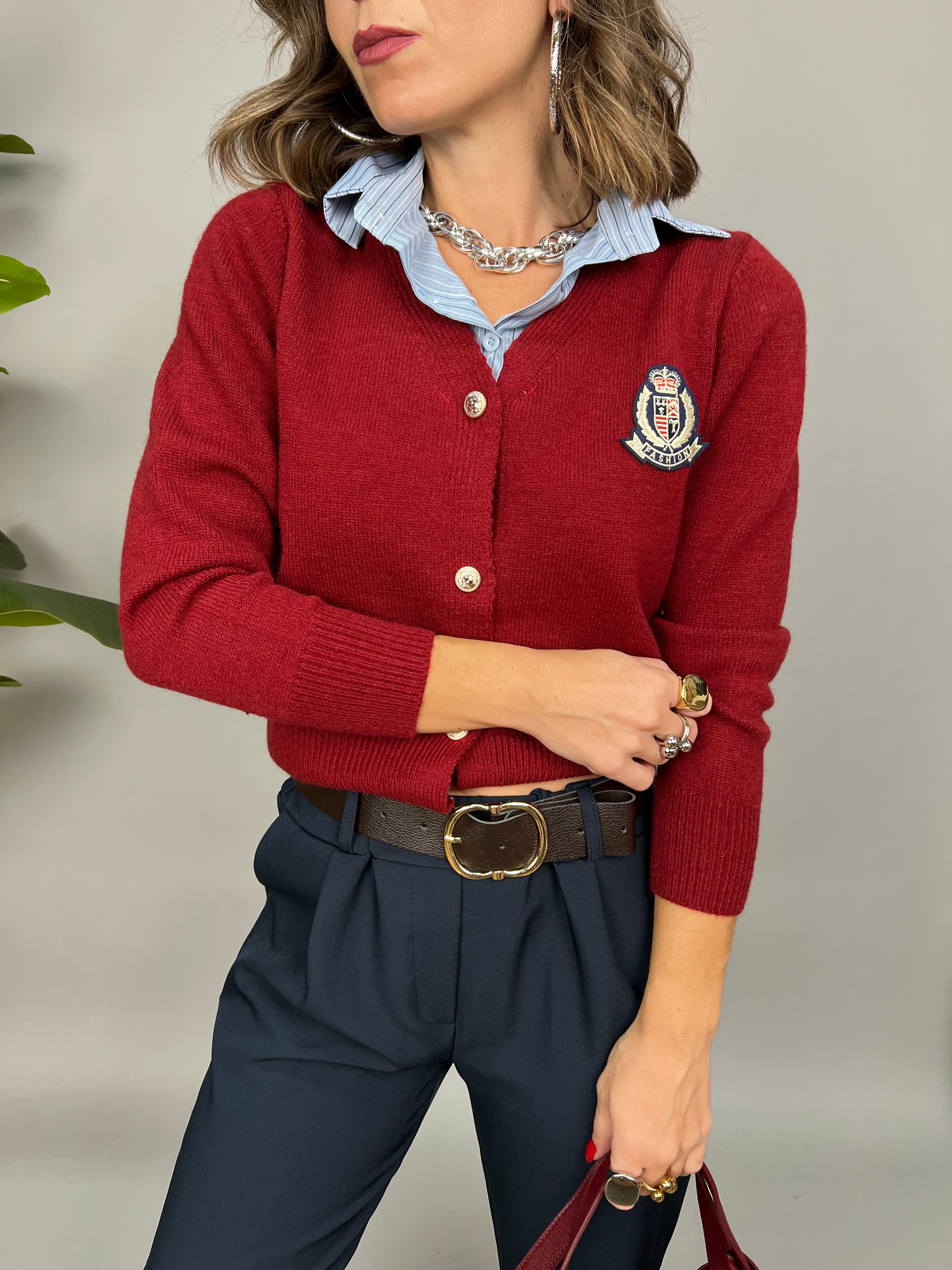 Cardigan comodo con effetto camicia sulla scollatura. Presenta una chiusura con bottoni