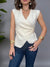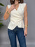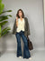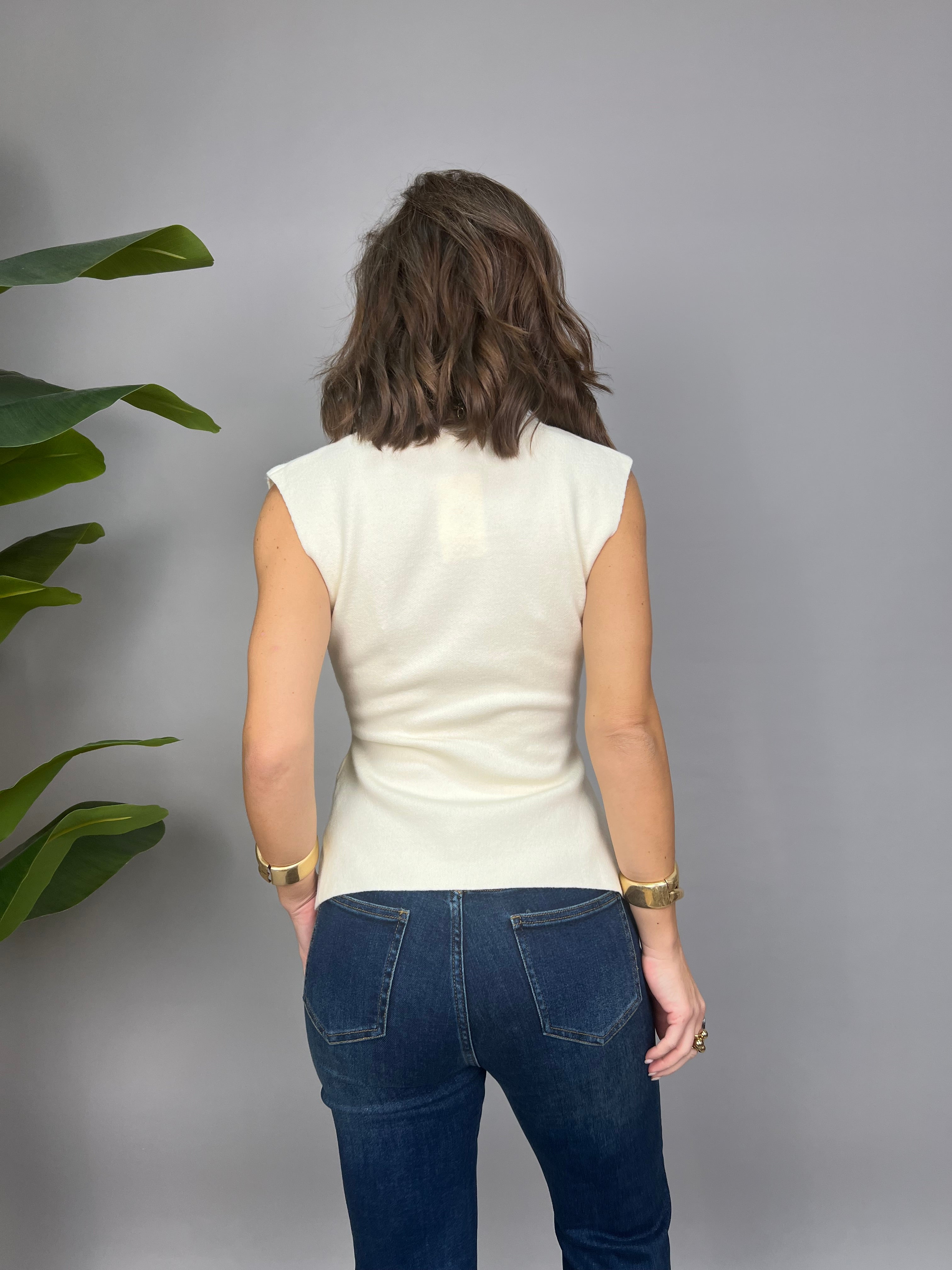 Gilet in maglia calda avvitato con incrocio frontale e dettaglio laterale.