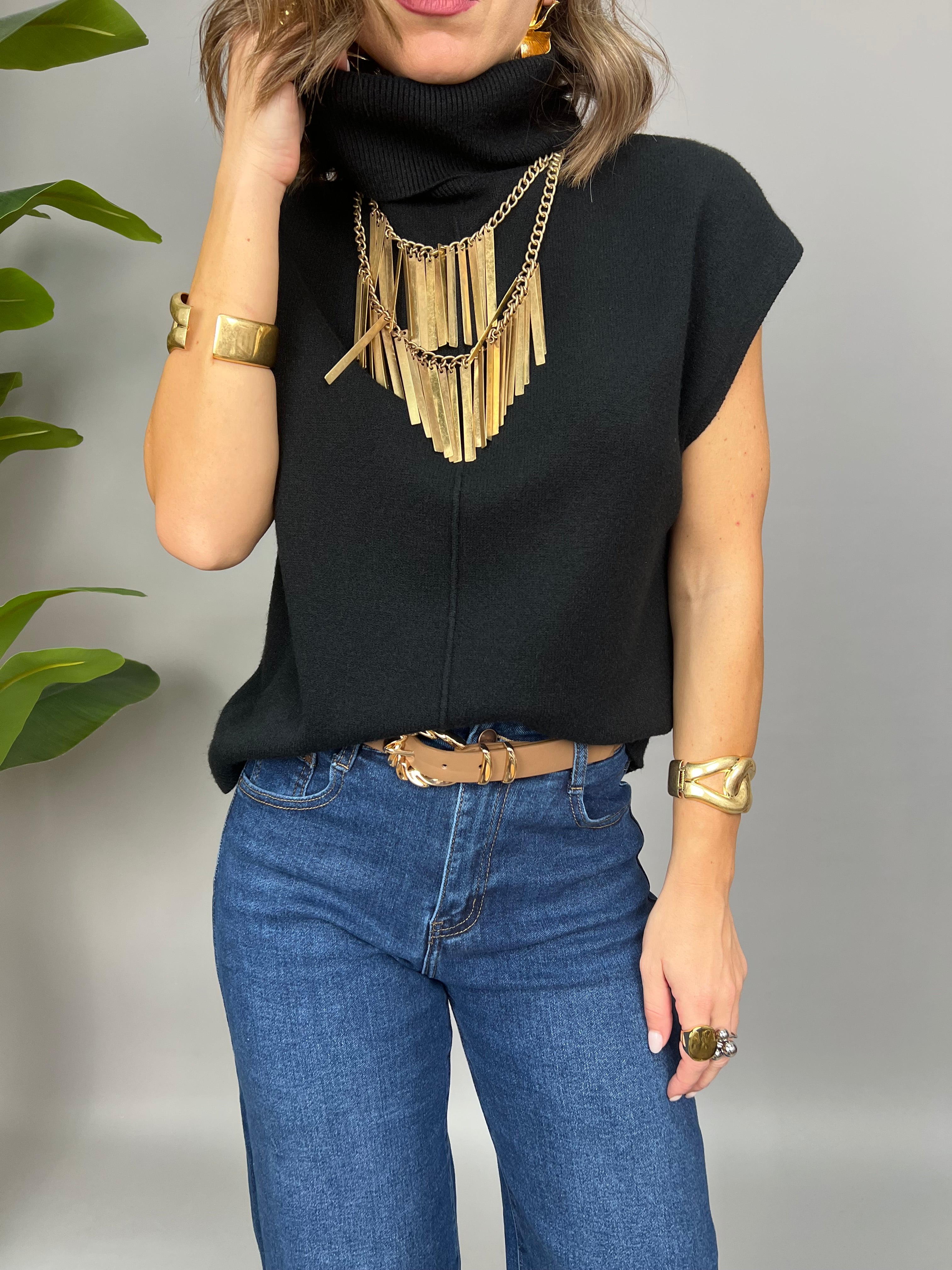 Gilet in maglia calda con collo alto morbido e manica scesa. La vestibilità è comoda