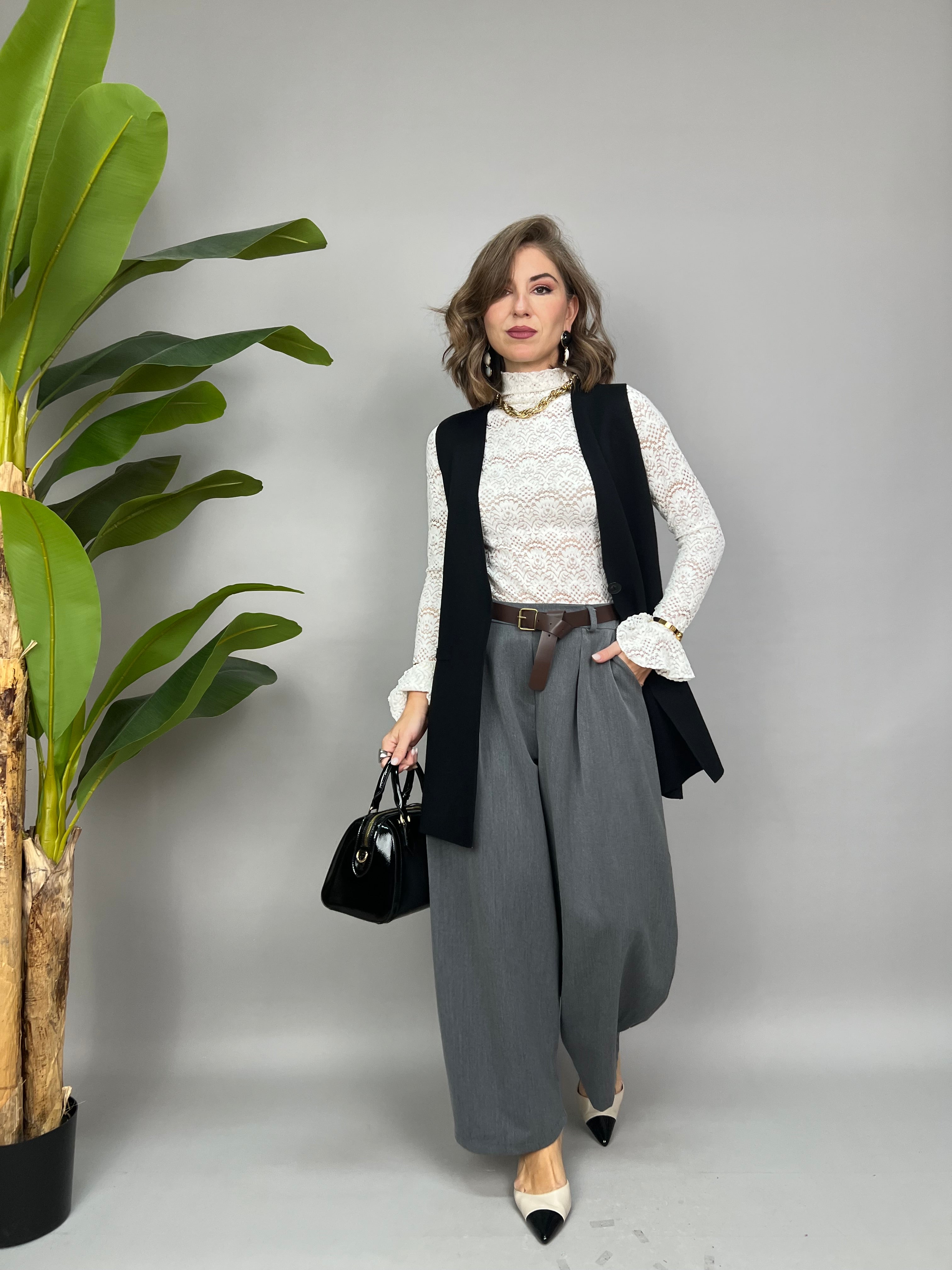 La modella è alta 1,65 e porta la taglia 40/42 (S/M)