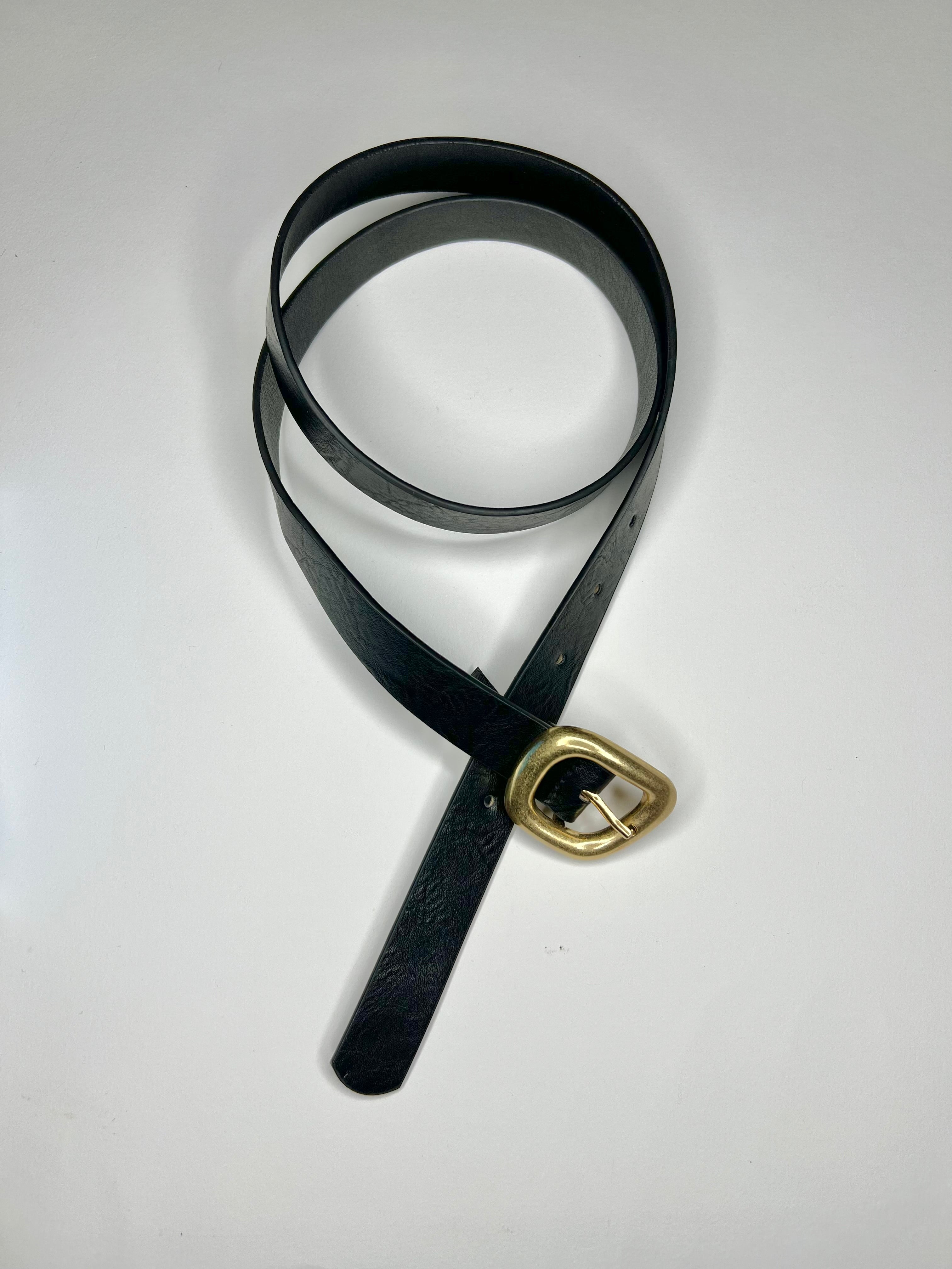 Cinta in ecopelle. Dotata di fibbia squadrata asimmetrica, in metallo con finitura dorata. Chiusura regolabile.