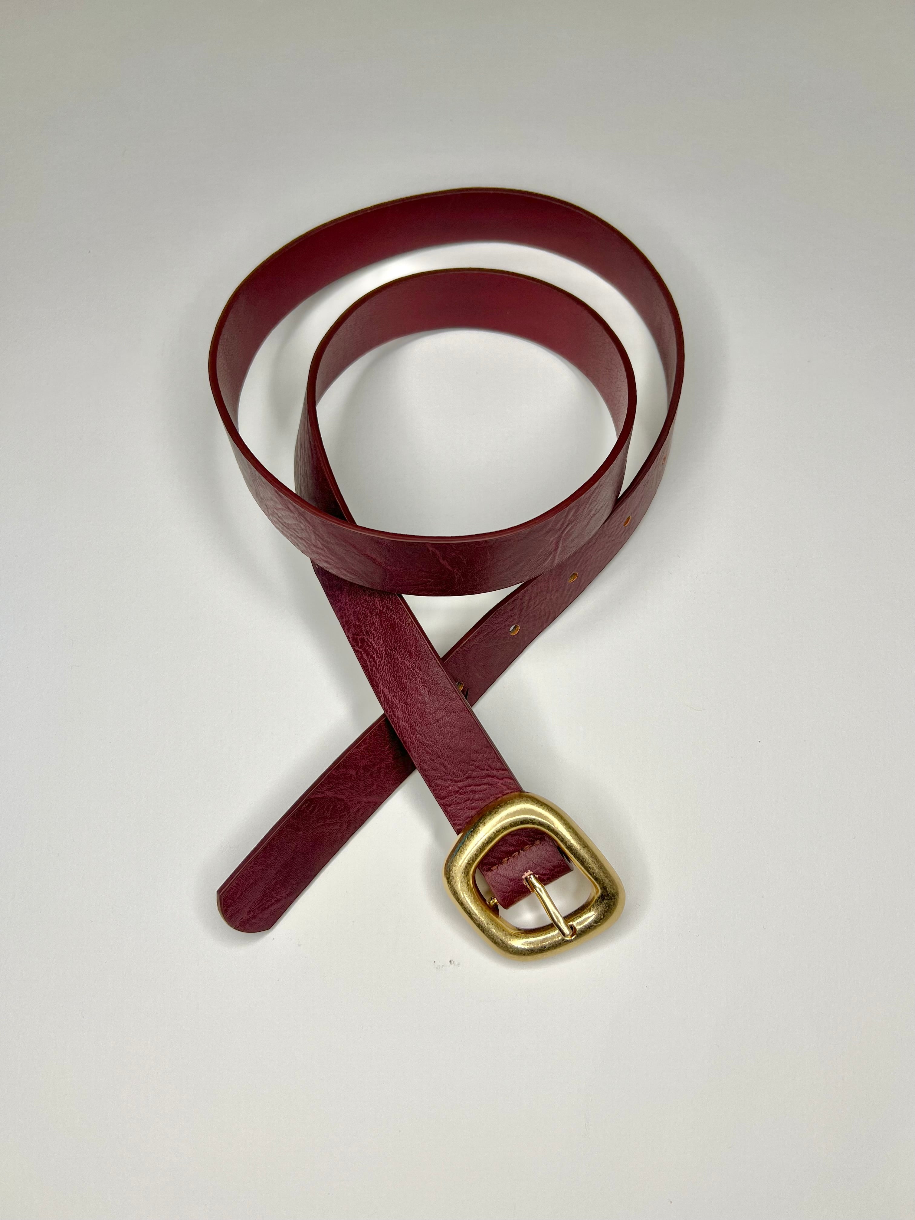 Cinta in ecopelle. Dotata di fibbia squadrata asimmetrica, in metallo con finitura dorata. Chiusura regolabile.