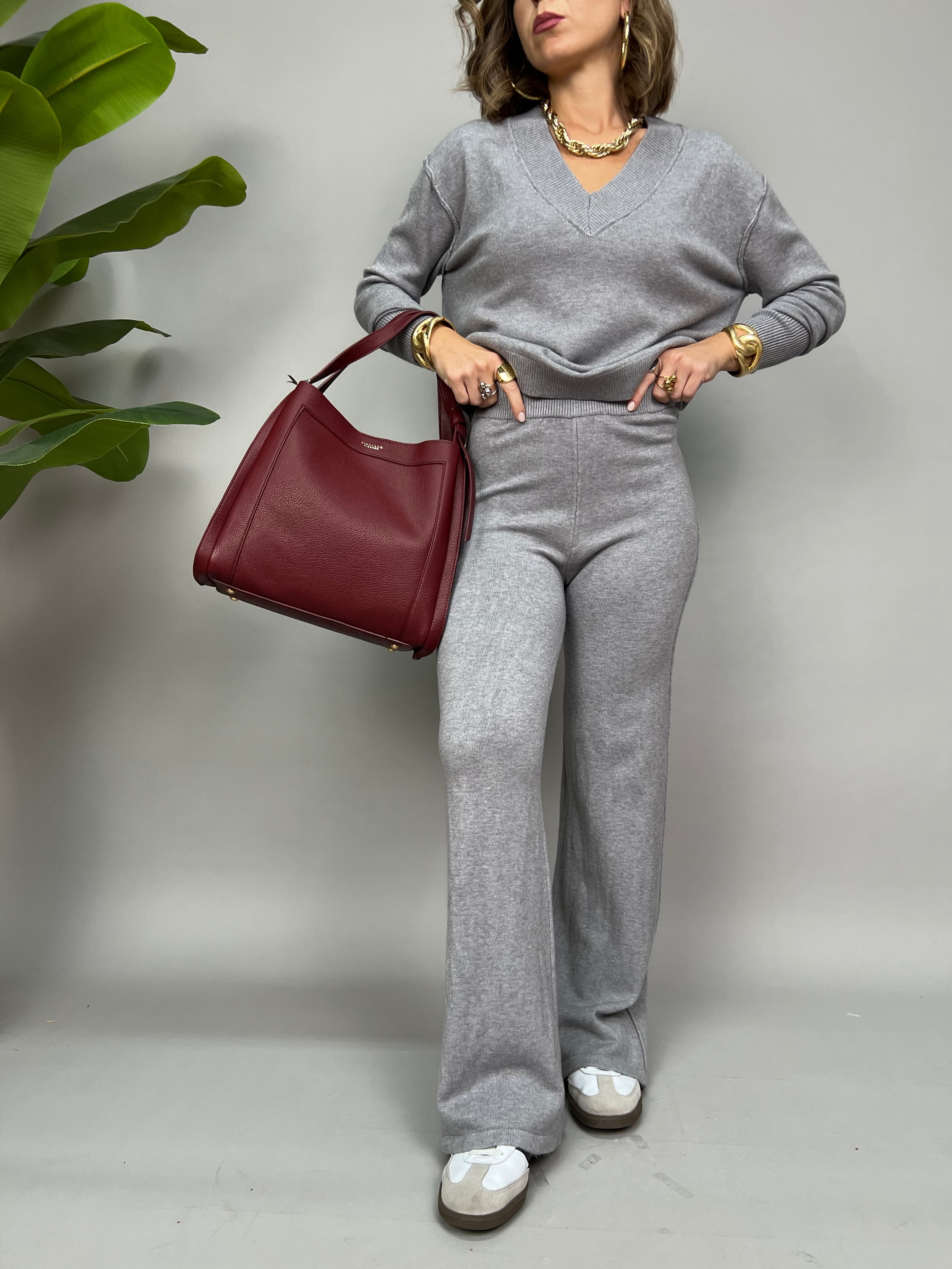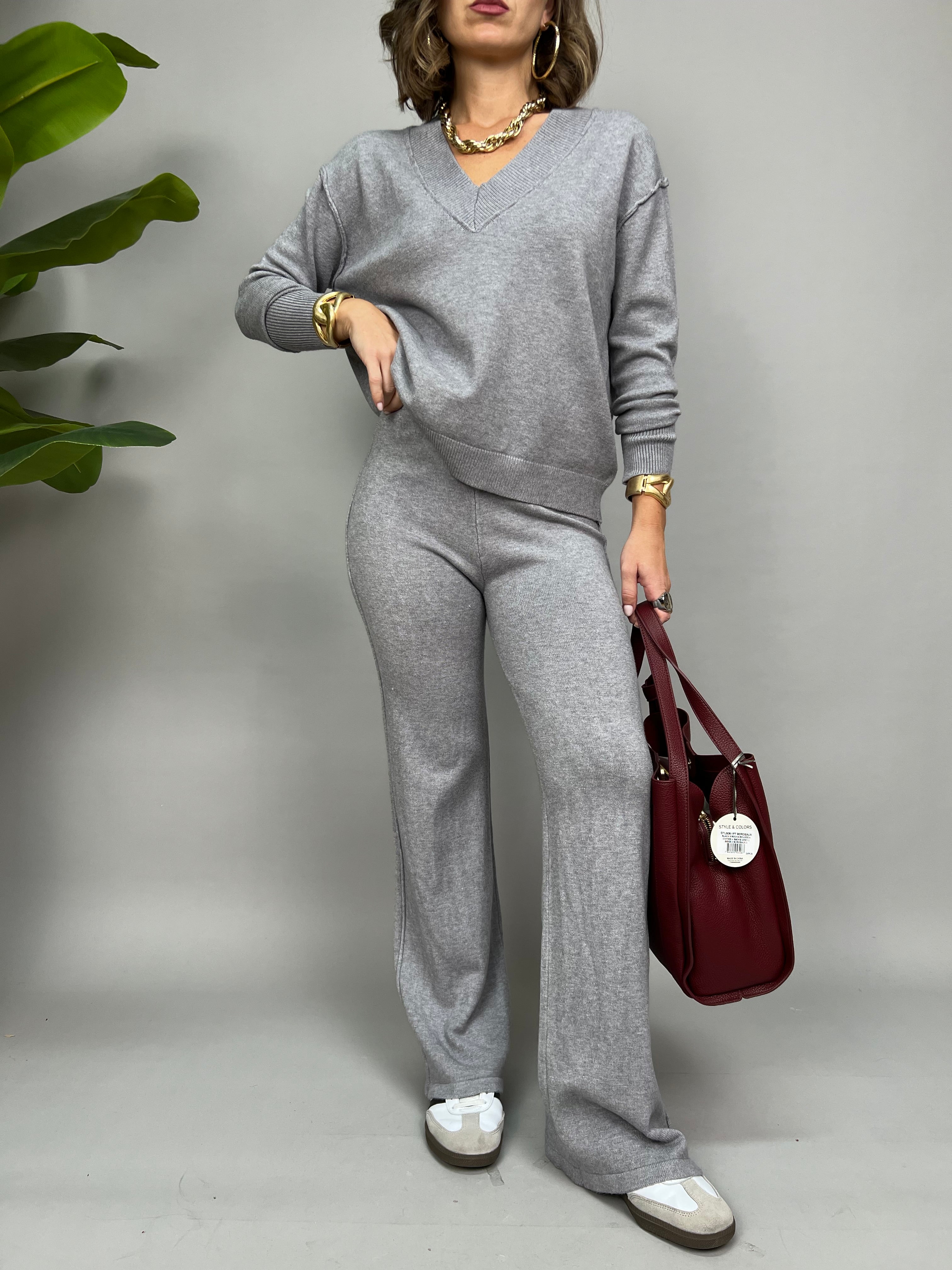 Set coordinato composto da maglioncino comodo con scollatura a V e pantalone con elastico in vita