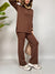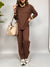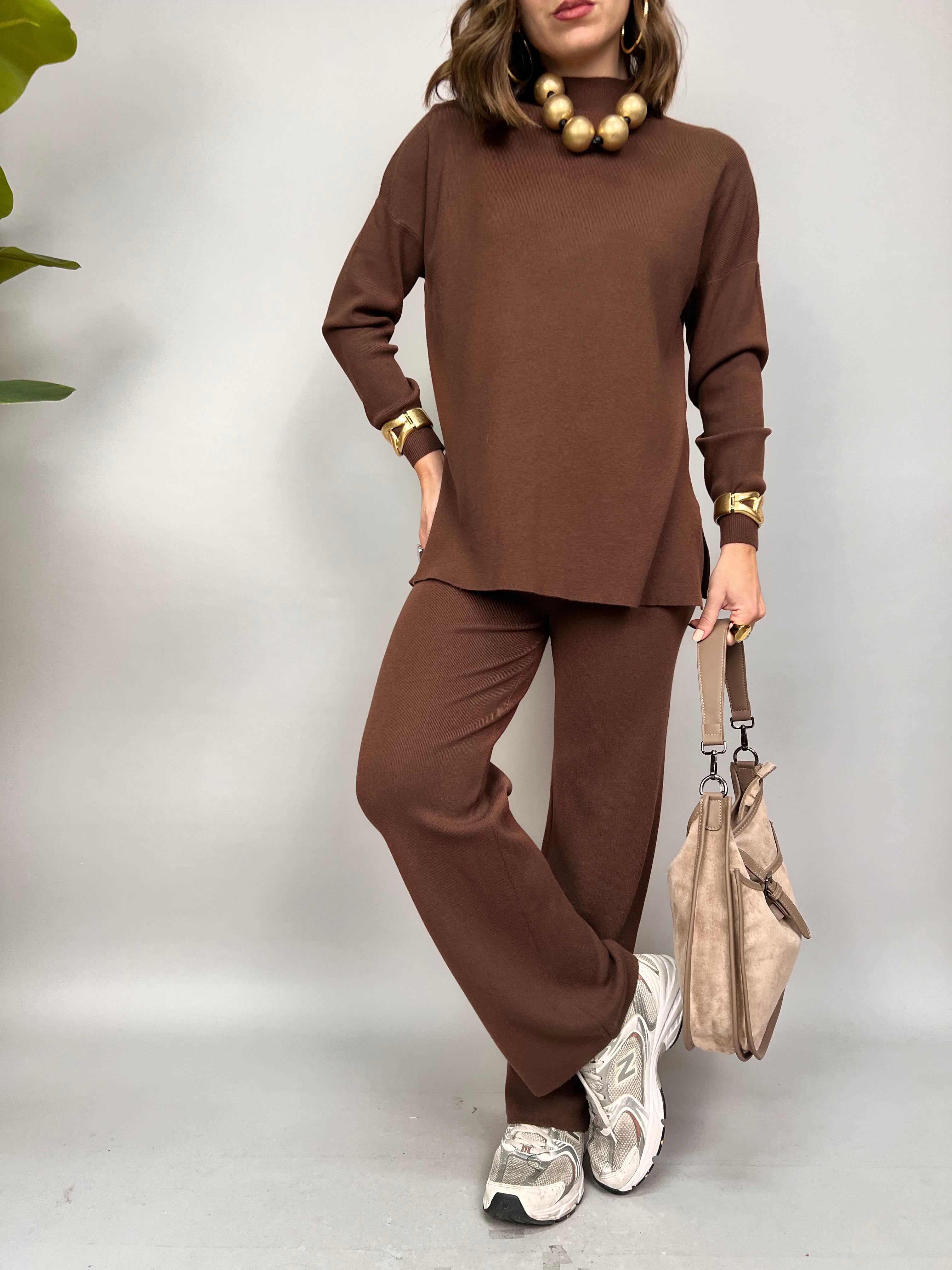 Set coordinato composto da maglioncino comodo con collo medio e spacchetti laterali e pantalone con elastico in vita