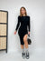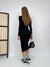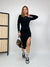Vestito aderente in maglia con costine. La scollatura è leggermente a barchetta e spacco laterale. Il tessuto è elasticizzato.