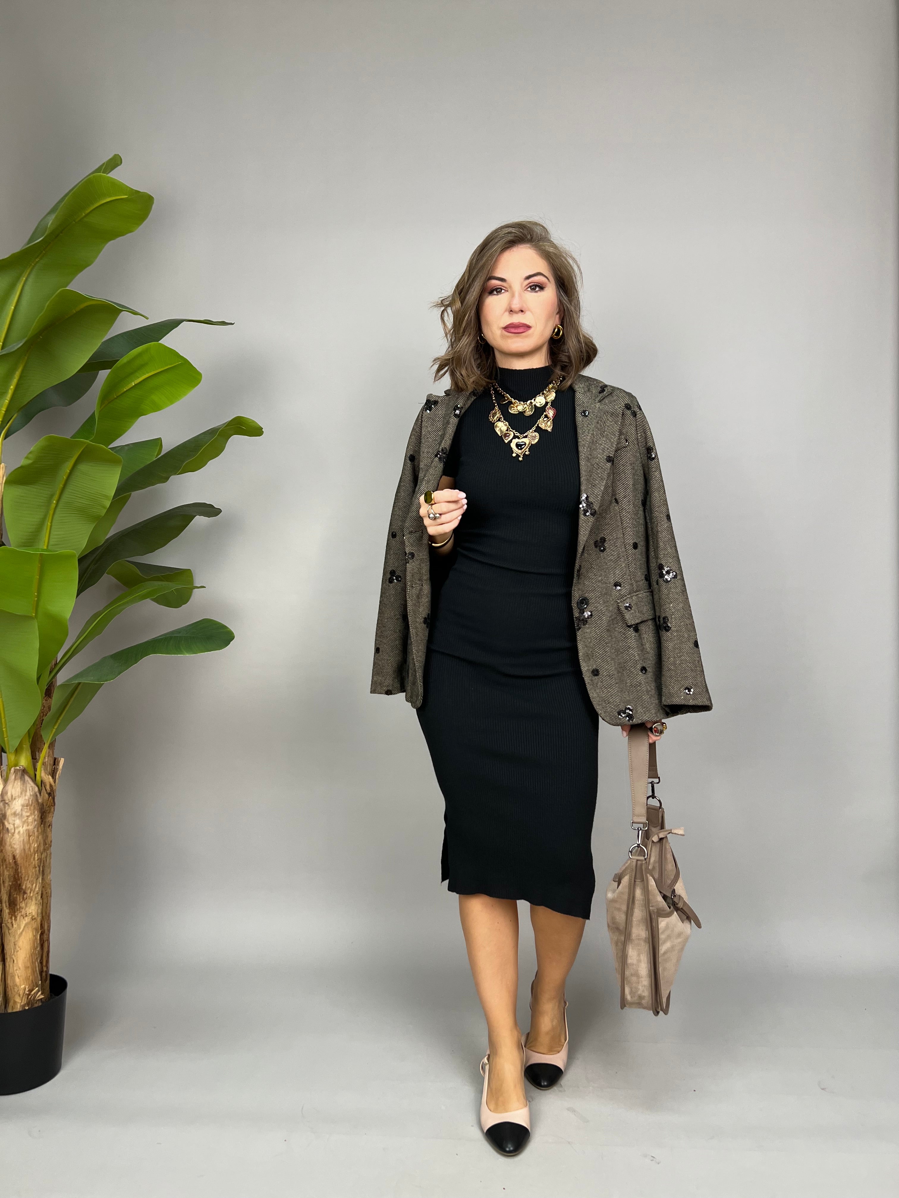 La modella è alta 1,65 e porta la taglia 40/42 (S/M)