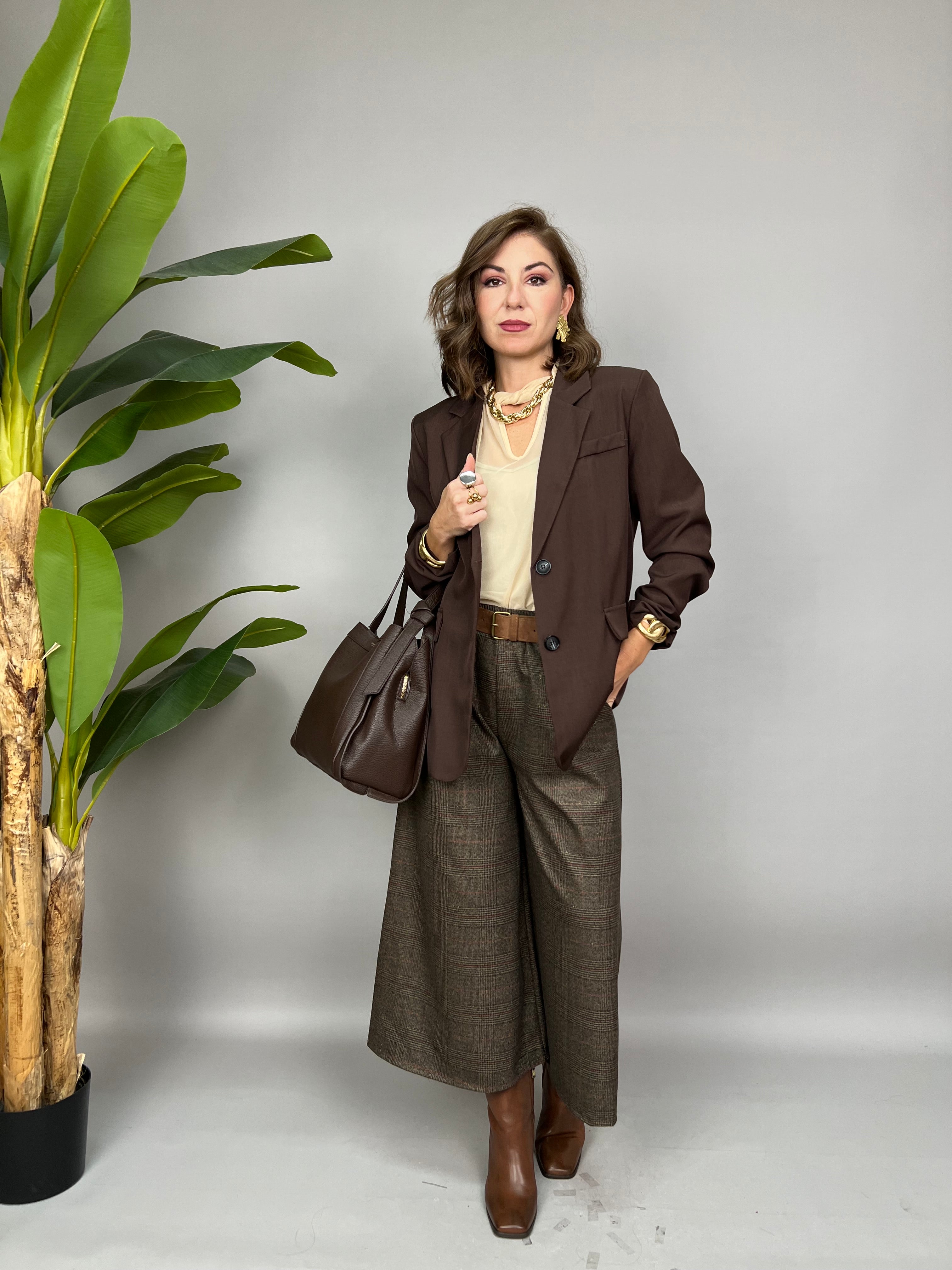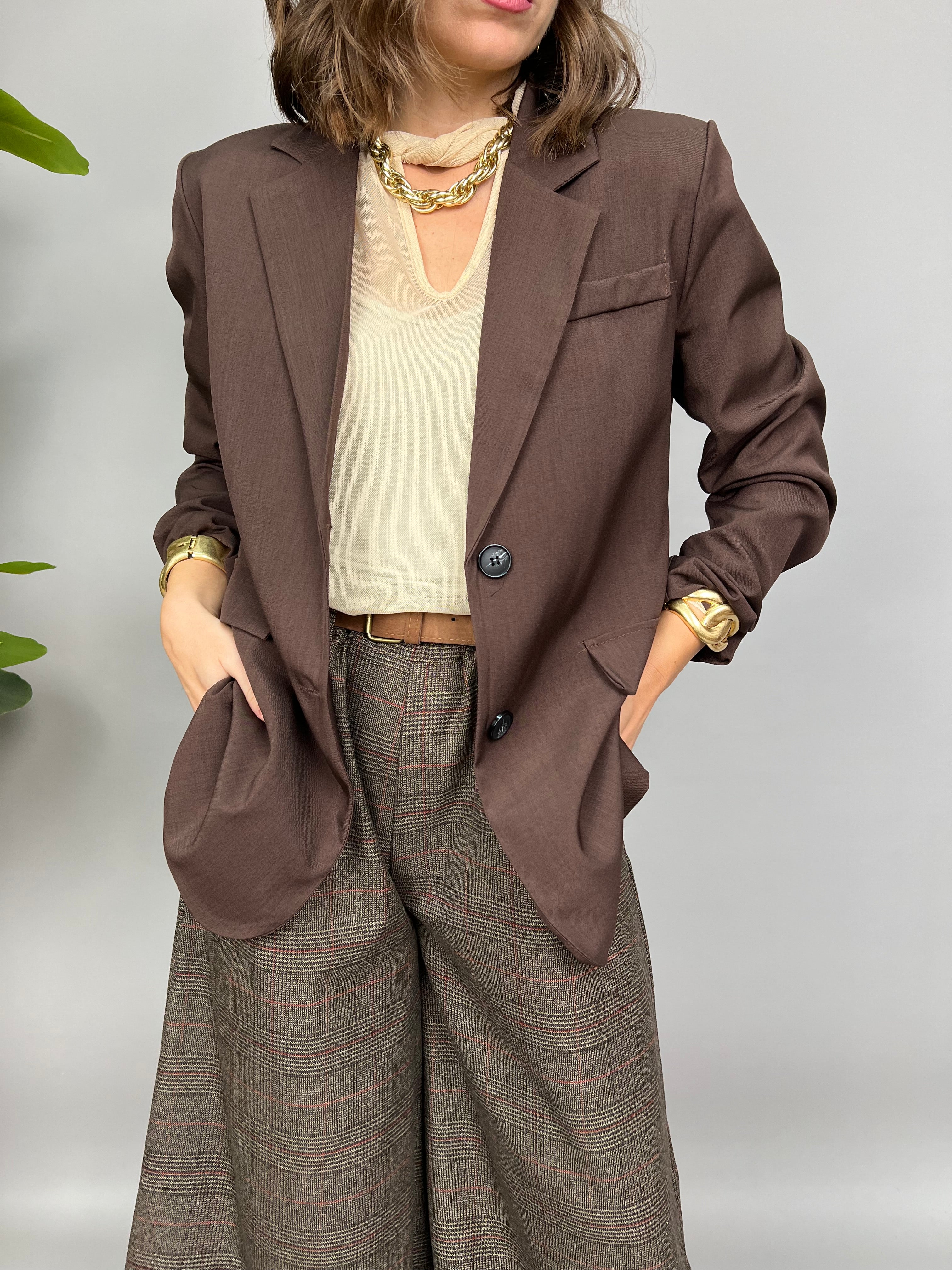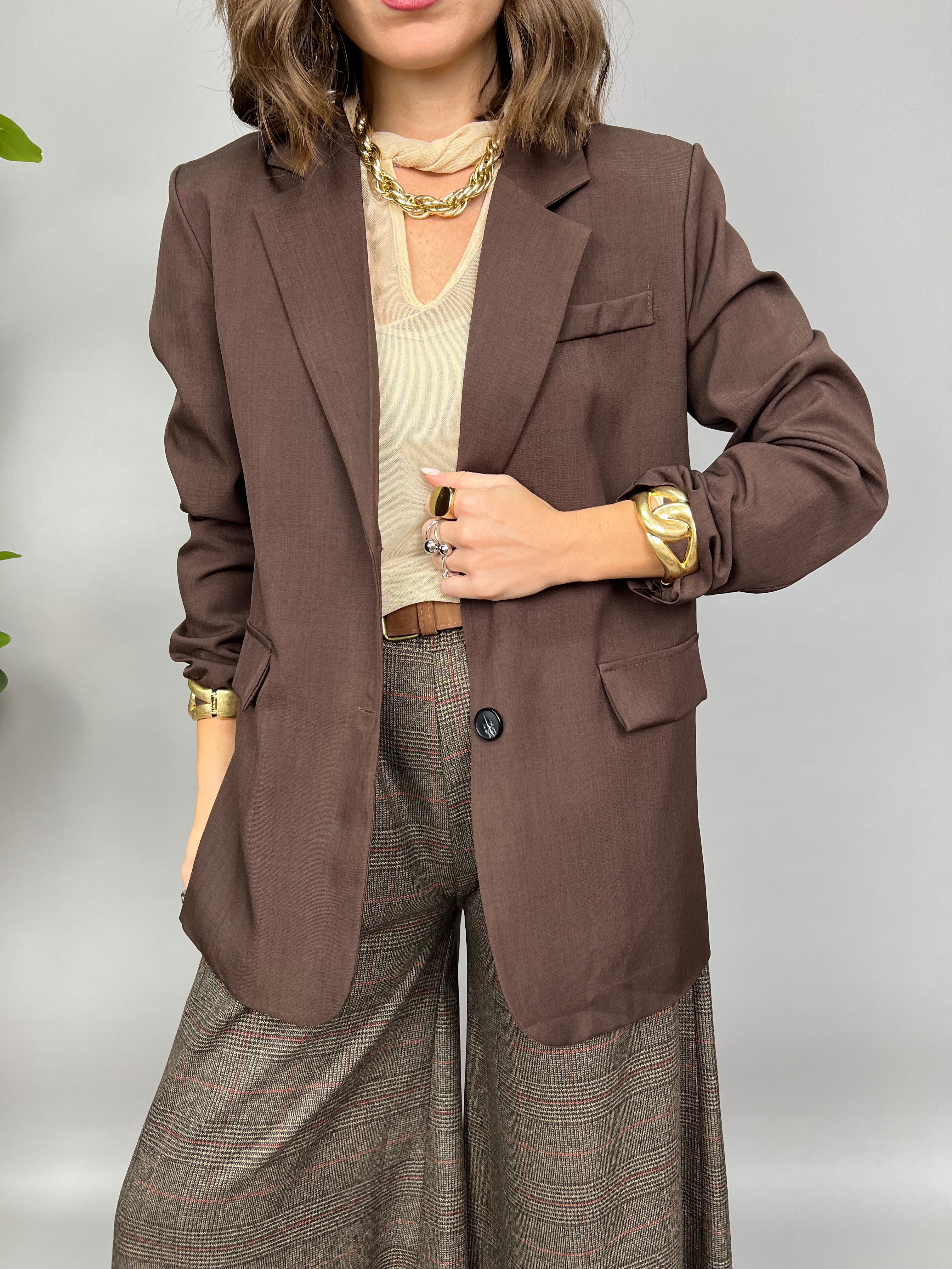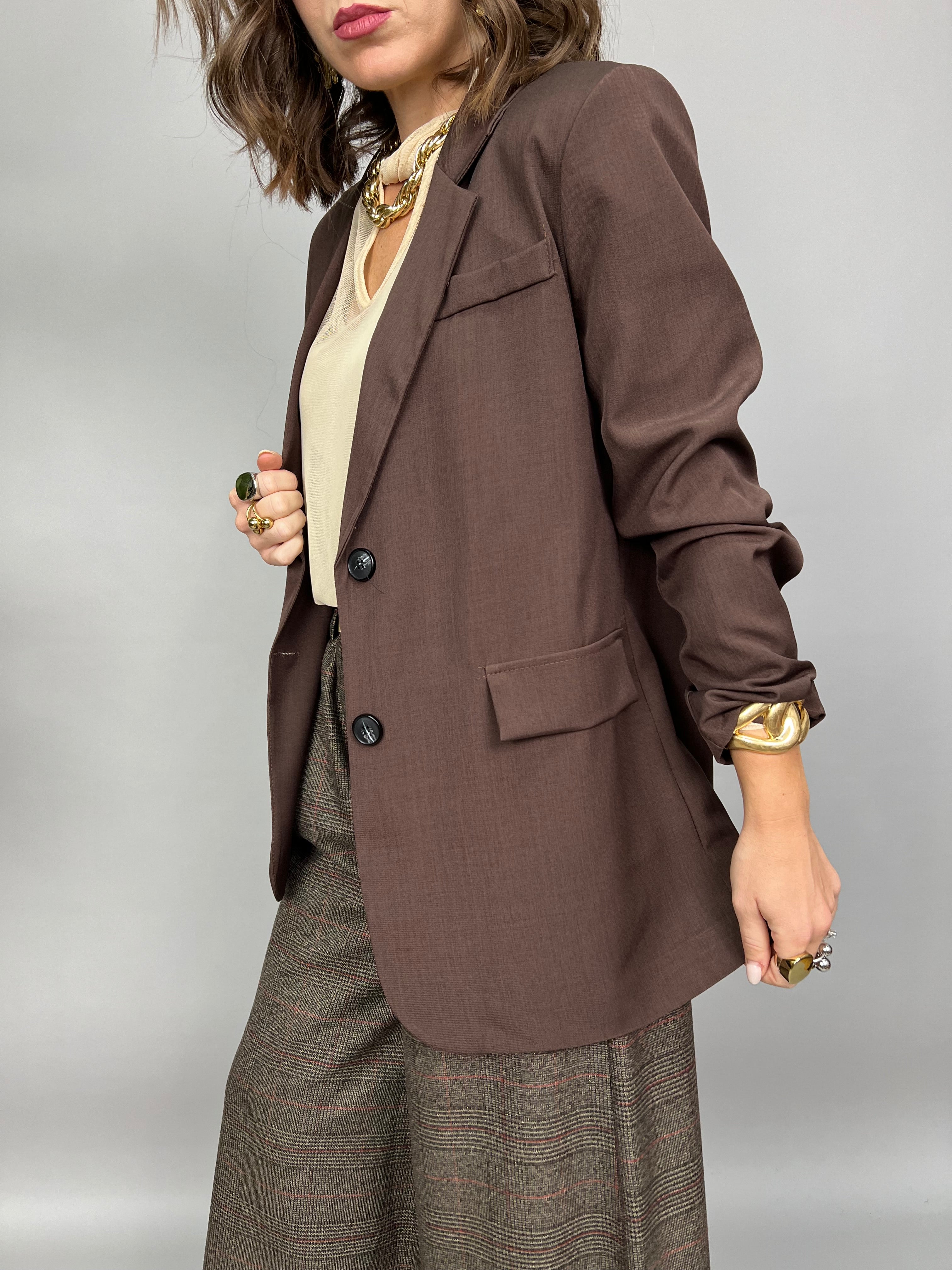 Giacca semi - strutturata con spalline di supporto e taglio dritto. E' presente una fodera interna e le maniche hanno una lunghezza regolare.