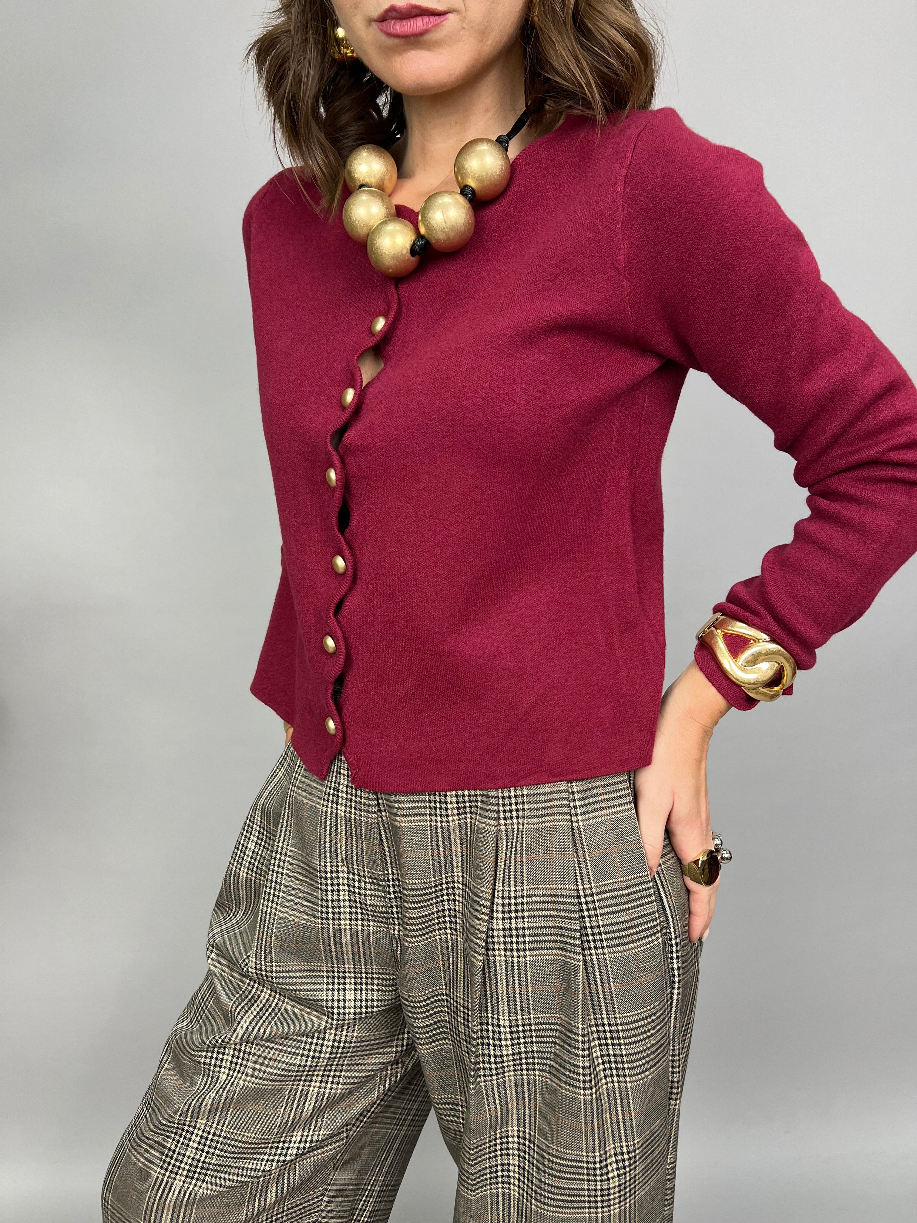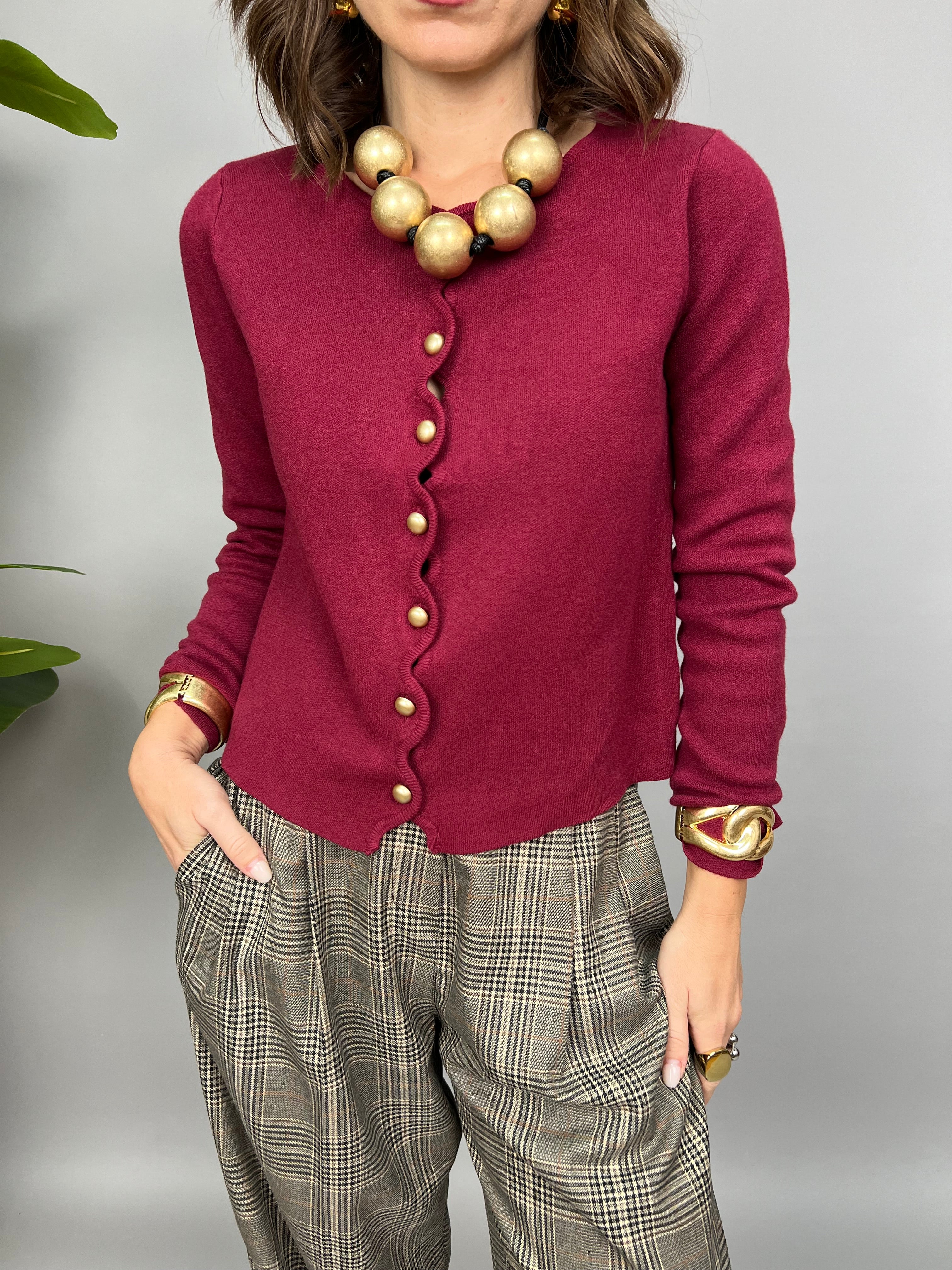 Giacchetto modello "Chanel" in maglia doppia. Sulla parte frontale il dettaglio ondulato accompagna la chiusura a bottoni.