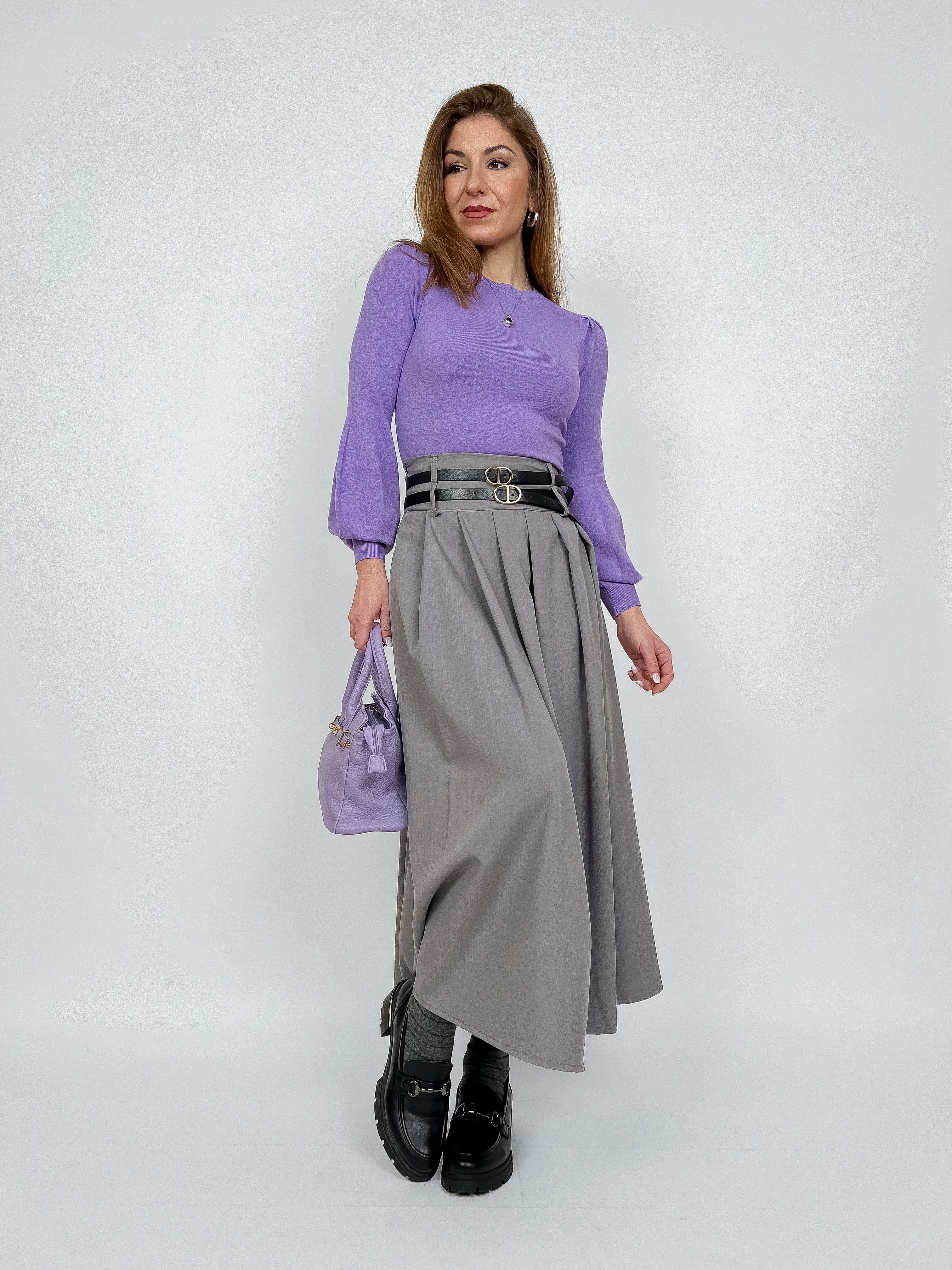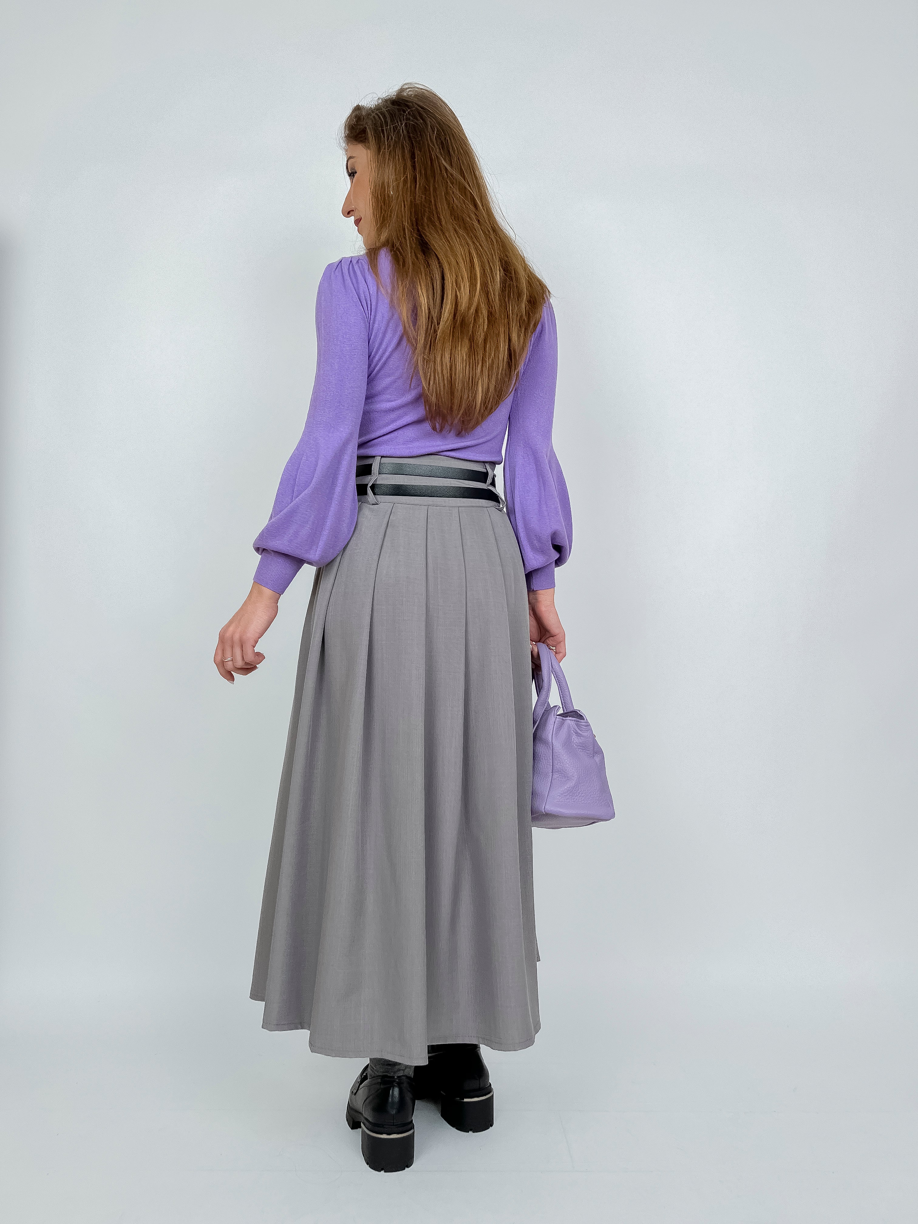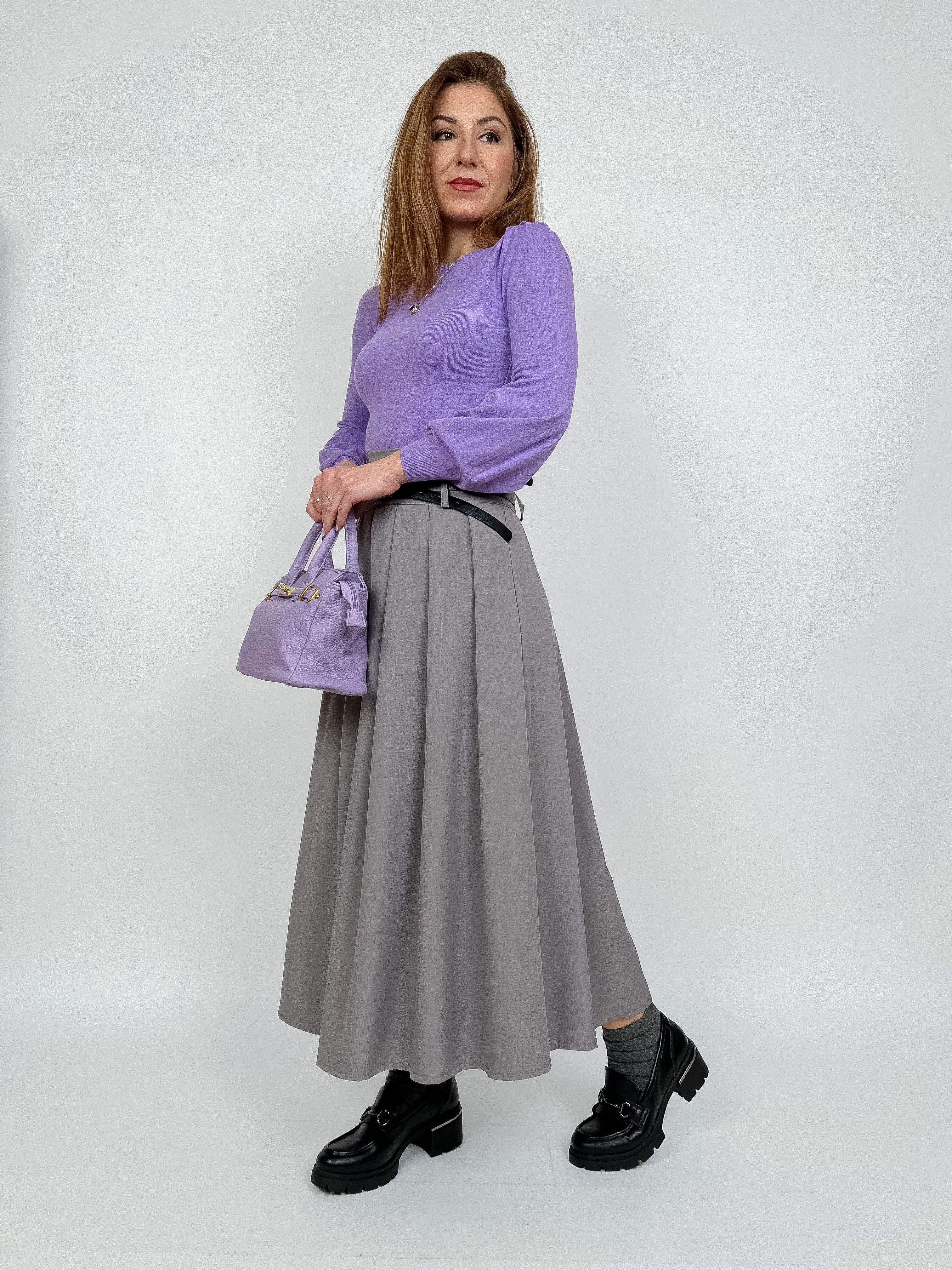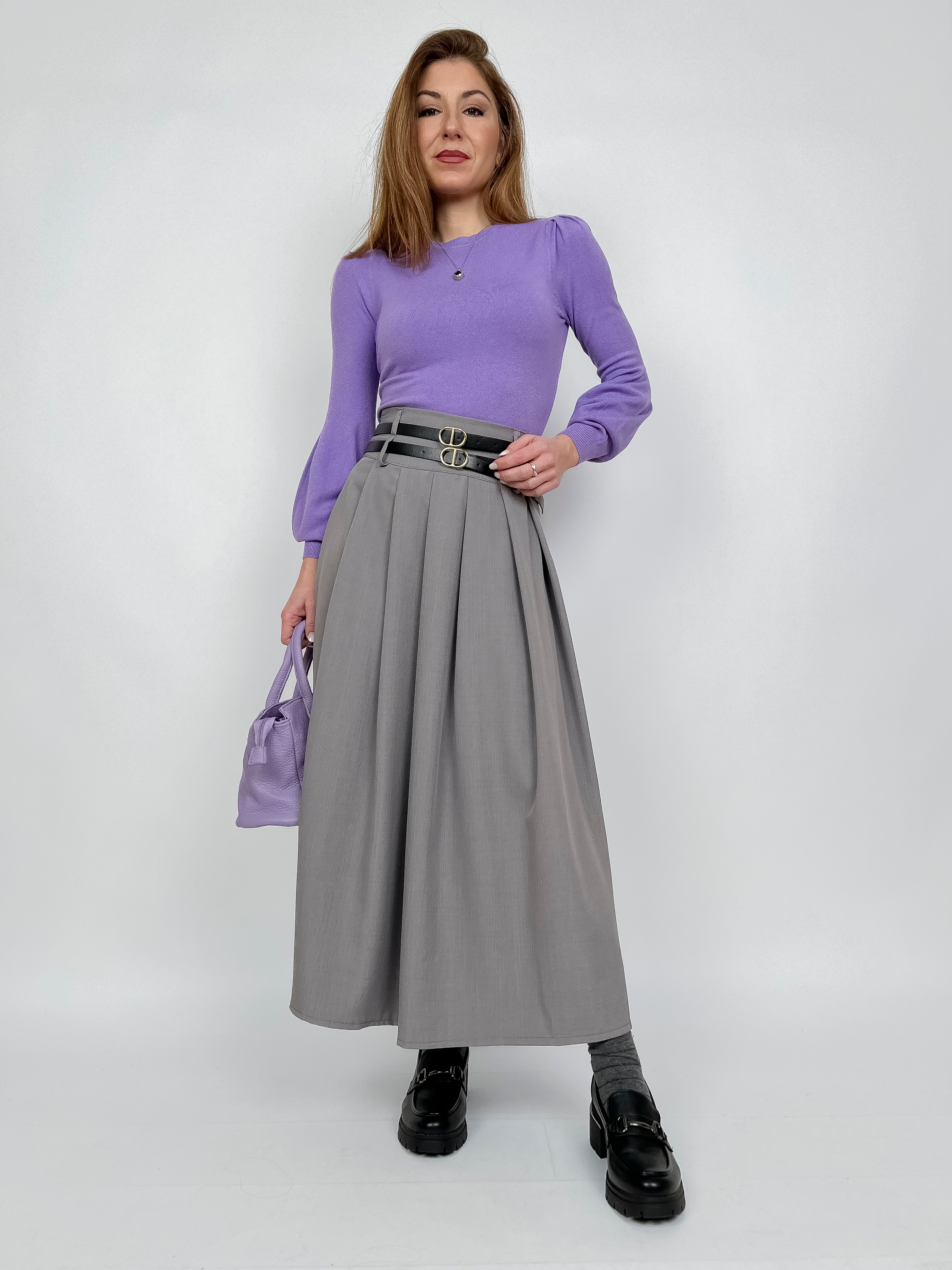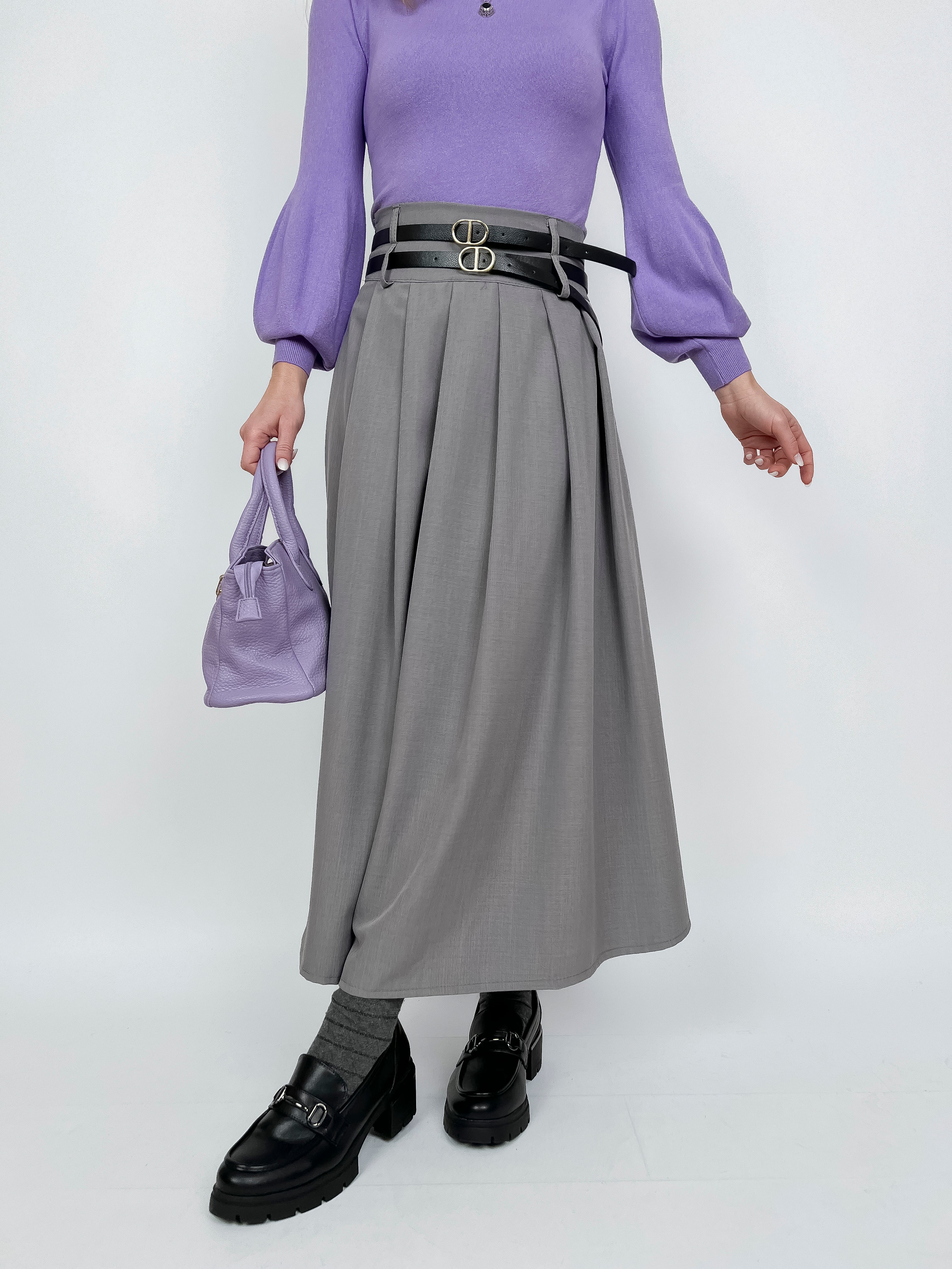 Gonna con vita accentuata. Doppia cintura e lunghezza fino a sopra le caviglie.