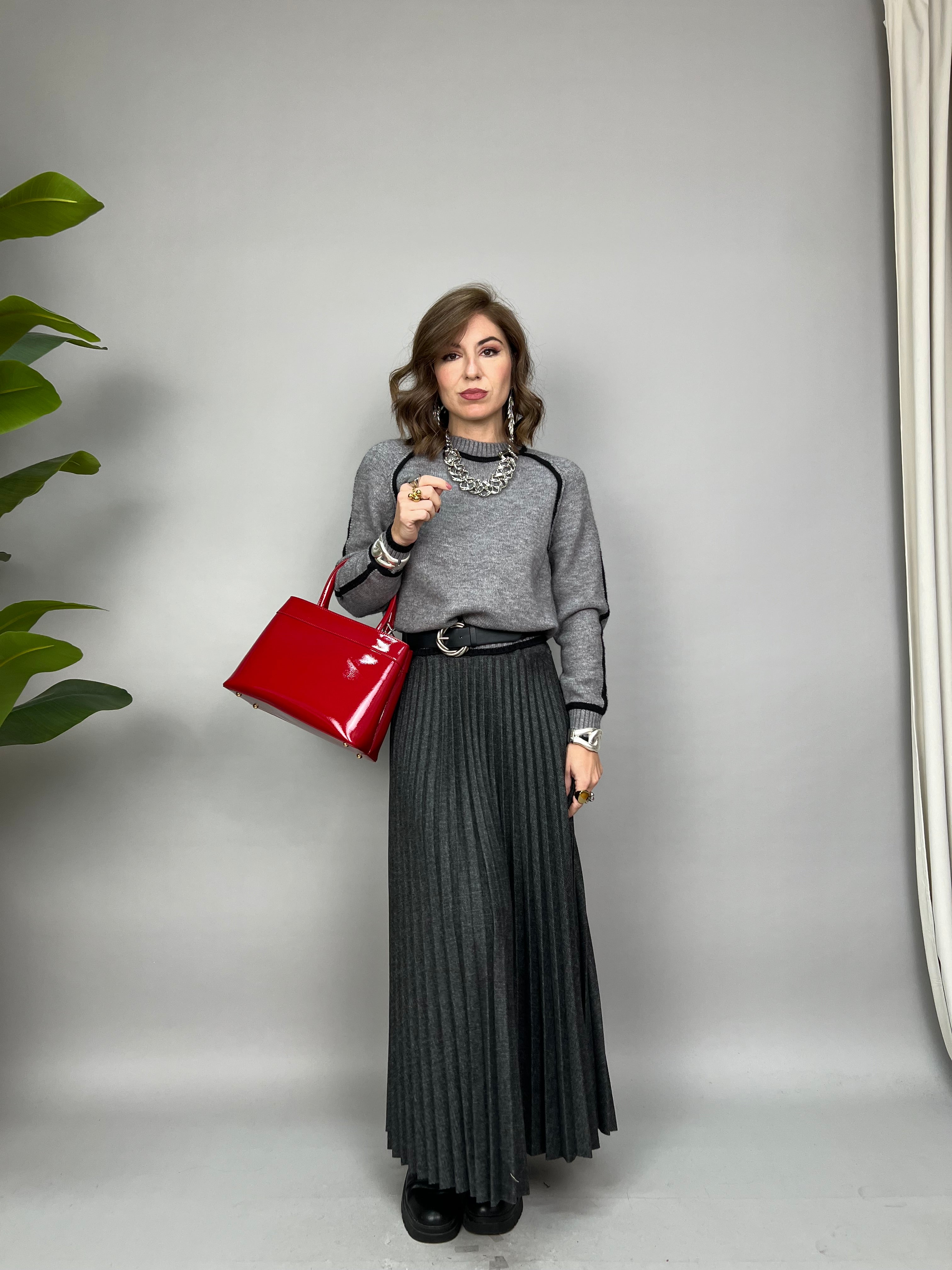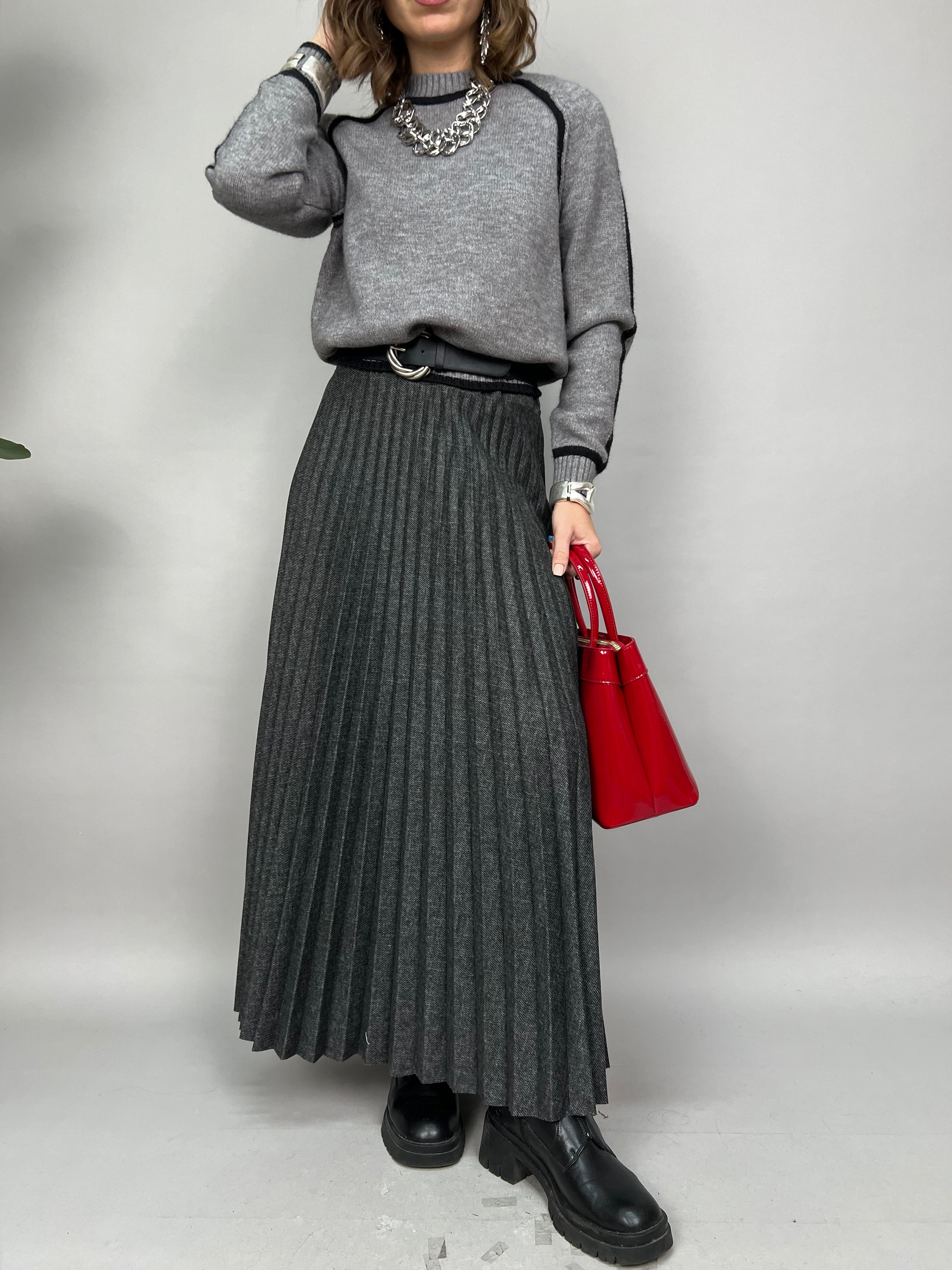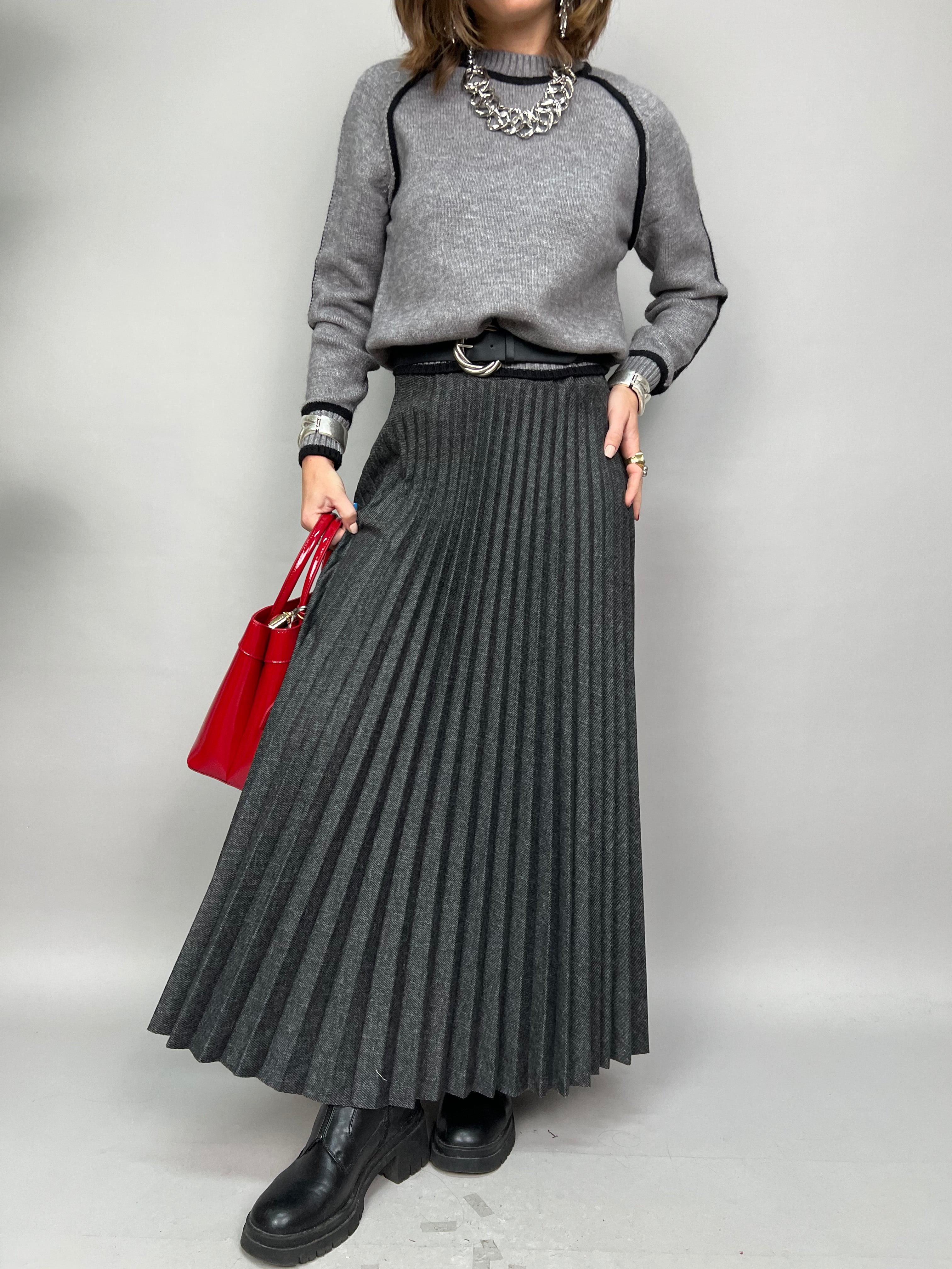 Gonna lunga in plissé con elastico in vita. Il tessuto è caldo.