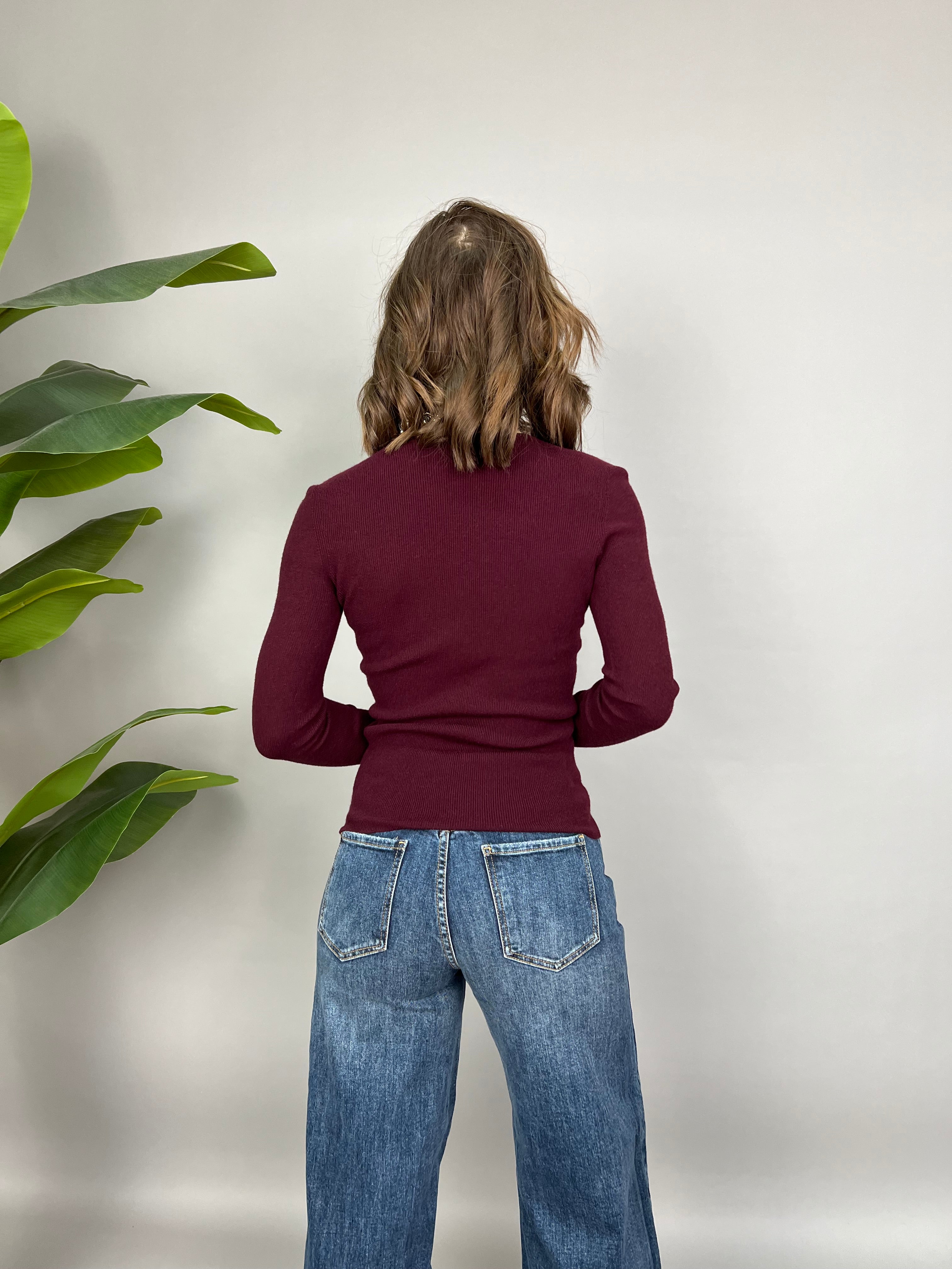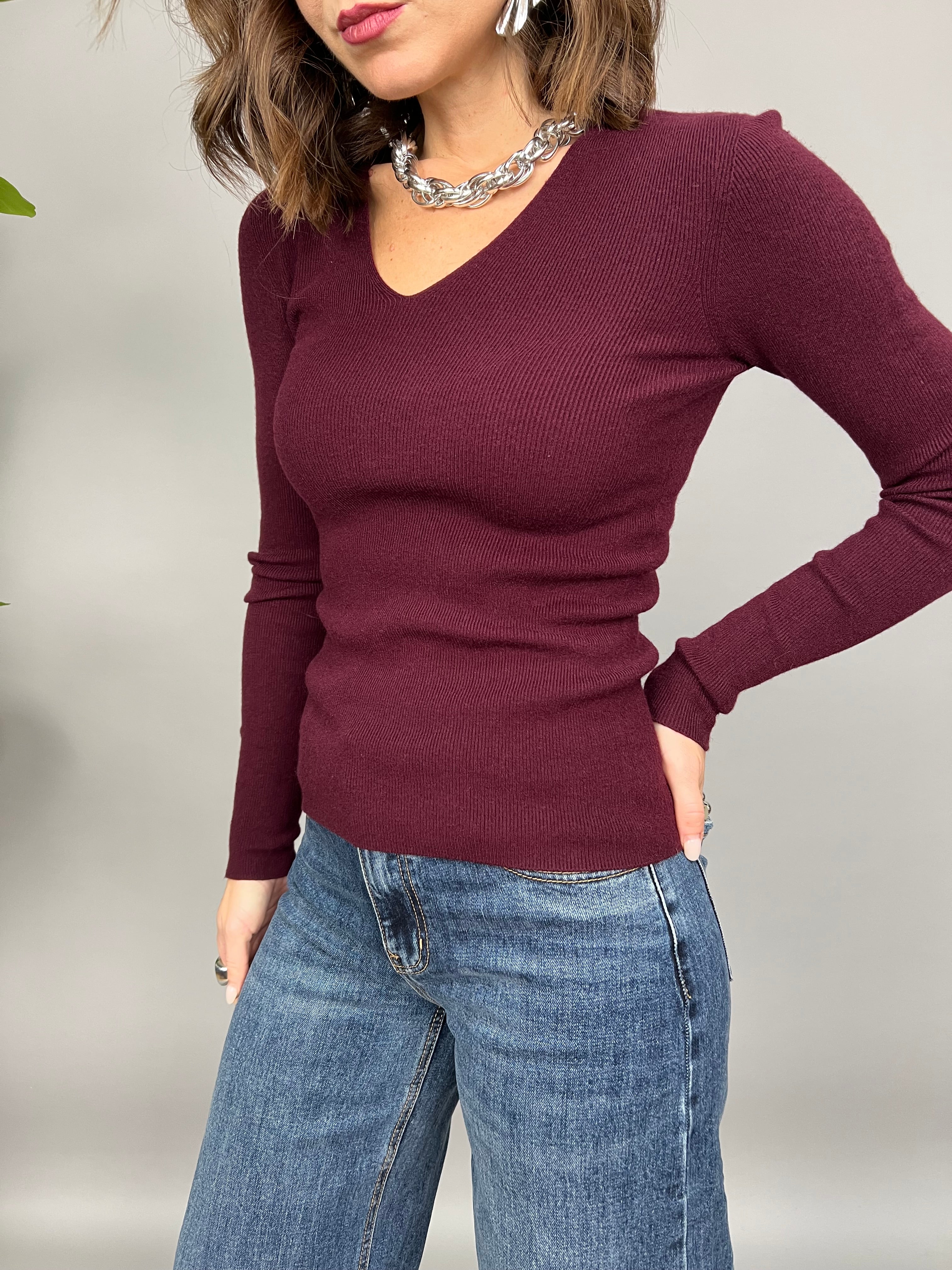 Maglioncino a costine dal tessuto morbido con scollatura a V.
