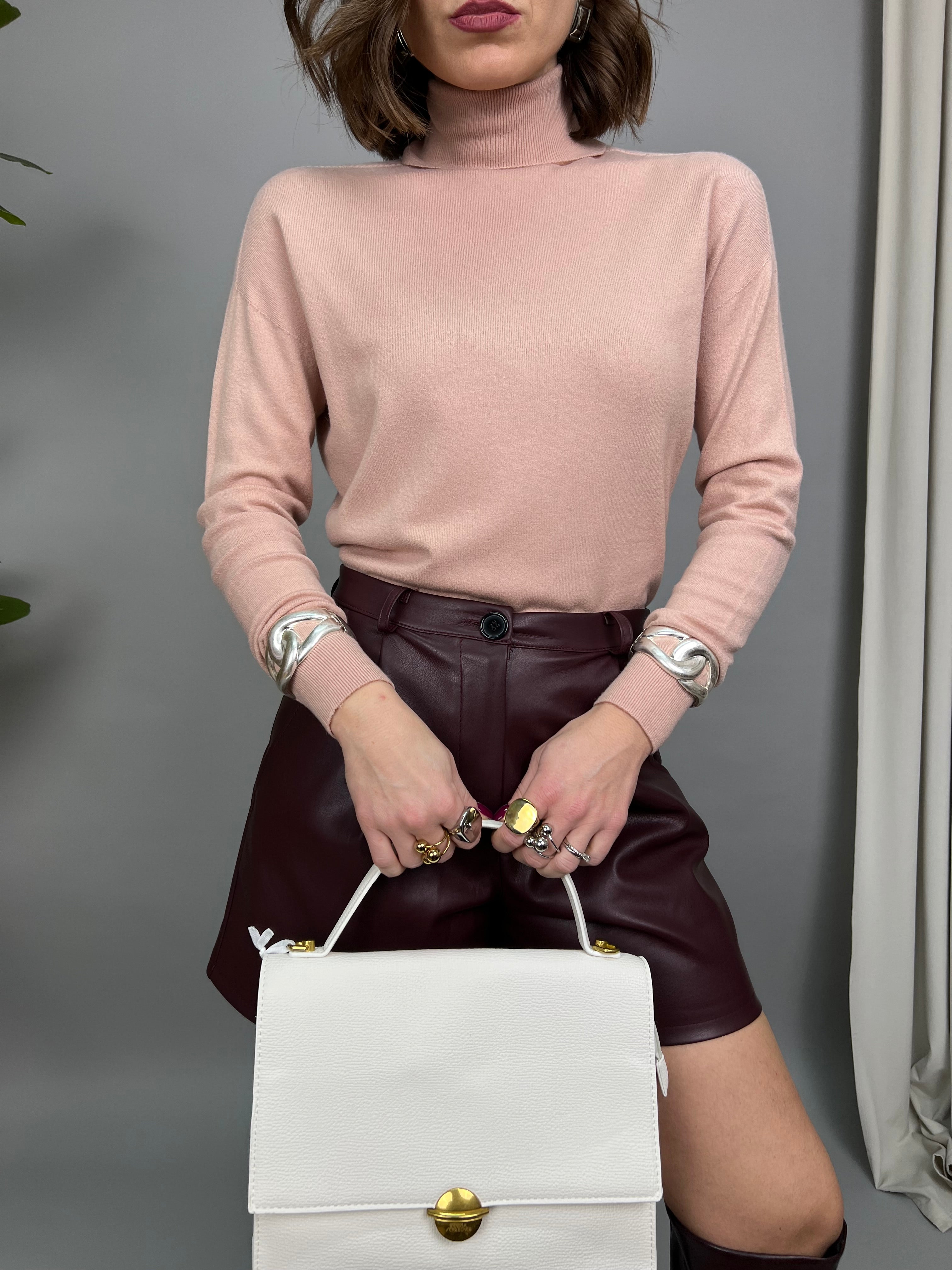 Maglioncino collo alto, dal fit regolare, realizzato in tessuto morbido al tatto. Il modello è caratterizzato da uno spacchetto sulla parte posteriore del collo alto.