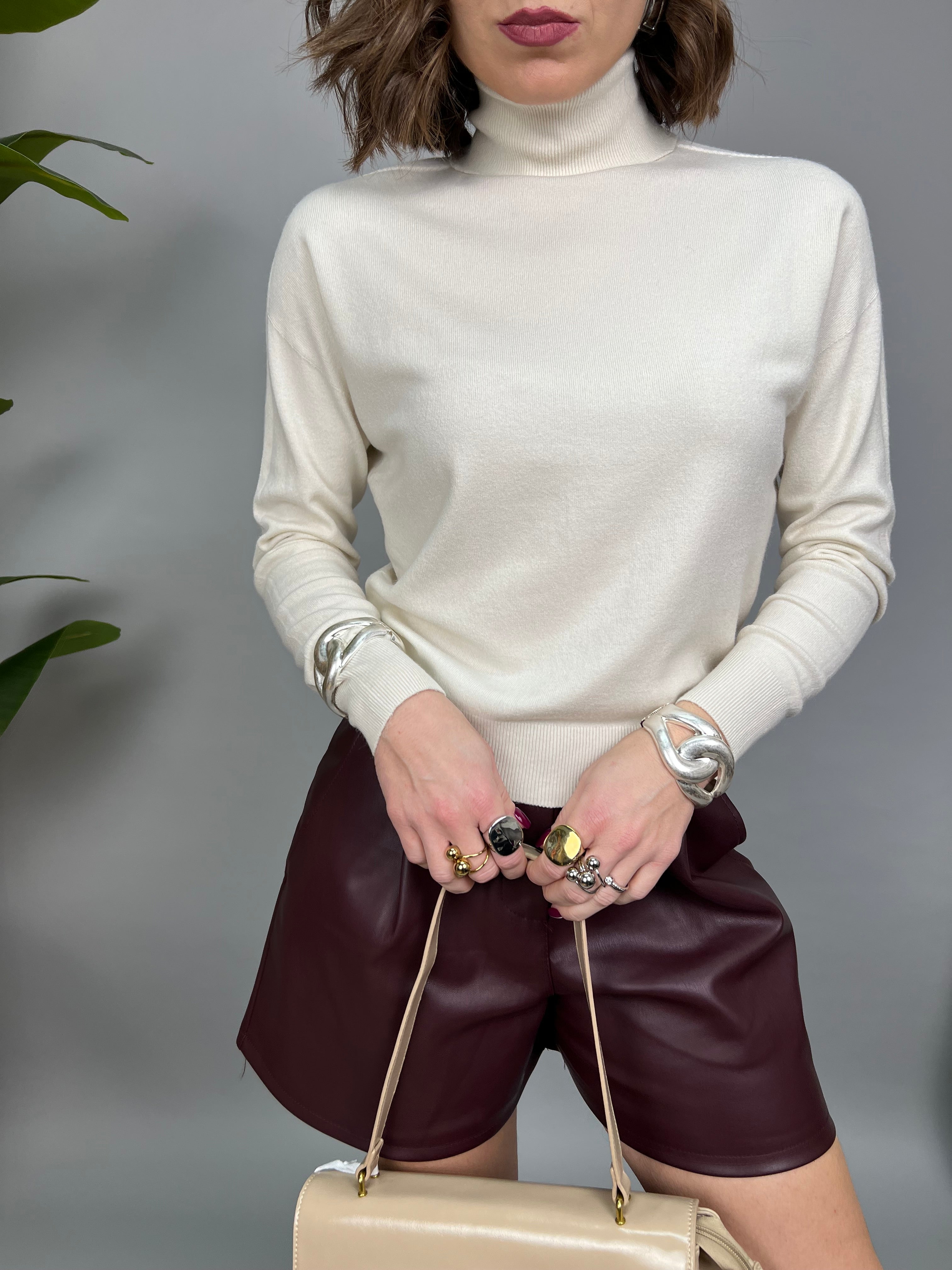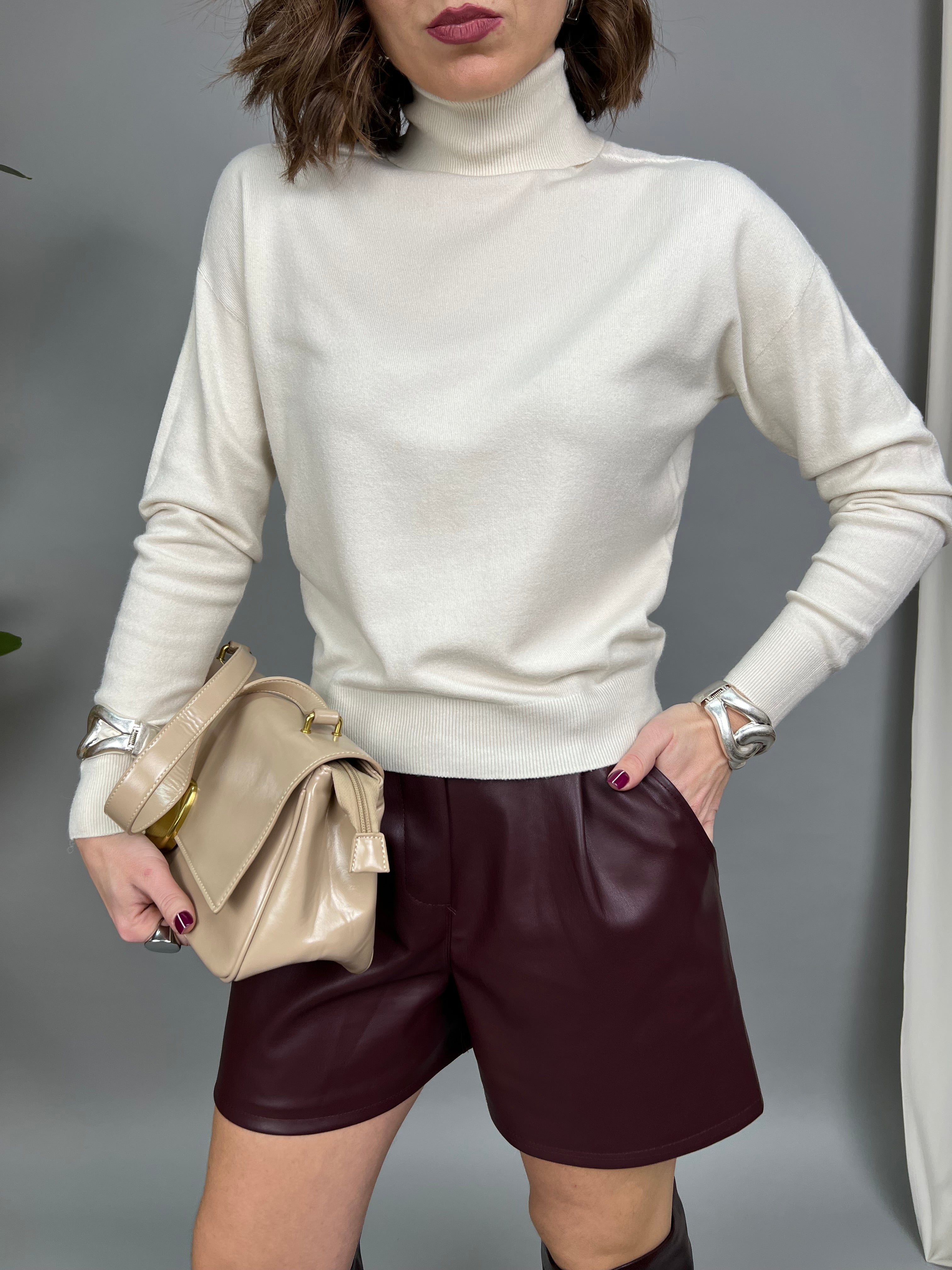 Maglioncino collo alto, dal fit regolare, realizzato in tessuto morbido al tatto. Il modello è caratterizzato da uno spacchetto sulla parte posteriore del collo alto.