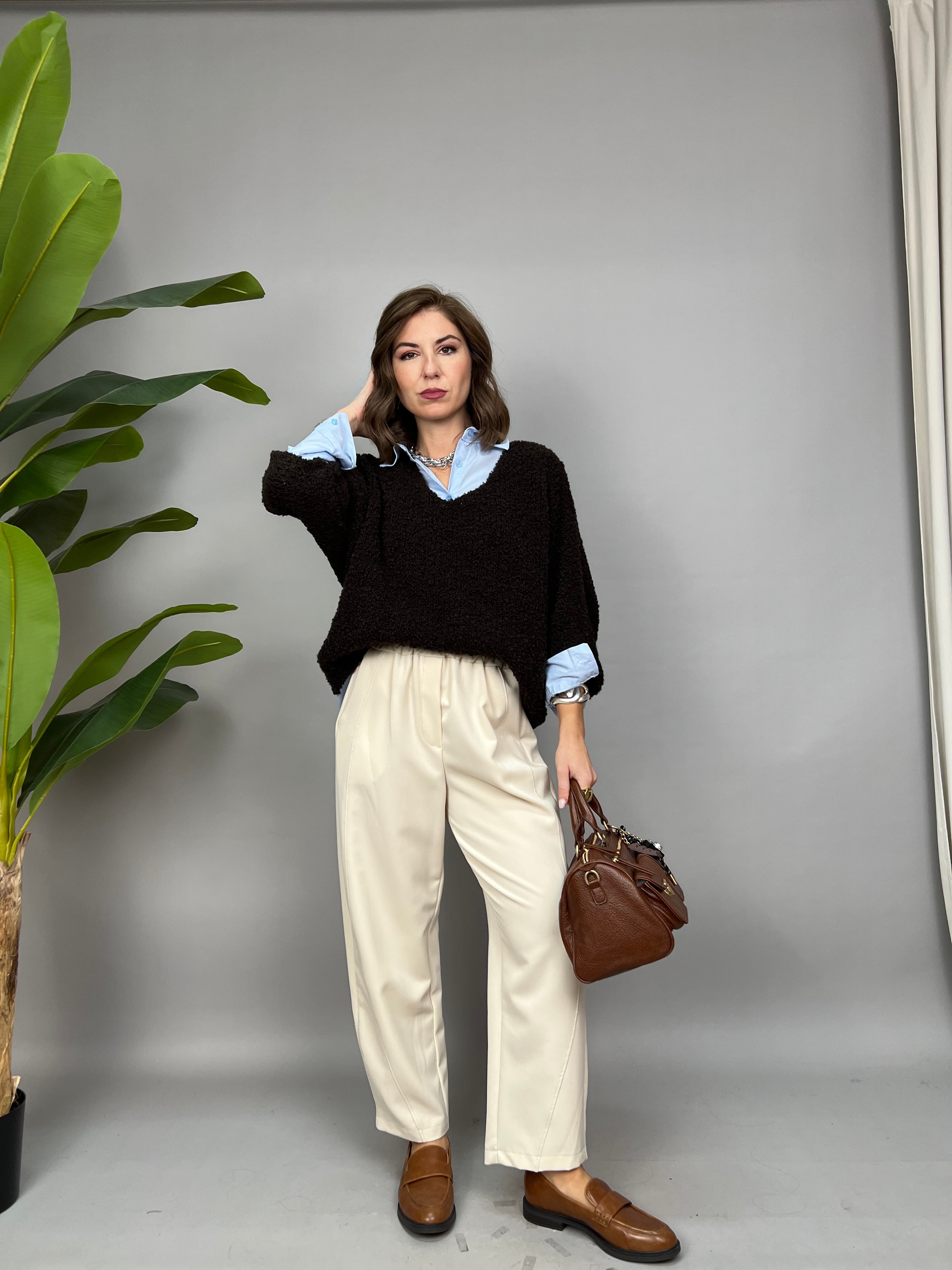 Maglione caldo e morbido con maniche 3/4 e scollatura a V. La vestibilità è comoda