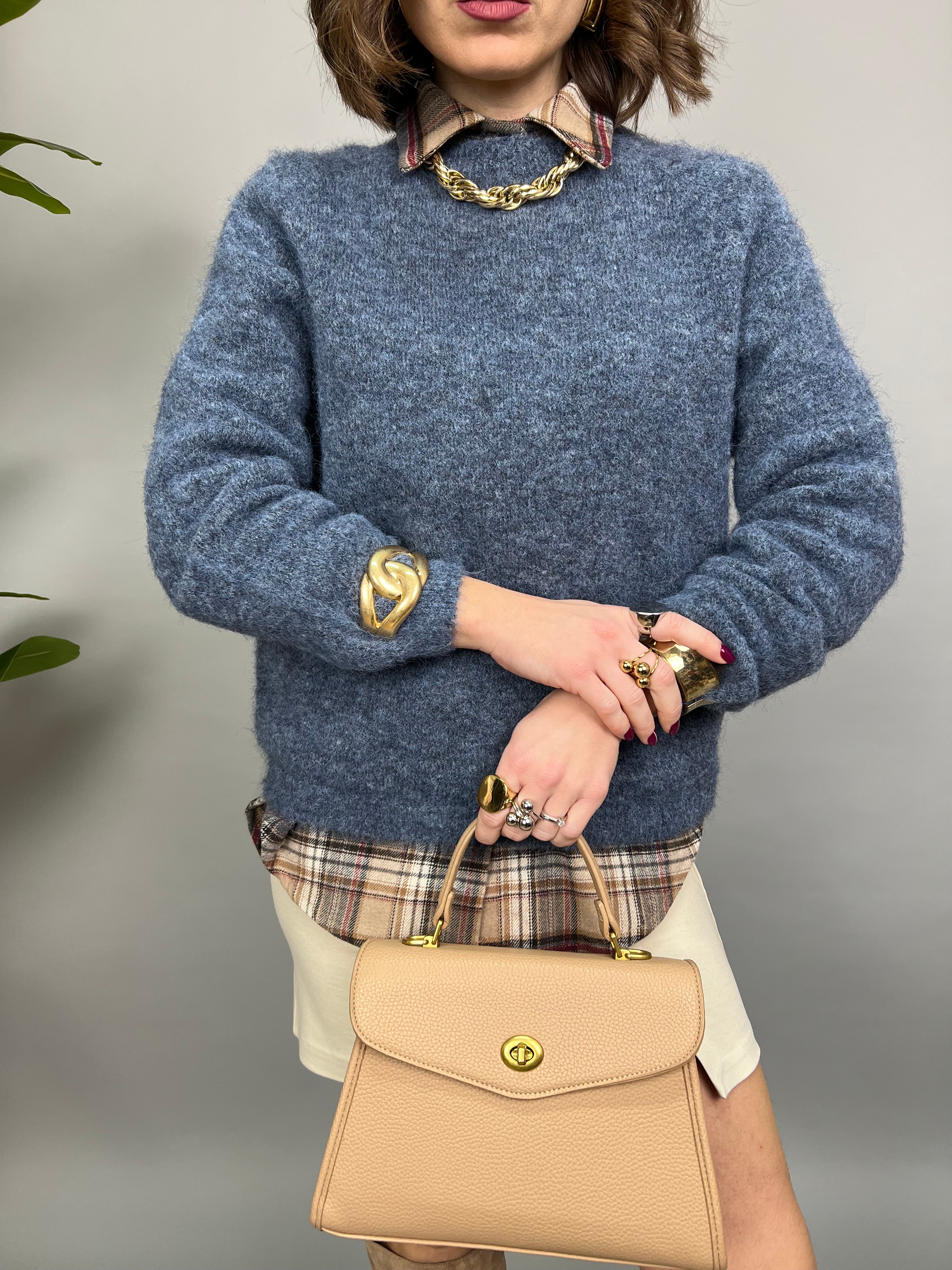 Maglione collo tondo, maniche raglan, dal tessuto morbido, caldo e soffice. La vestibilità è comoda.