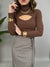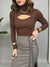 Maglioncino con collo alto e apertura frontale. Il modello è a costine ed in tessuto elasticizzato.