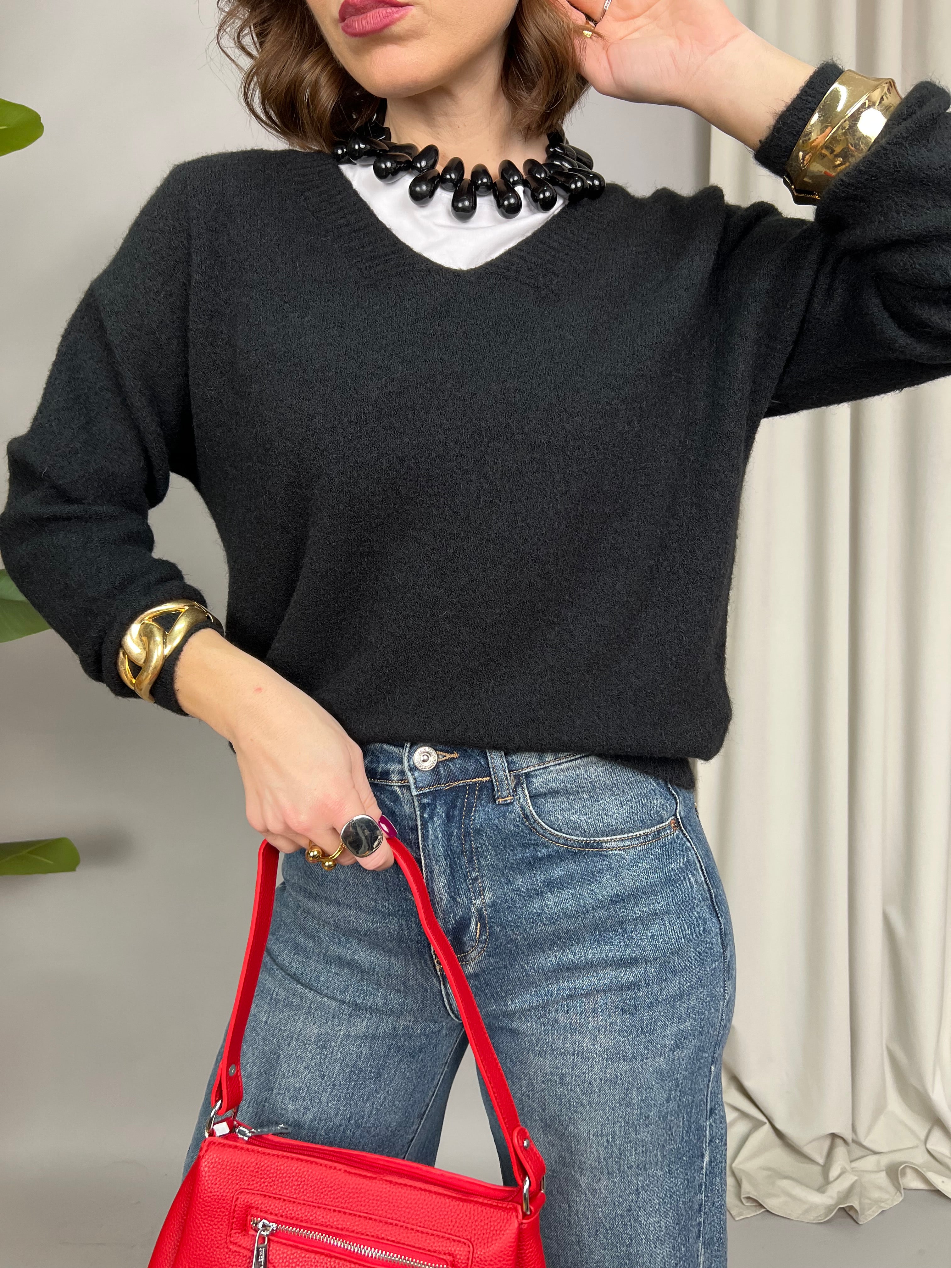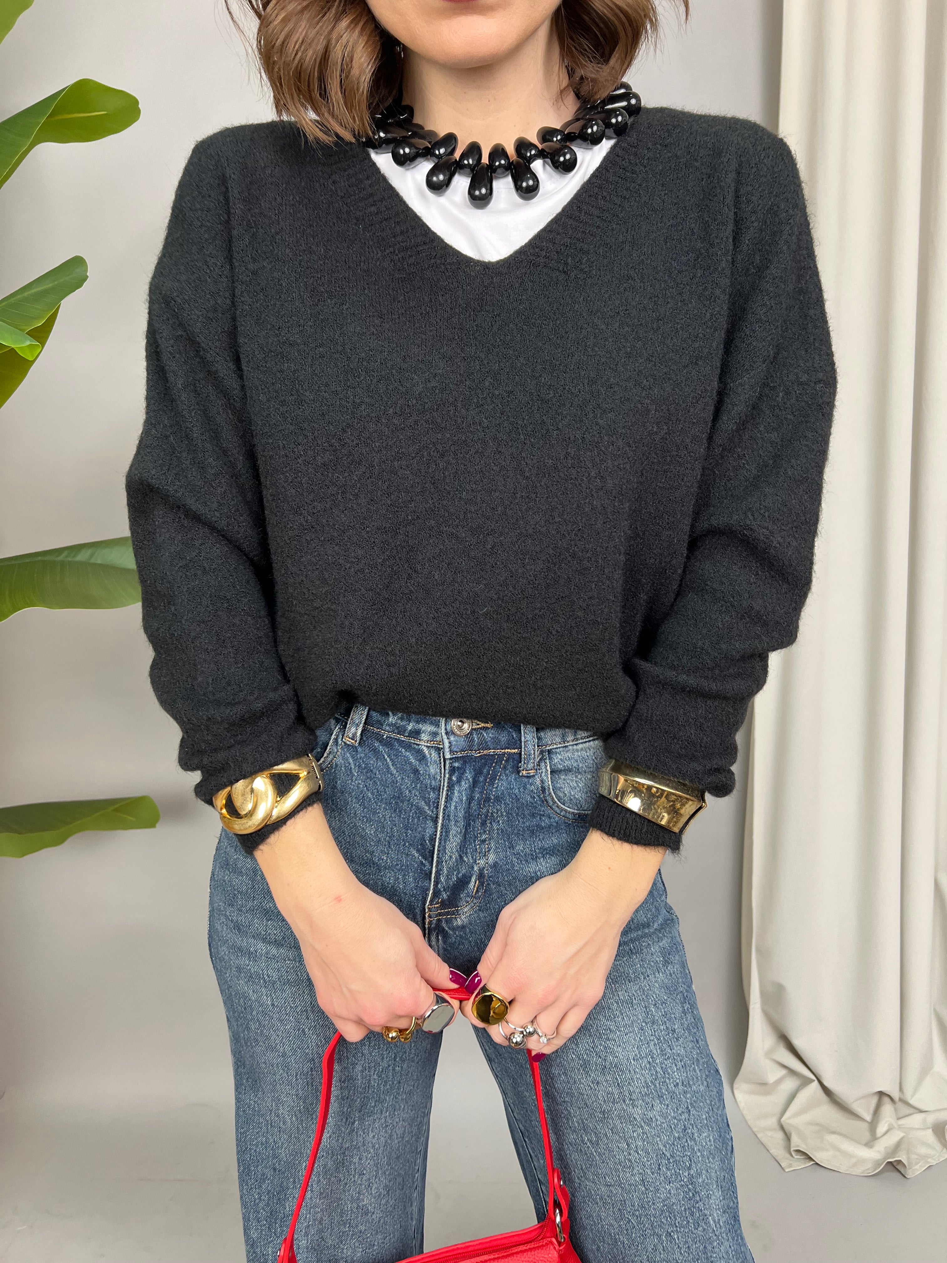 Maglione con scollatura a V in tessuto soffice e morbido. La vestibilità è comoda.