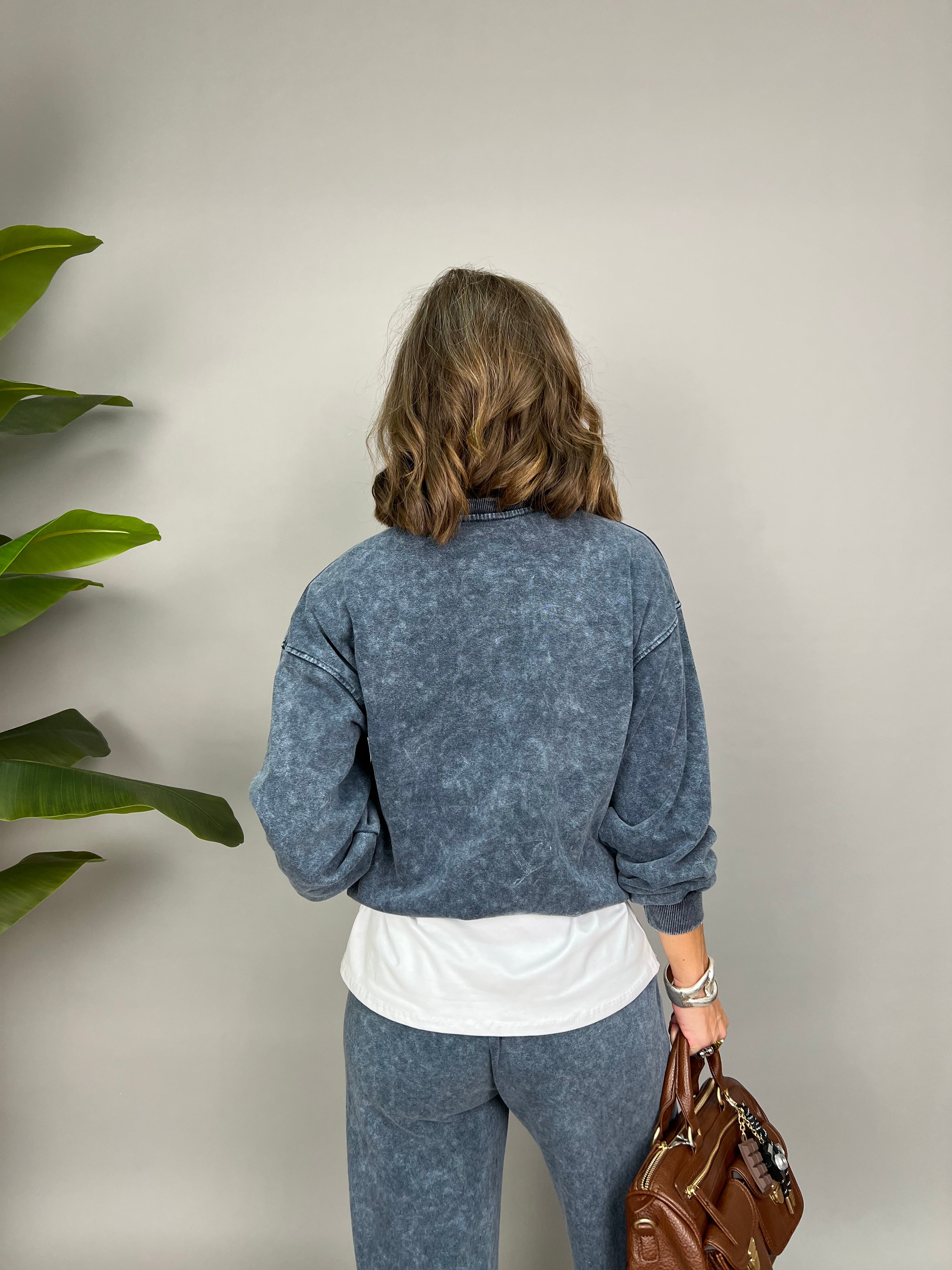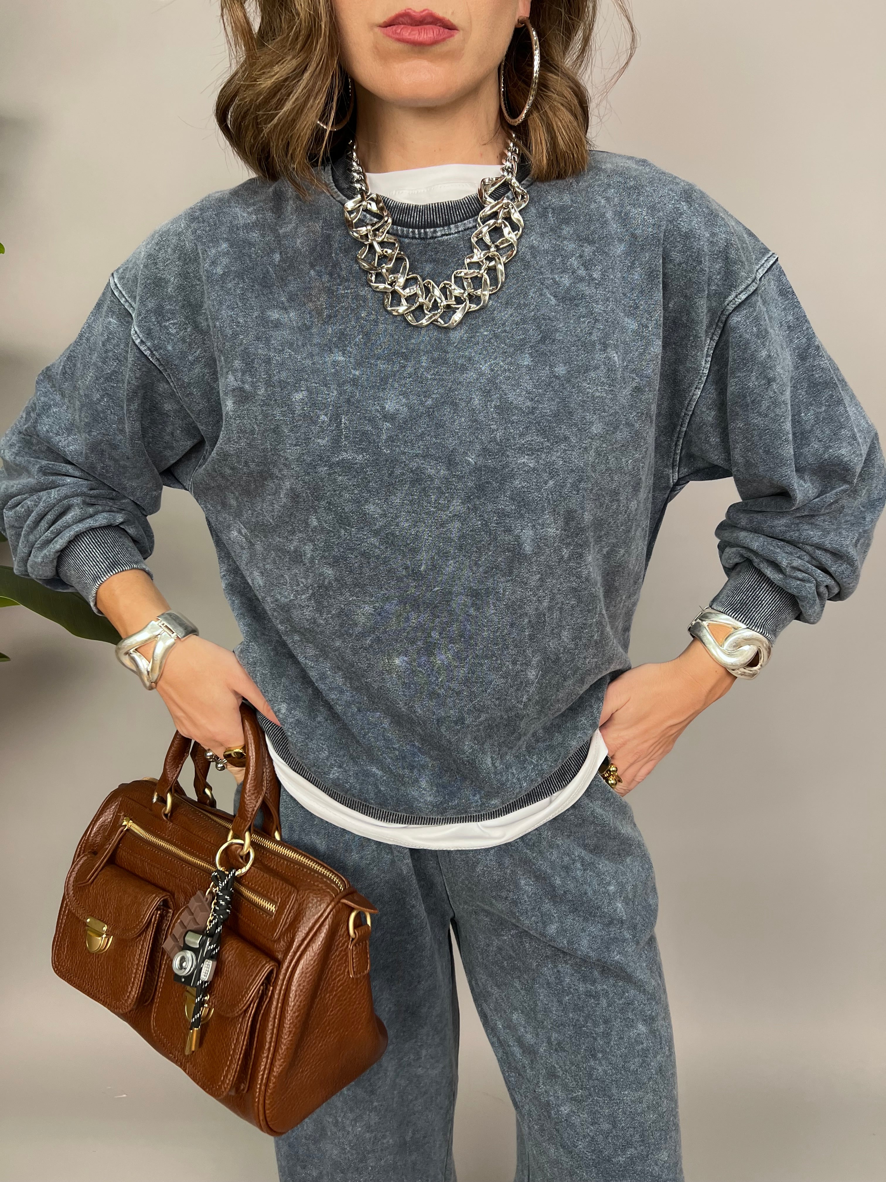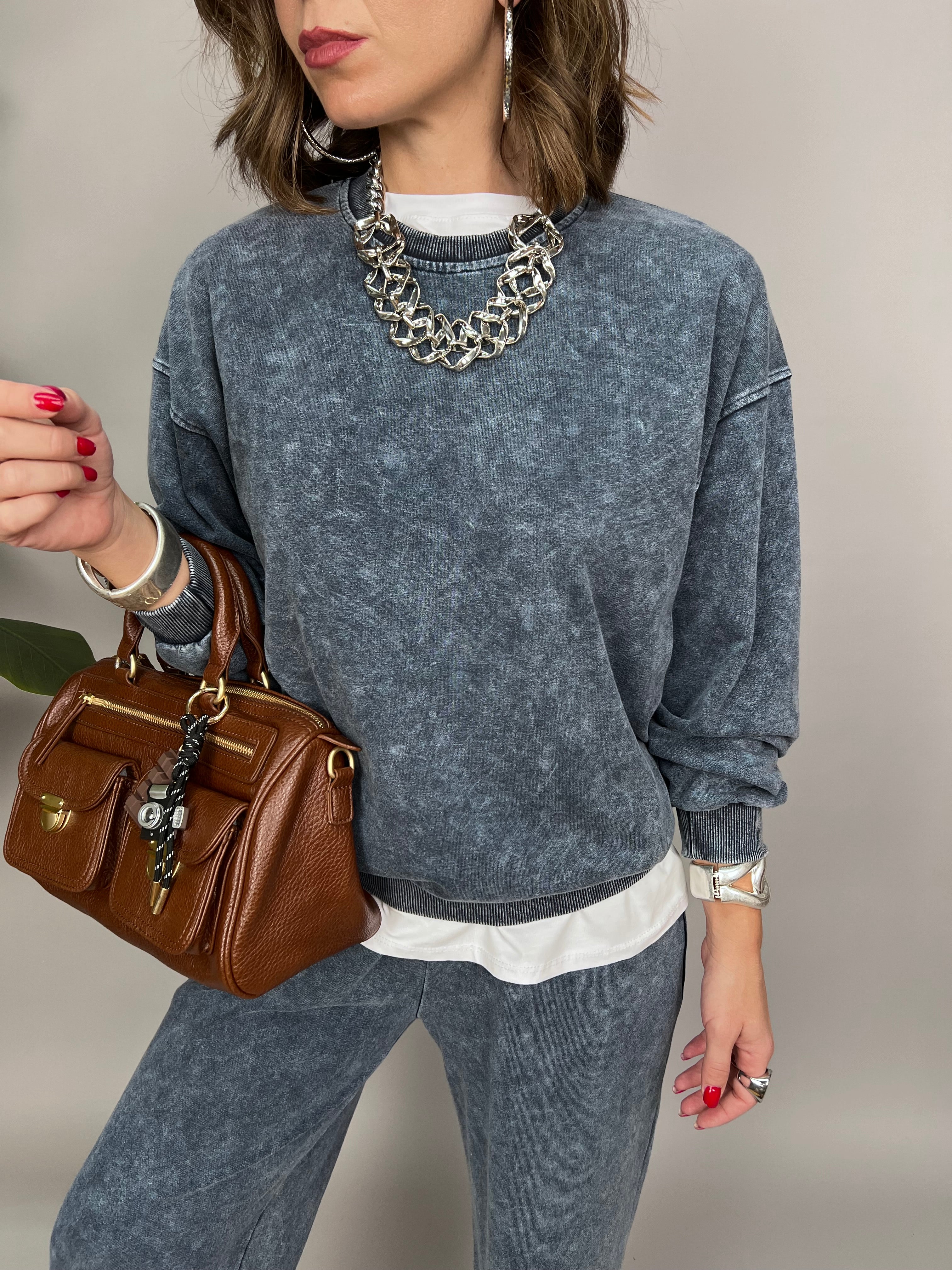 Felpa in cotone garzato con collo tondo e vestibilità comoda. Il tessuto ha un effetto stone washed