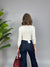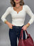 Maglia elasticizzata con V rigida sulla scollatura.
