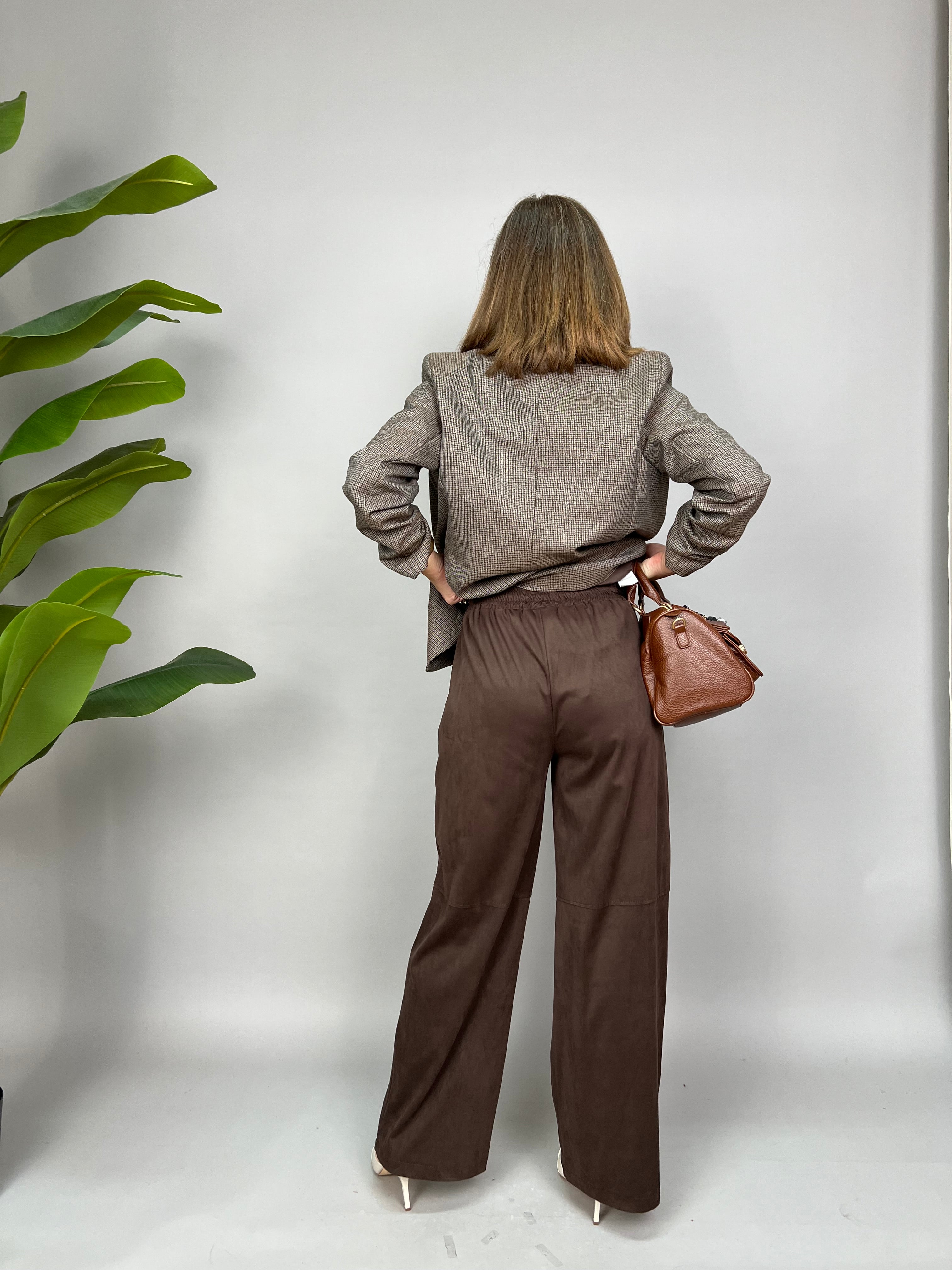 Pantalone in suede, dalla vestibilità comoda ed elastico in vita.