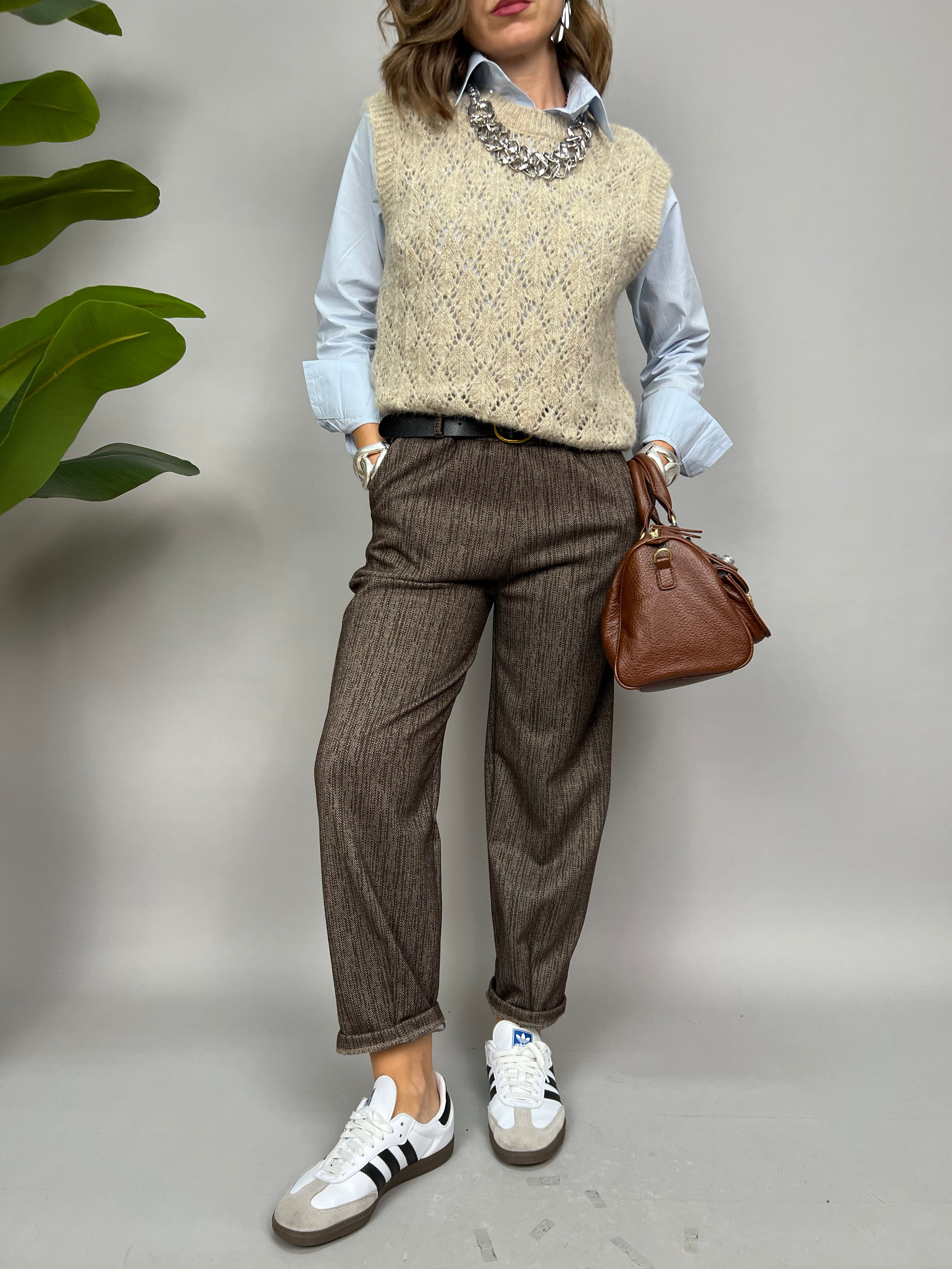 Pantalone comodo con elastico in vita e tasche laterali. La cintura è inclusa