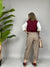La modella è alta 1,65 e porta la taglia 40/42 (S/M)