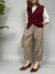 Pantalone comodo con pinces frontali ed elastico sul retro. I risvolti possono essere rimossi ed il modello raggiunge una lunghezza regolare.