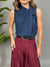 Blusa smanicata con dettaglio sul collo. Il tessuto è scivolato e la vestibilità comoda.