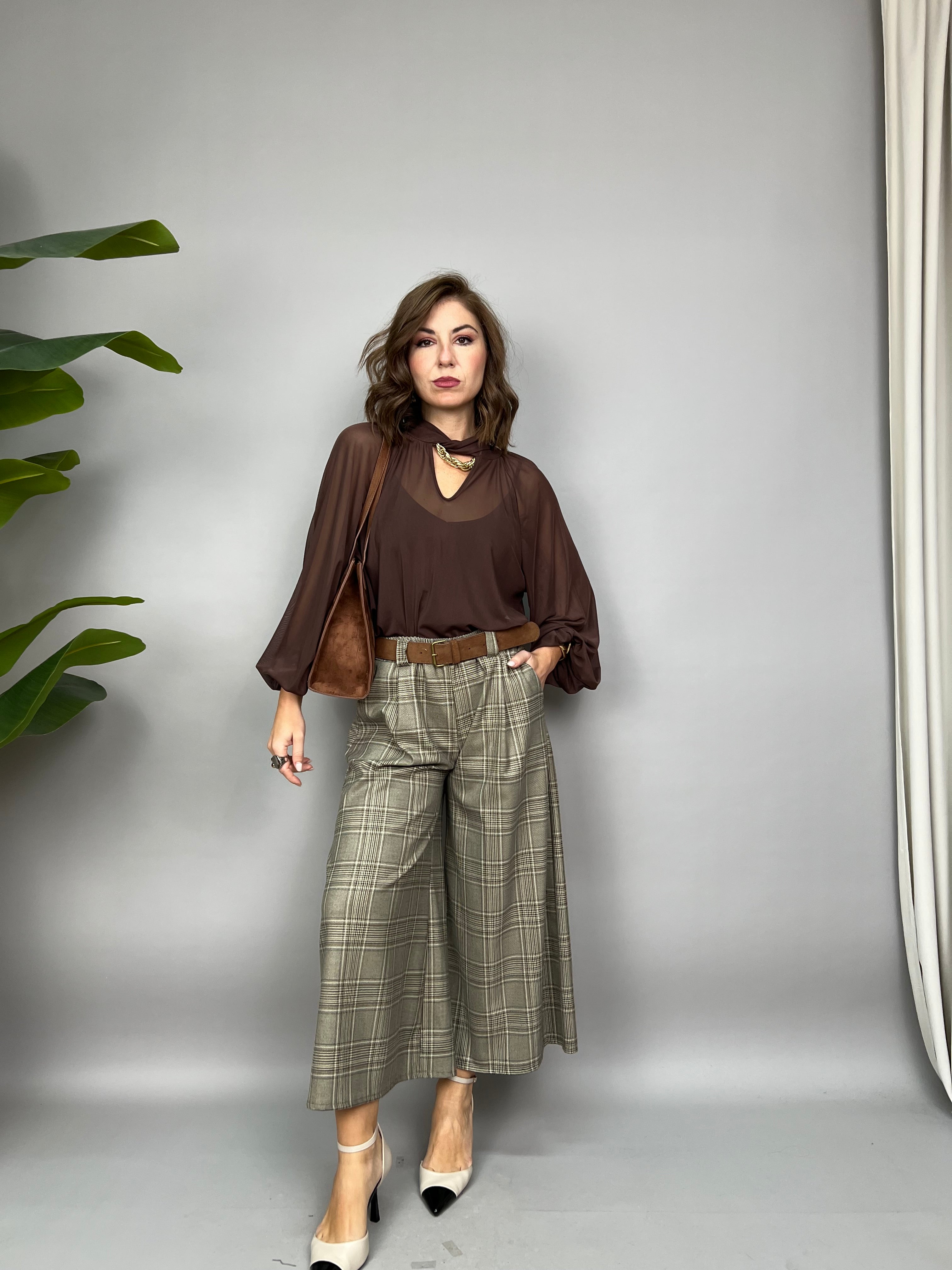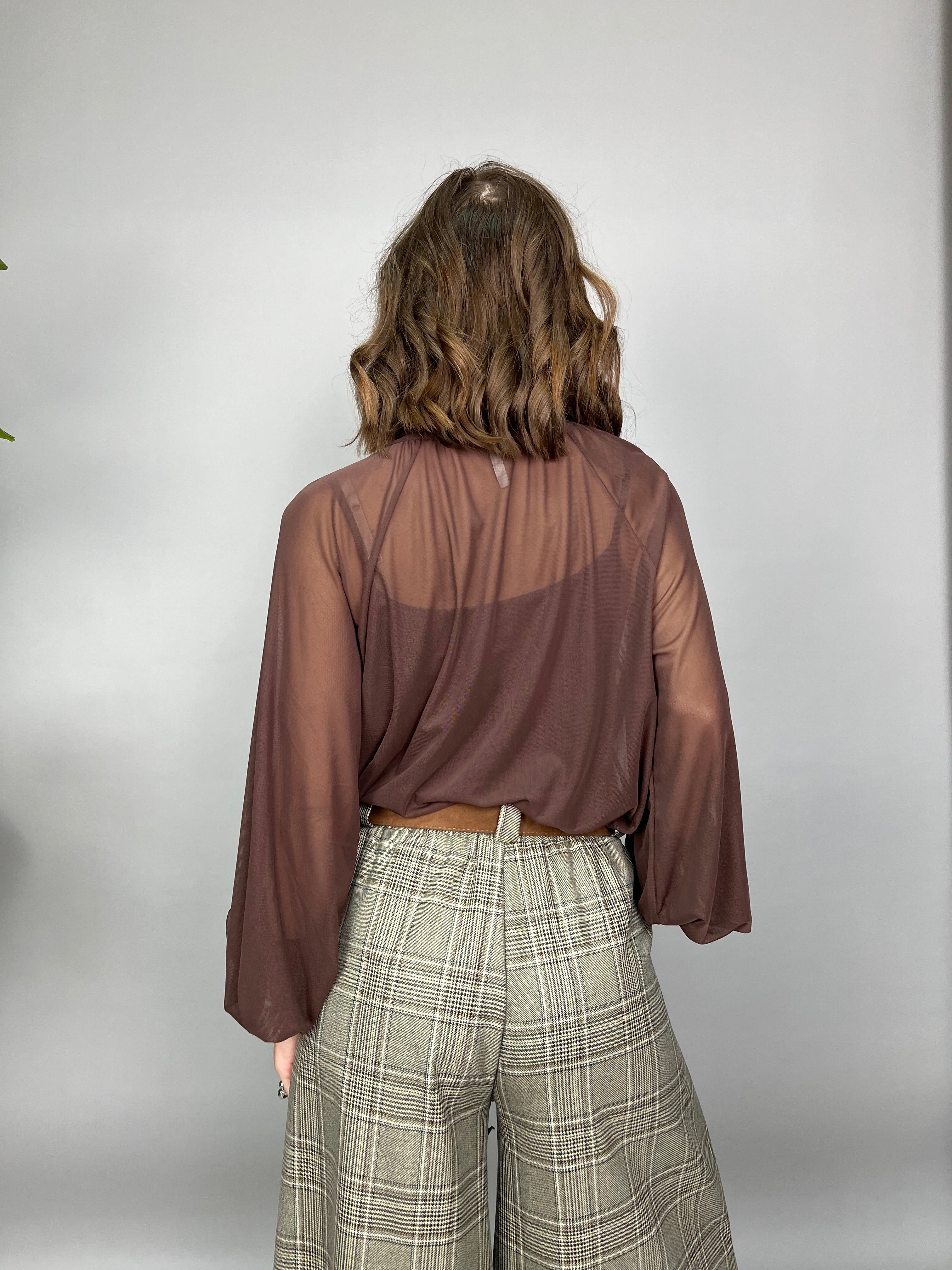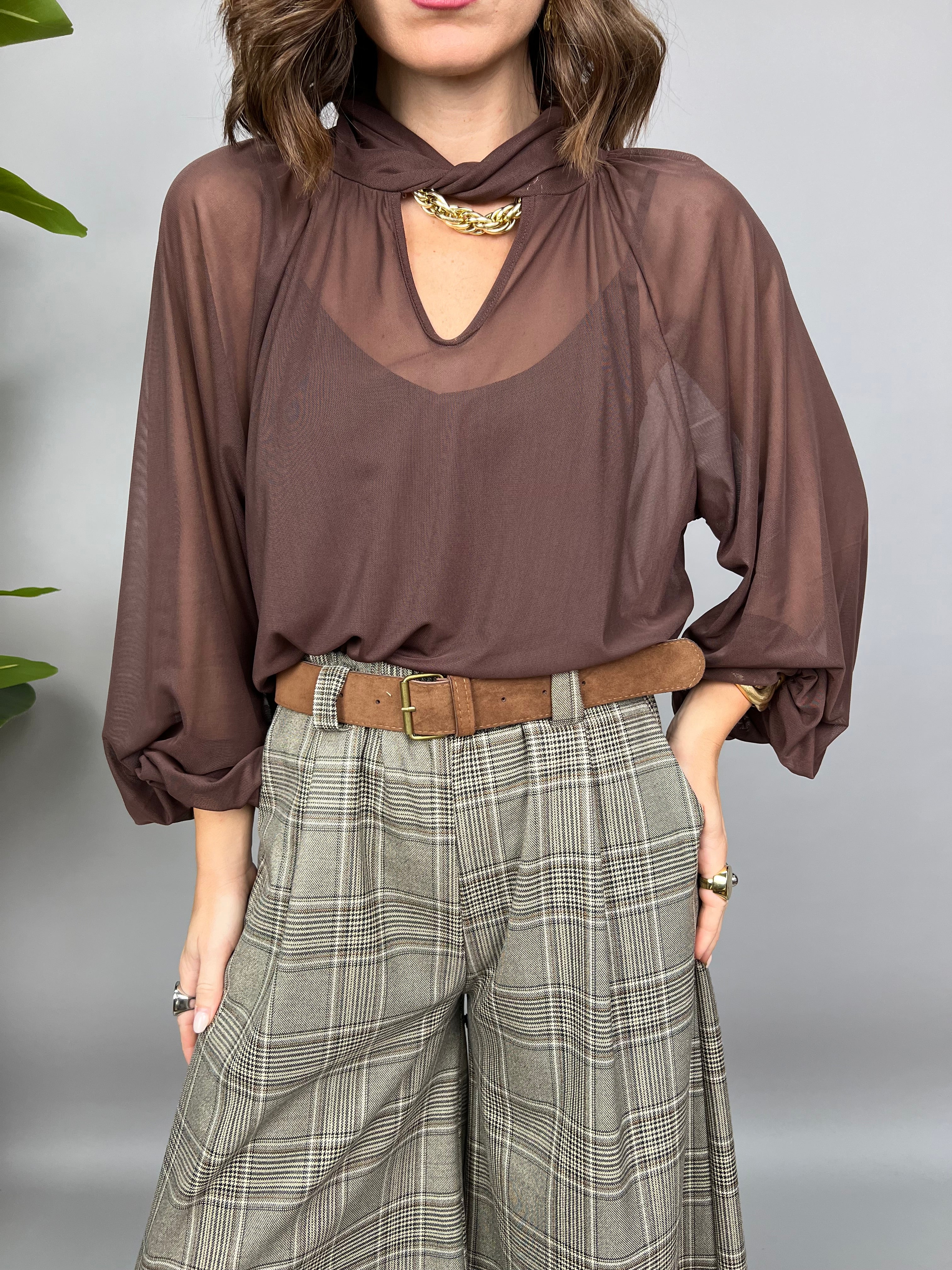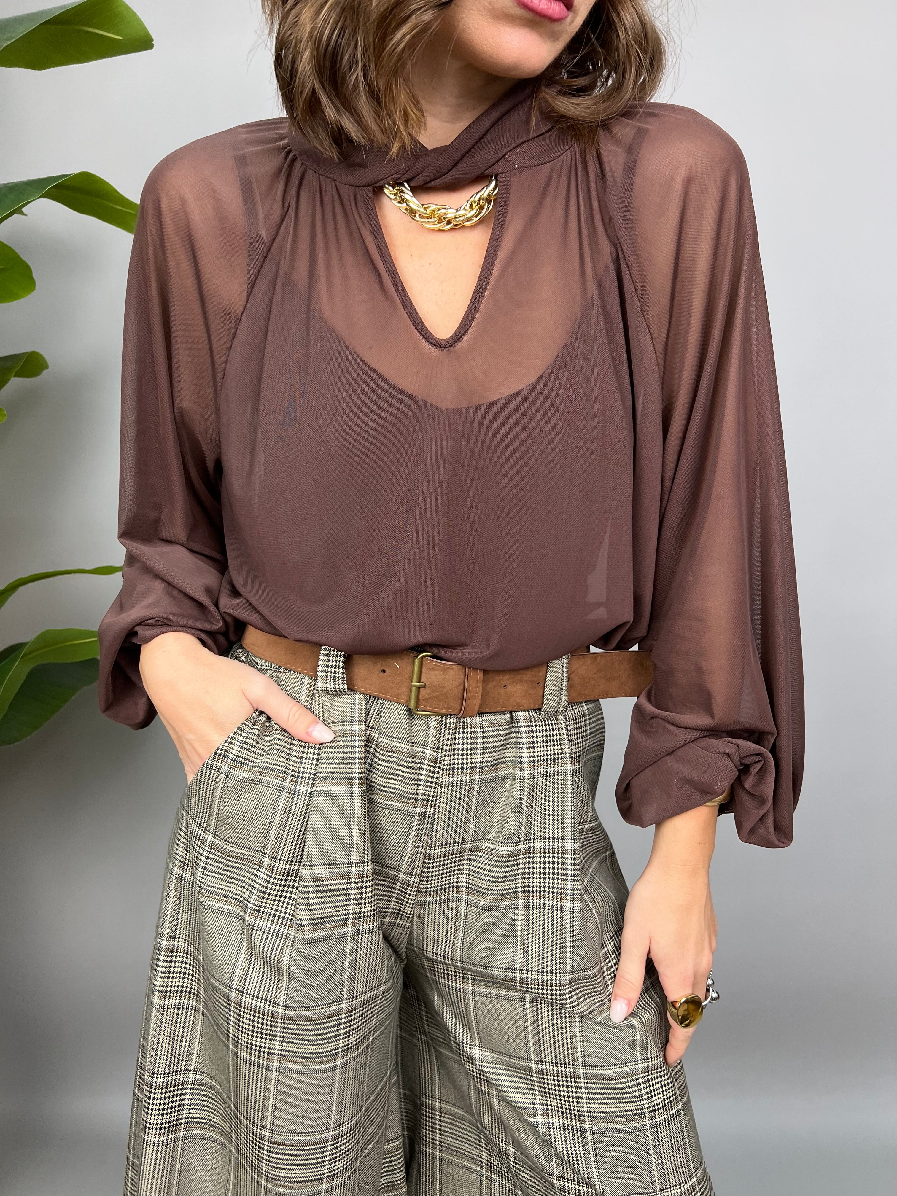 Blusa in tessuto velato con manica a palloncino dalla vestibilità comoda. Canotta inclusa.