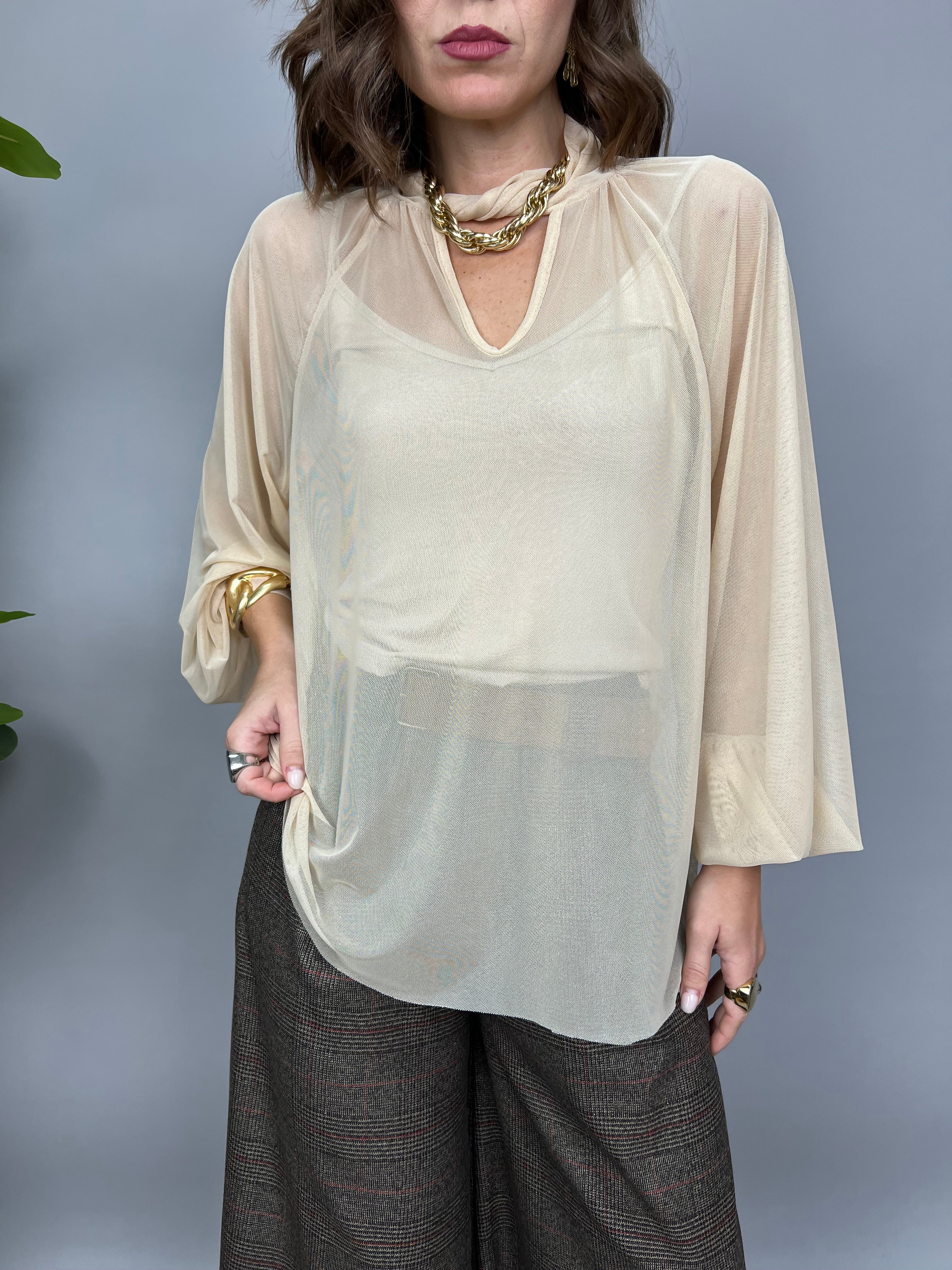Blusa in tessuto velato con manica a palloncino dalla vestibilità comoda. Canotta inclusa.
