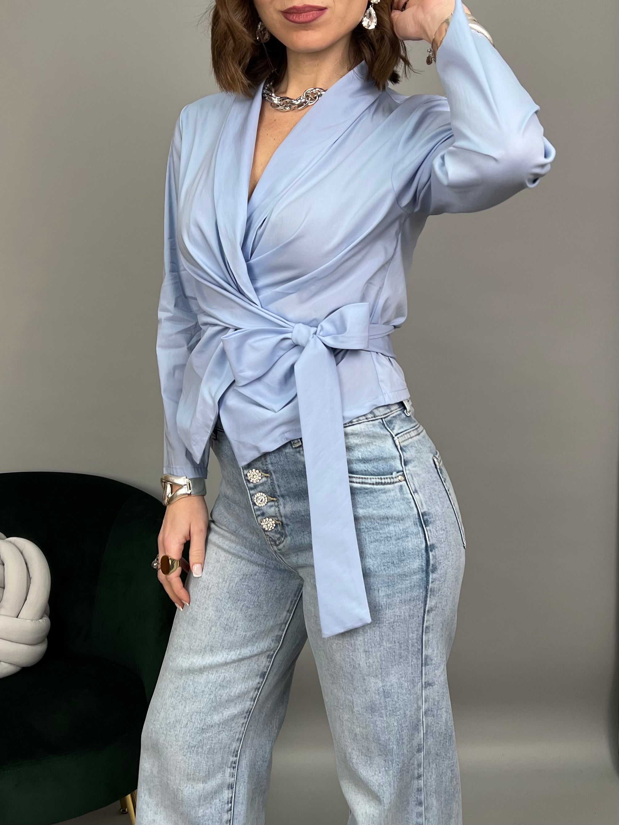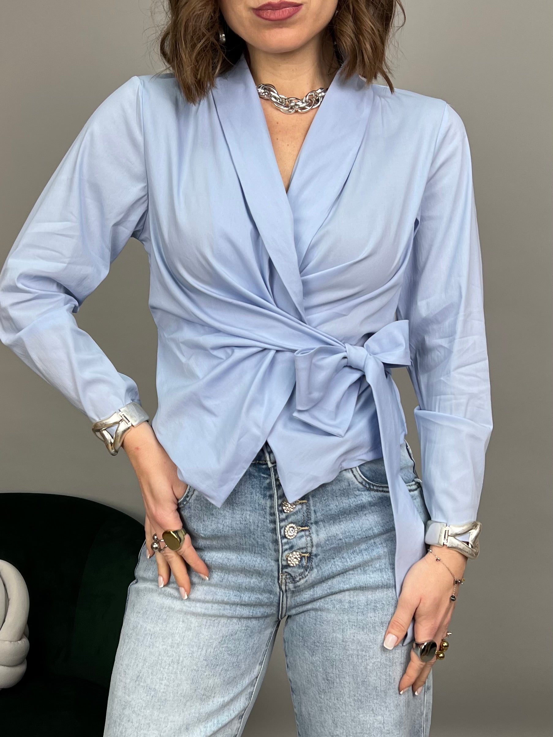 Camicia con chiusura a portafoglio e revers classico. La vestibilità è regolare e il tessuto è elasticizzato.