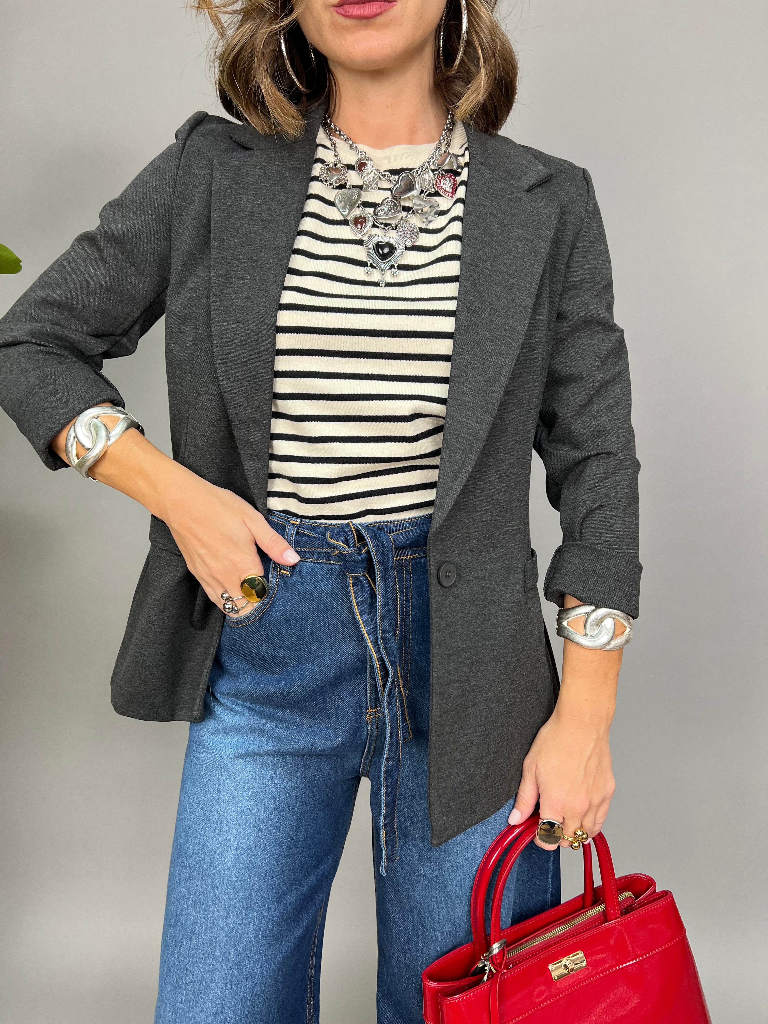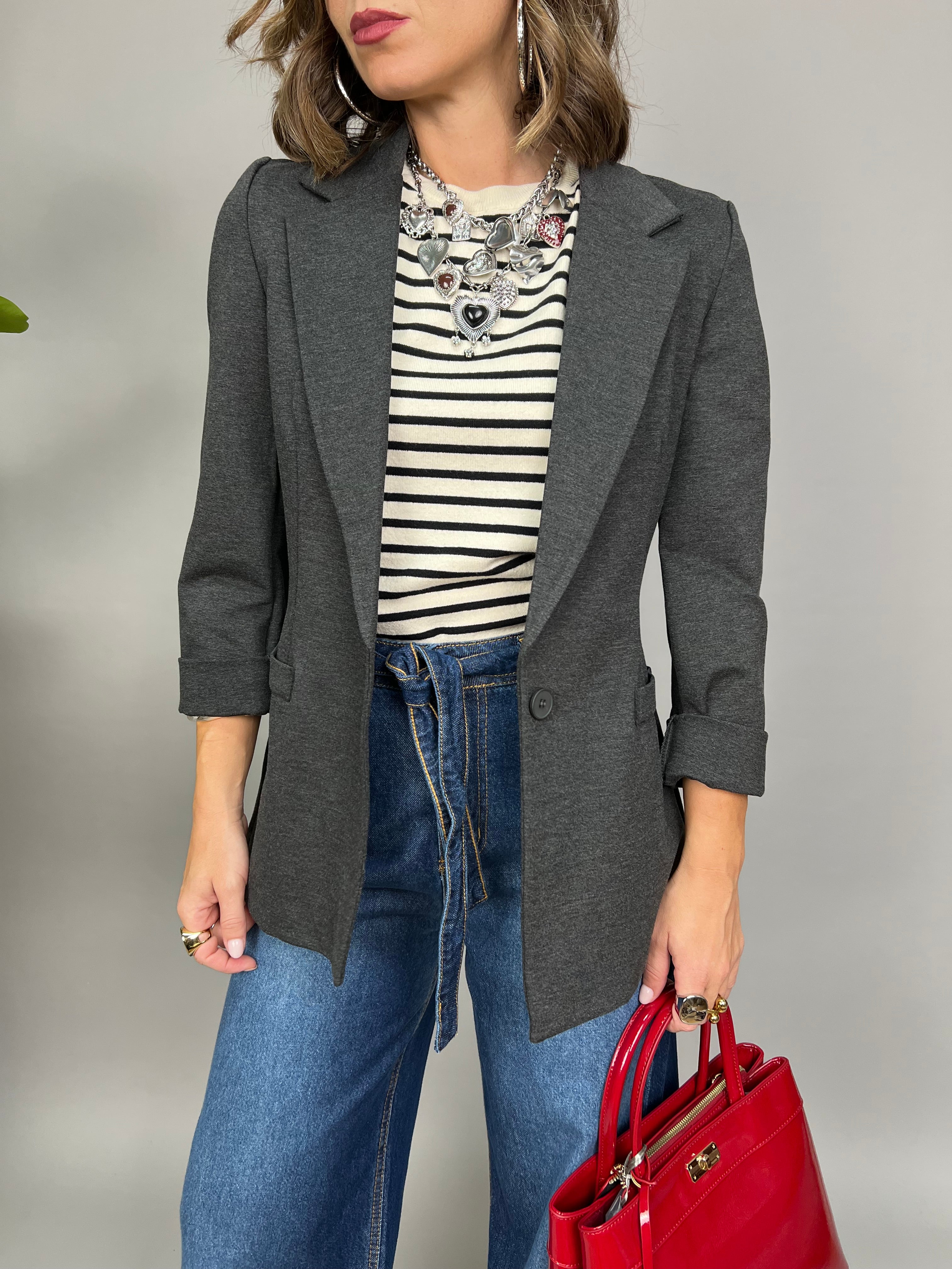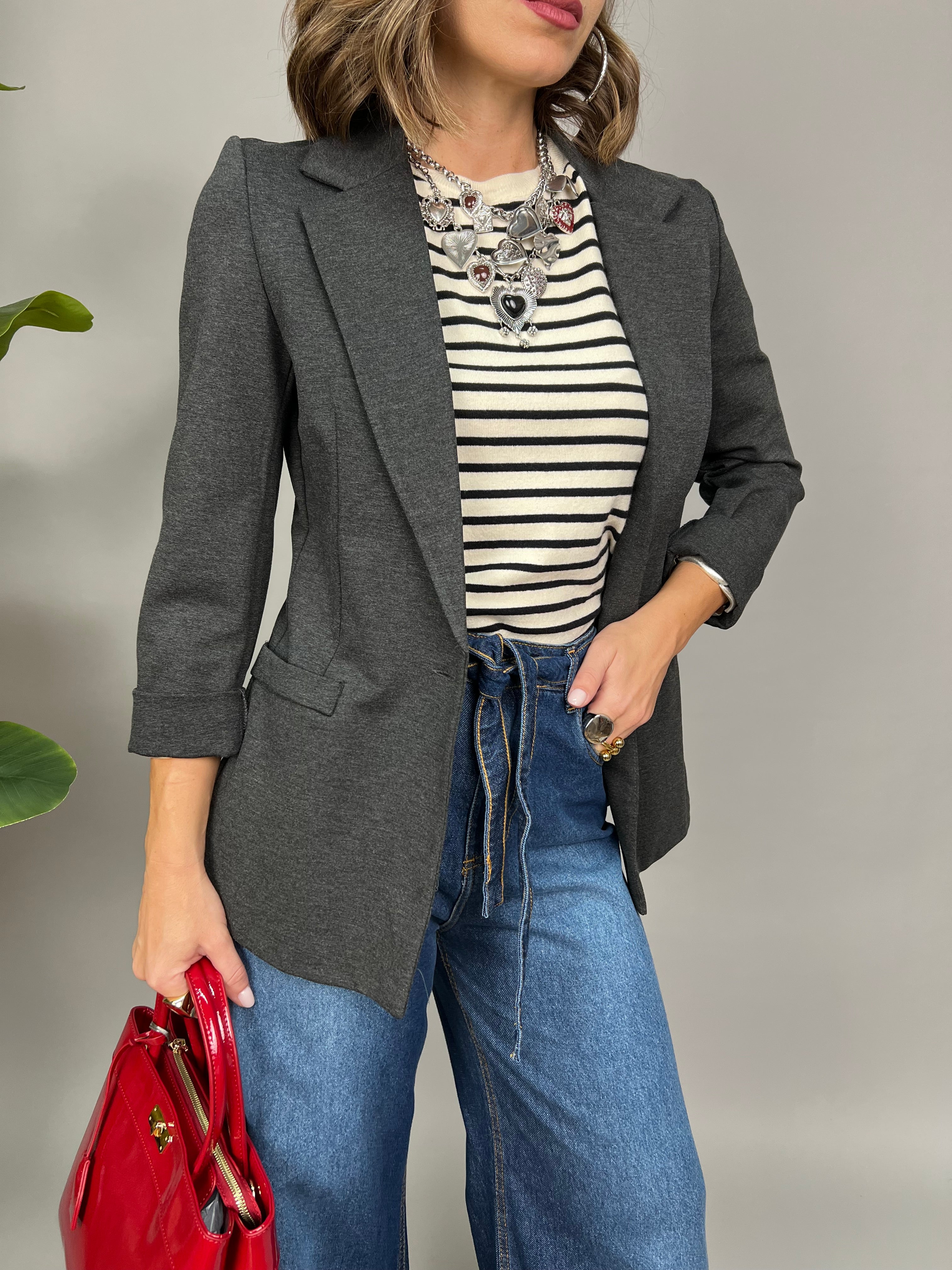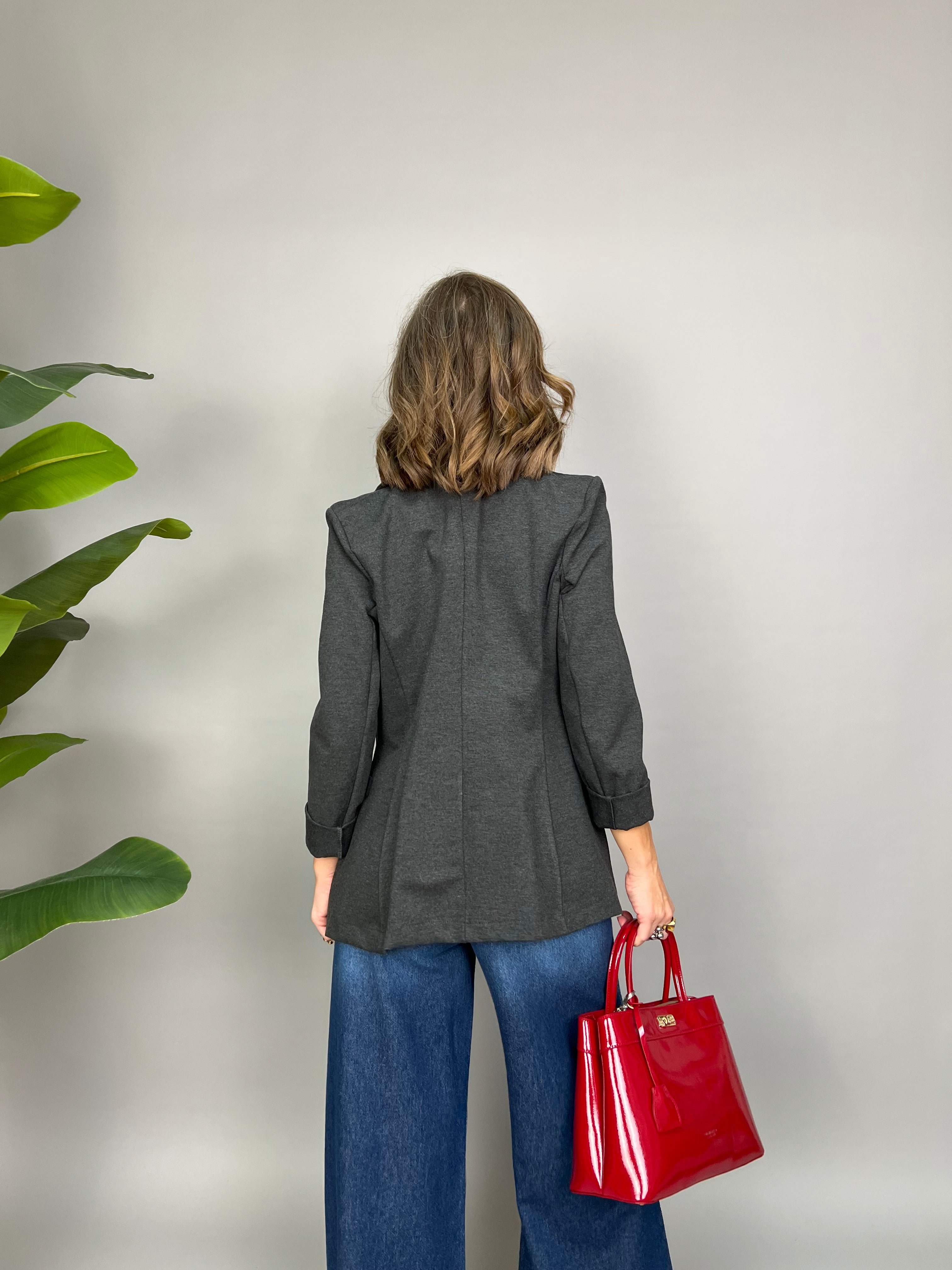 Giacca in punto milano dalla linea avvitatae con bottone frontale. Non presenta spalline e fodera interna.