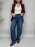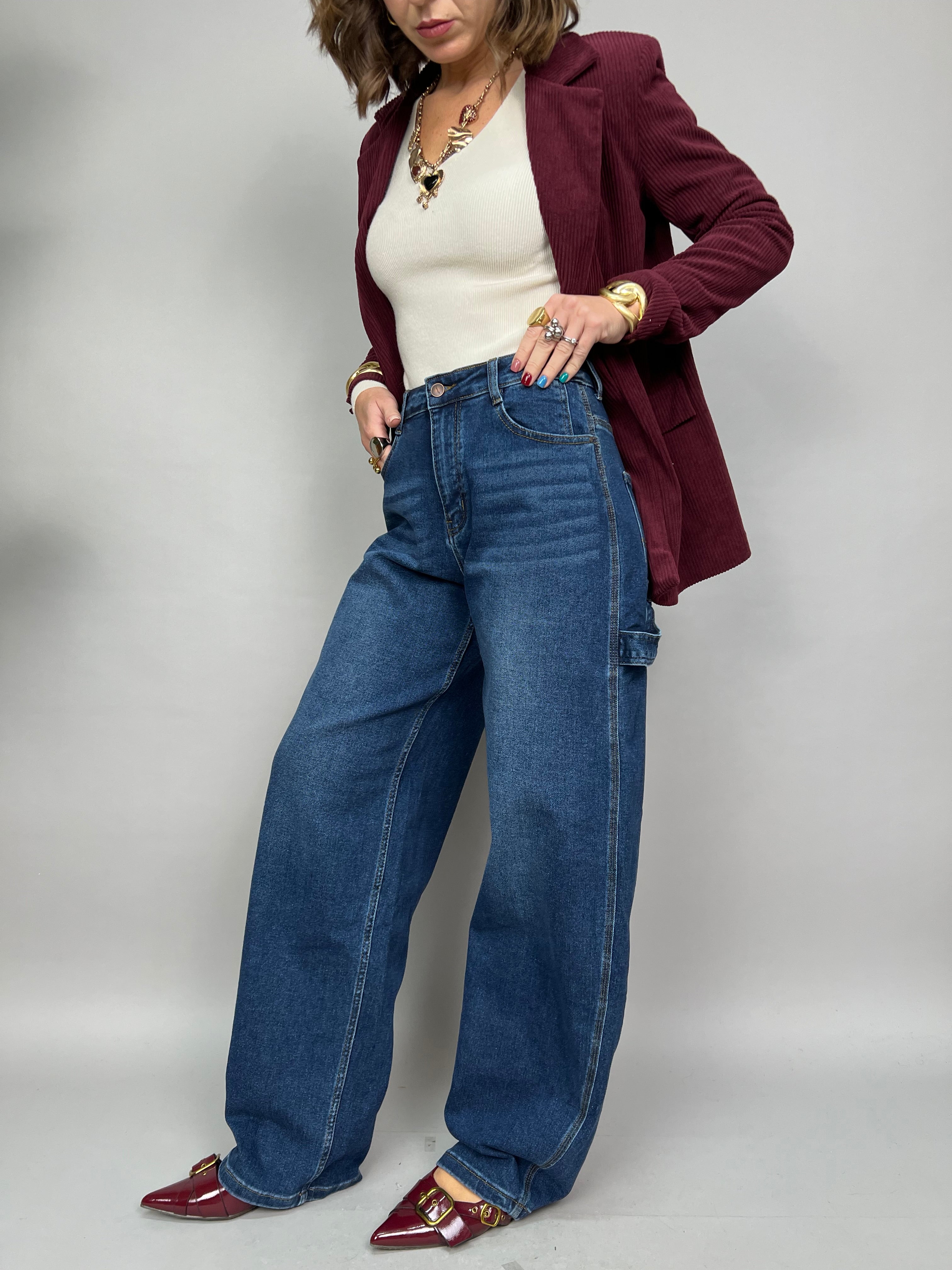Jeans baggy a vita alta e la tesa è elasticizzata.