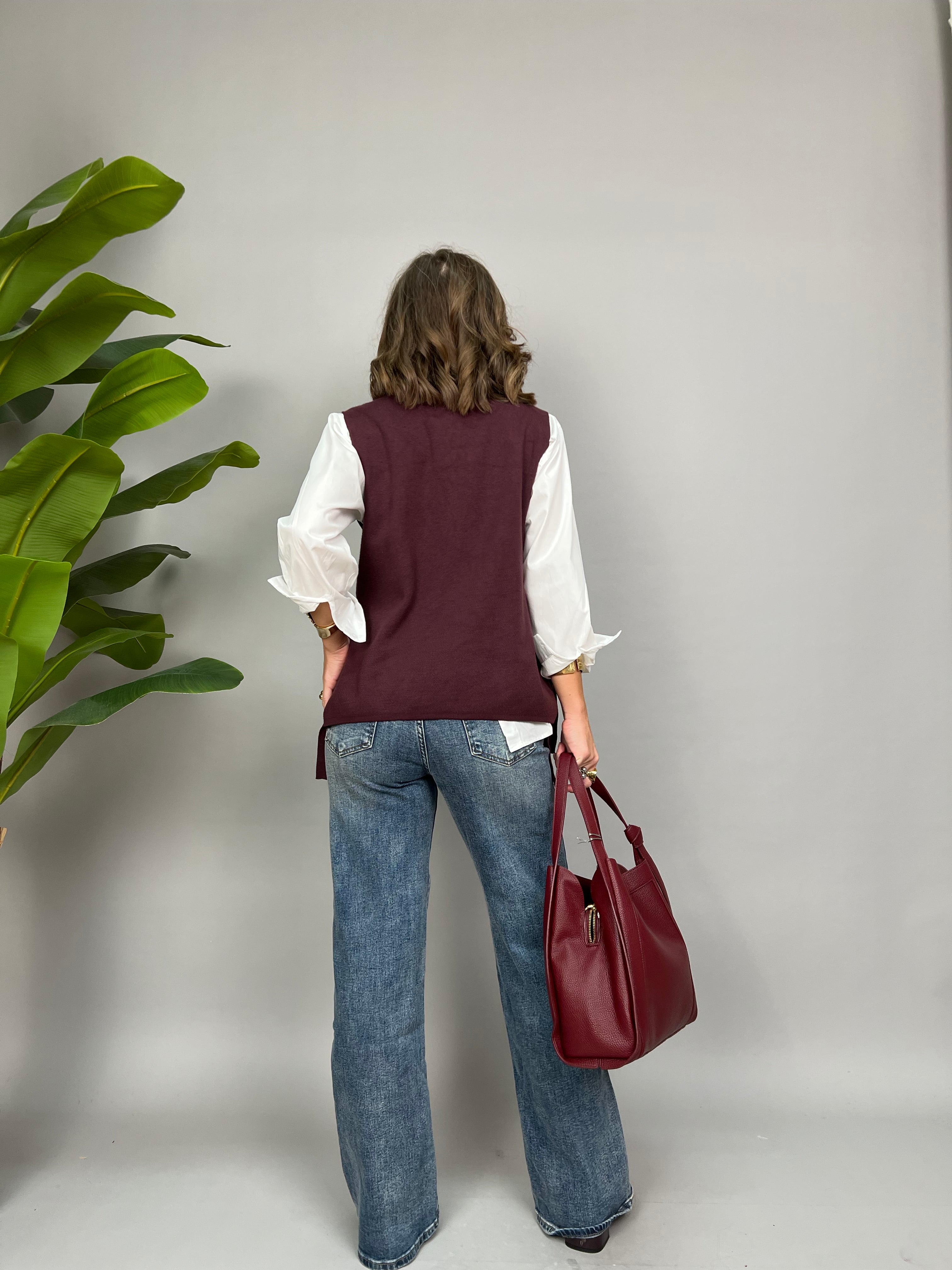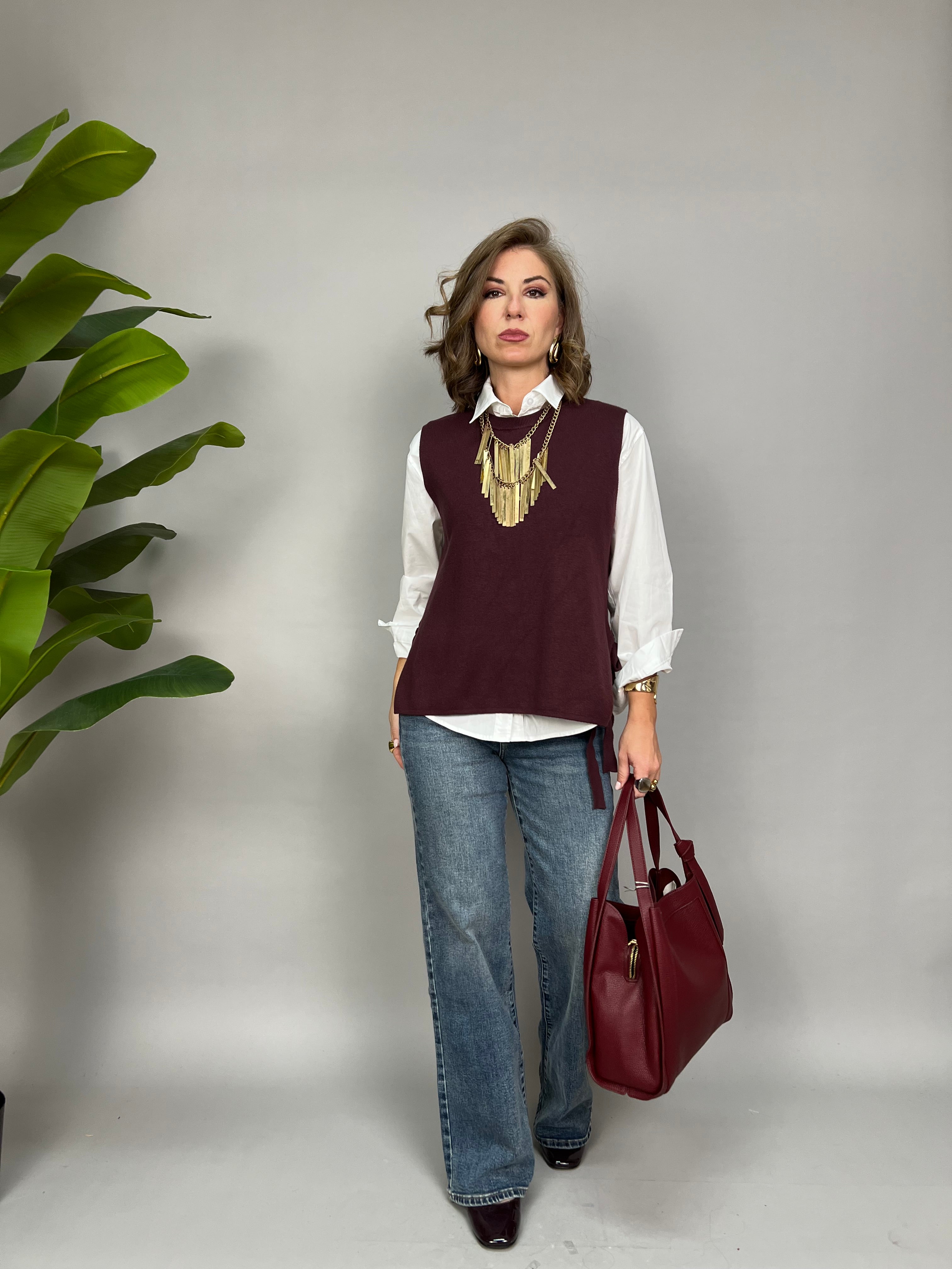 La modella è alta 1,65 e porta la taglia 40/42 (S/M) in foto indossa la tg S