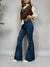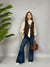 Jeans elasticizzato a vita alta modello bootcut con campana accentuata. Sulla lunghezza ha il taglio vivo