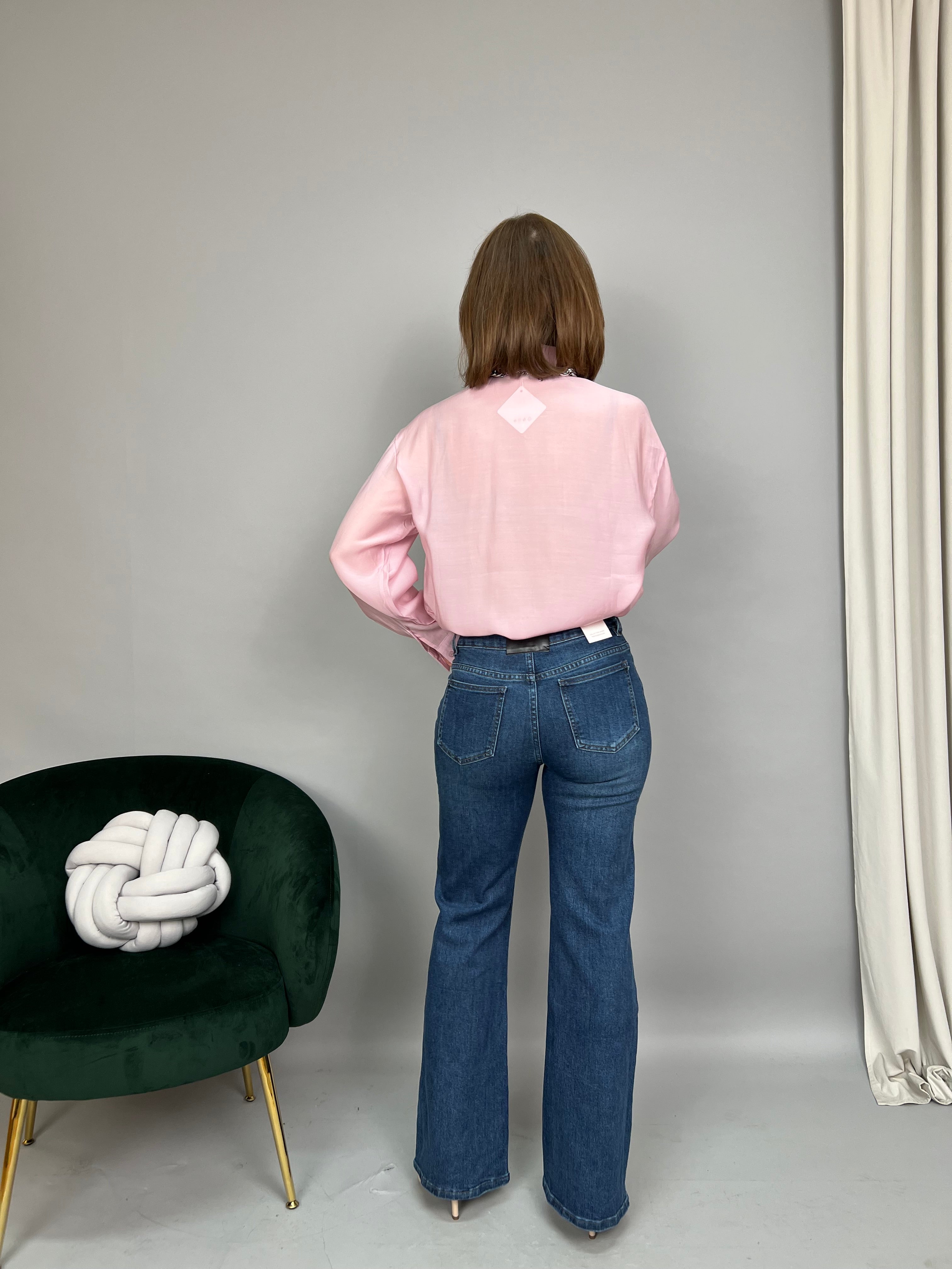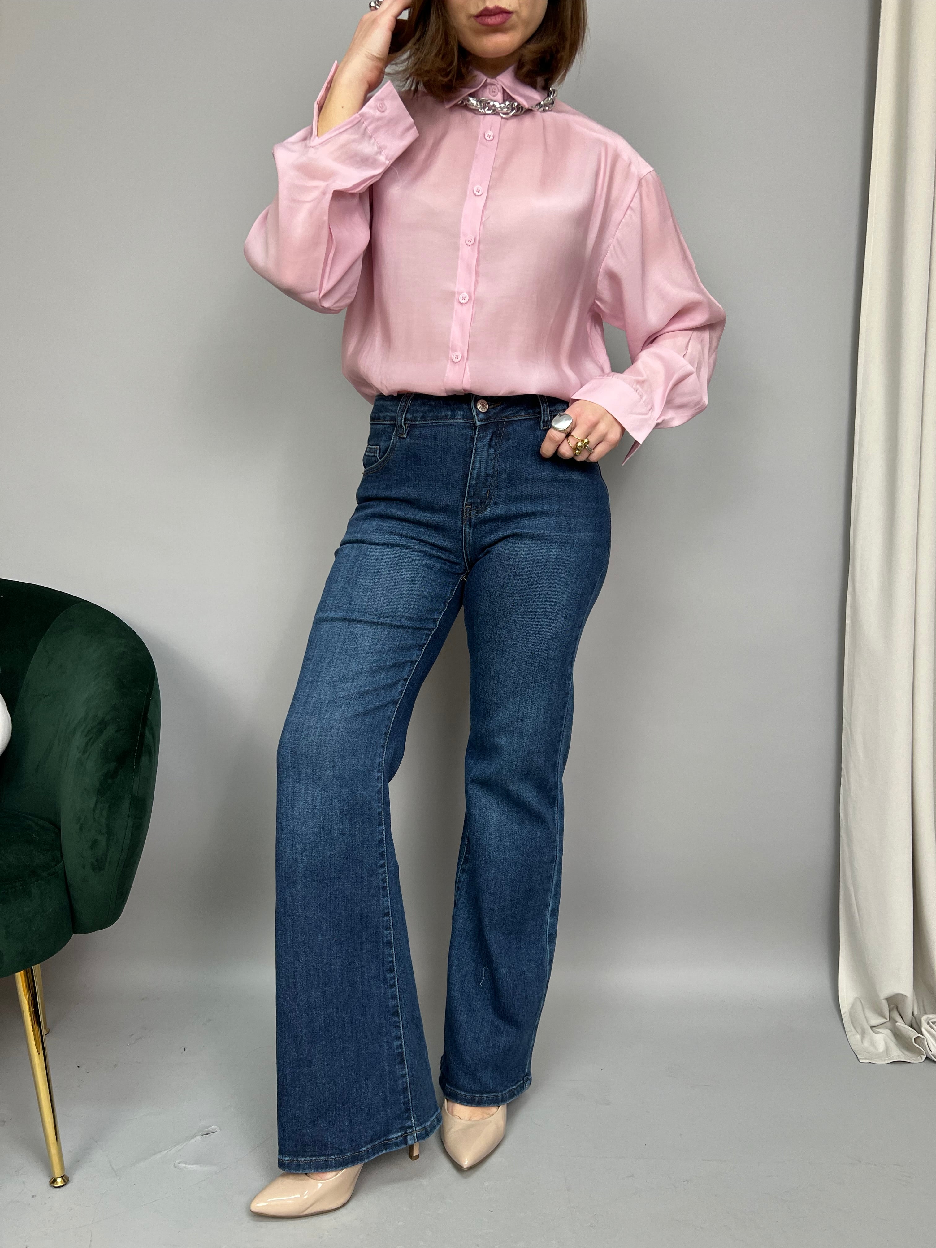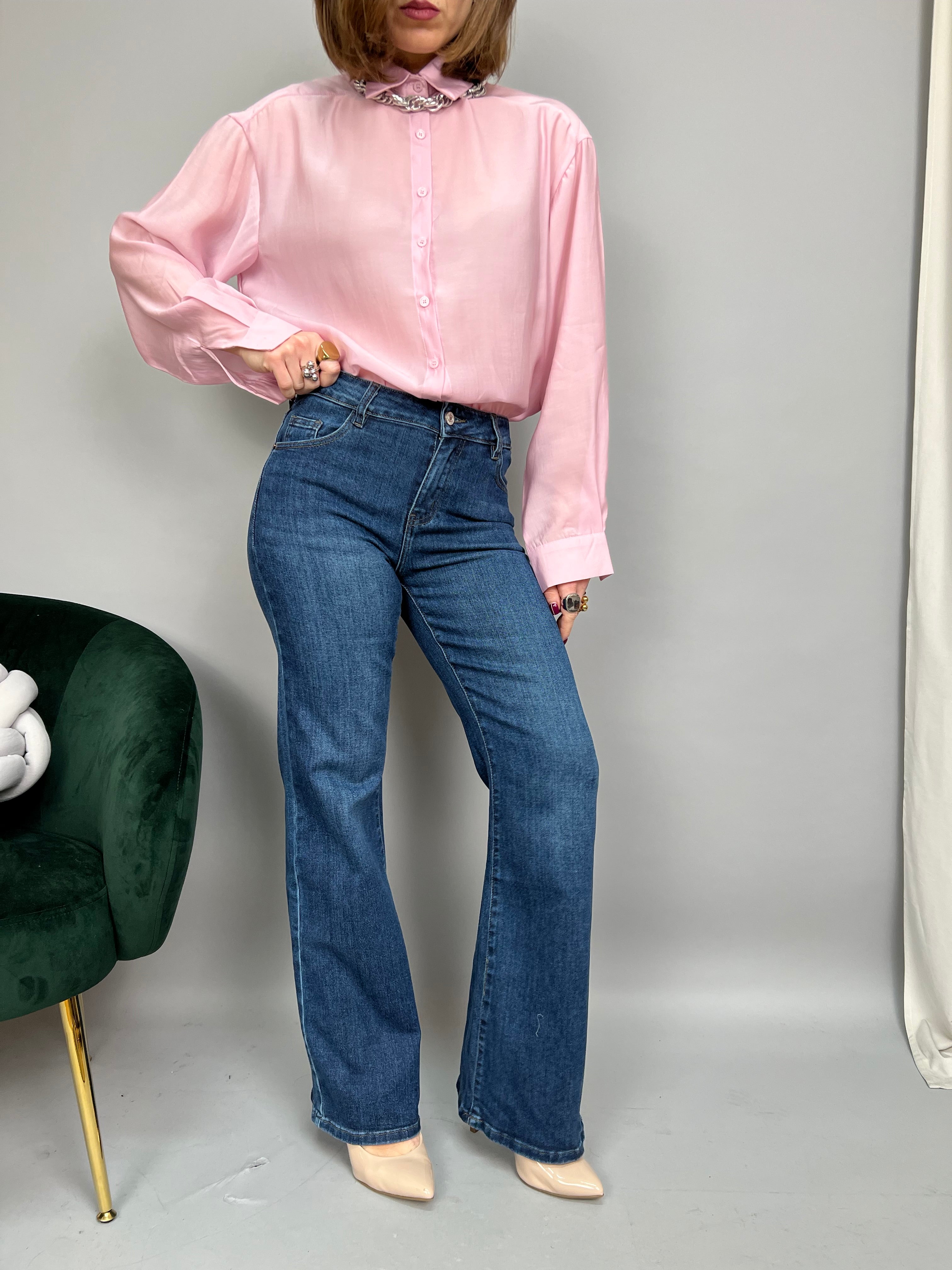 Jeans modello "palazzo" dalla gamba dritta e a vita media. La tela è elasticizzata.