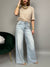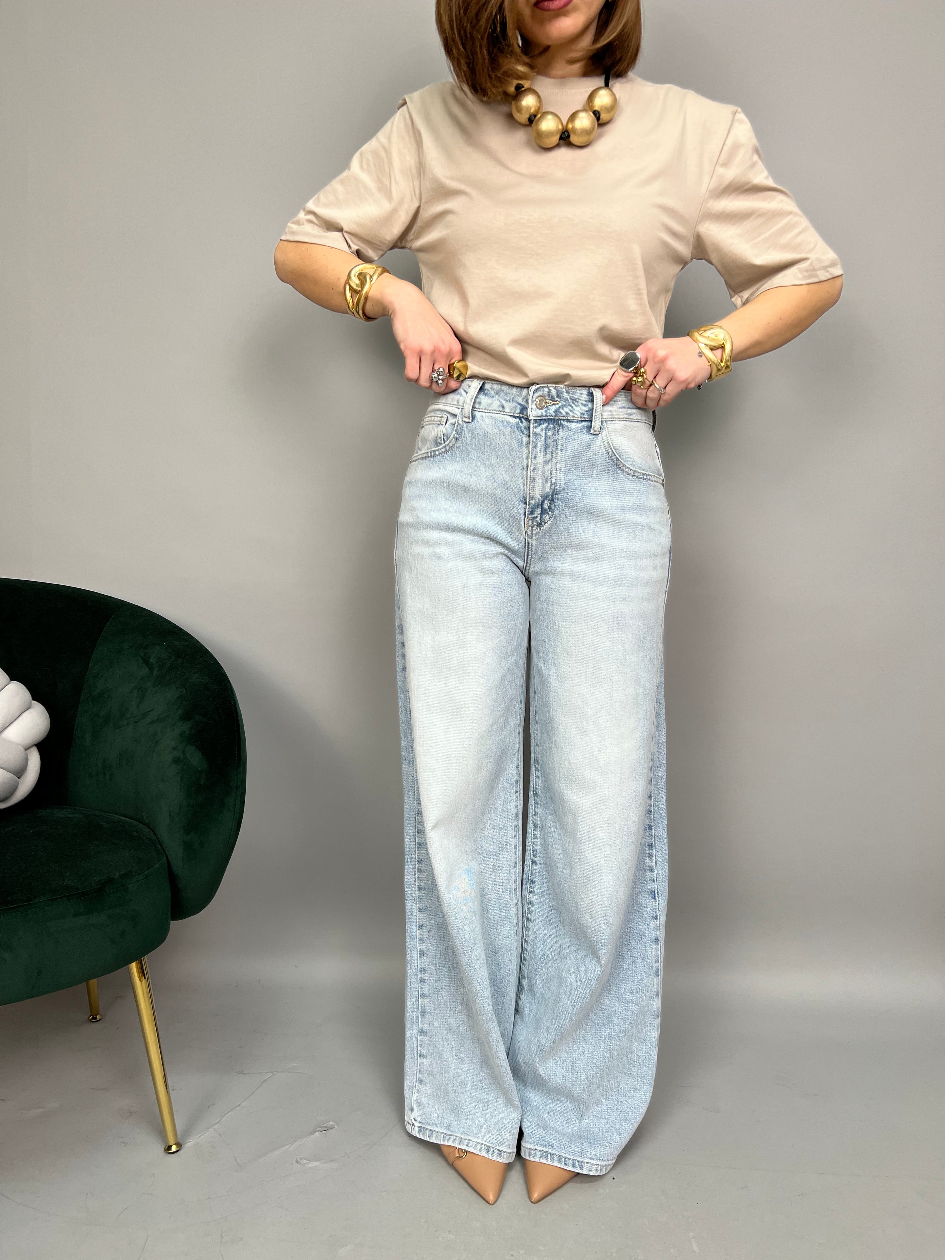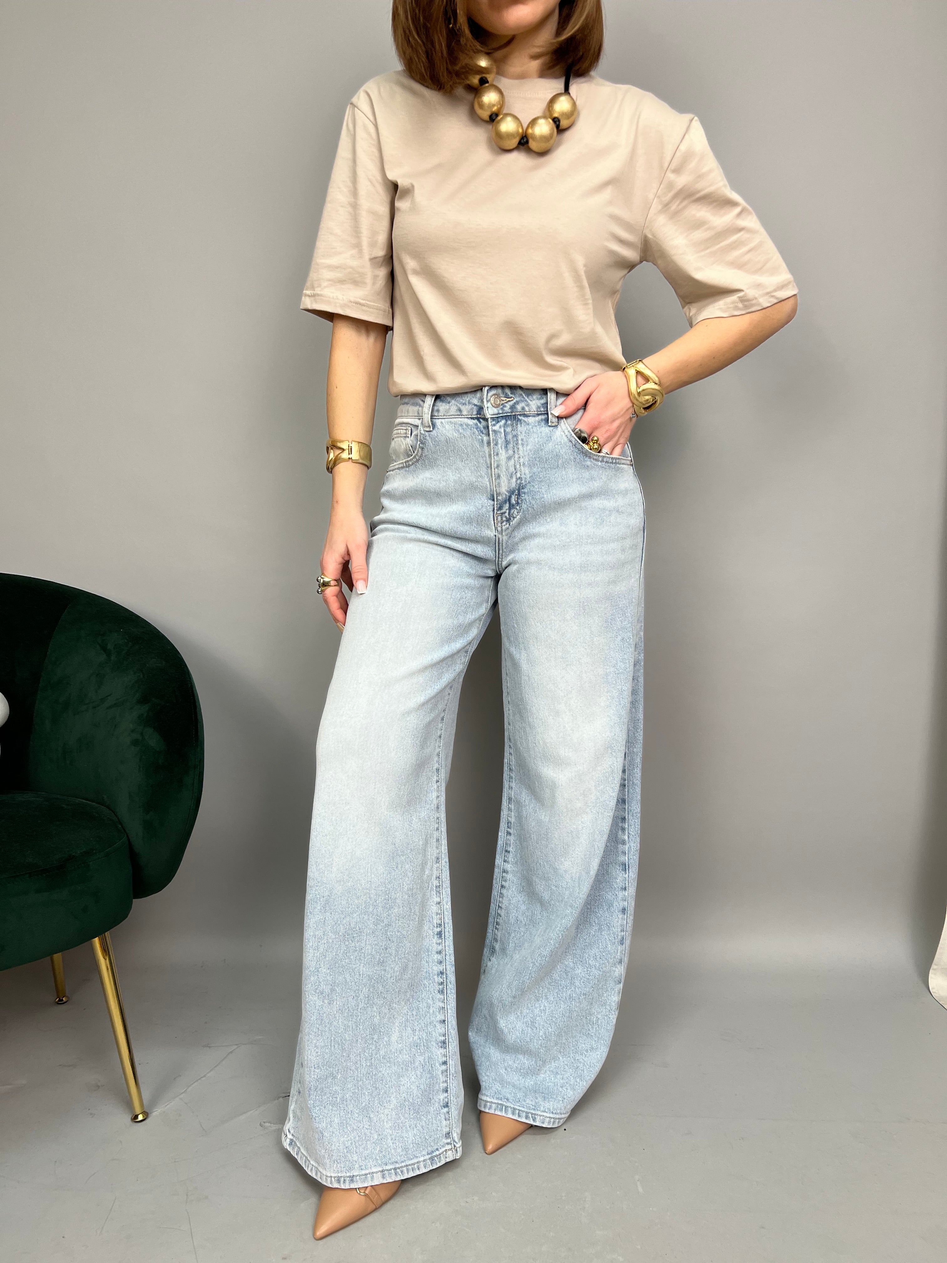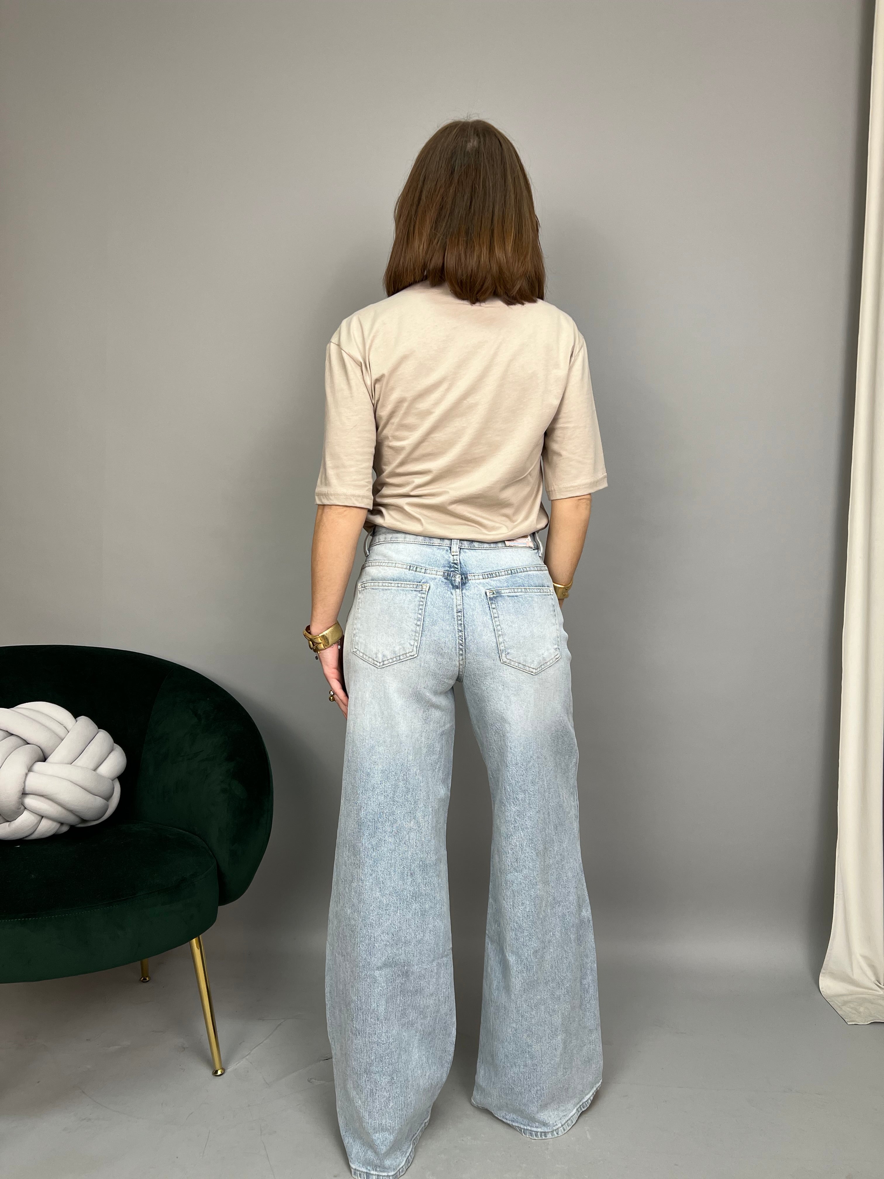Jeans modello "Wide Leg" dalla gamba dritta e a vita alta. La tela è leggermente elasticizzata.