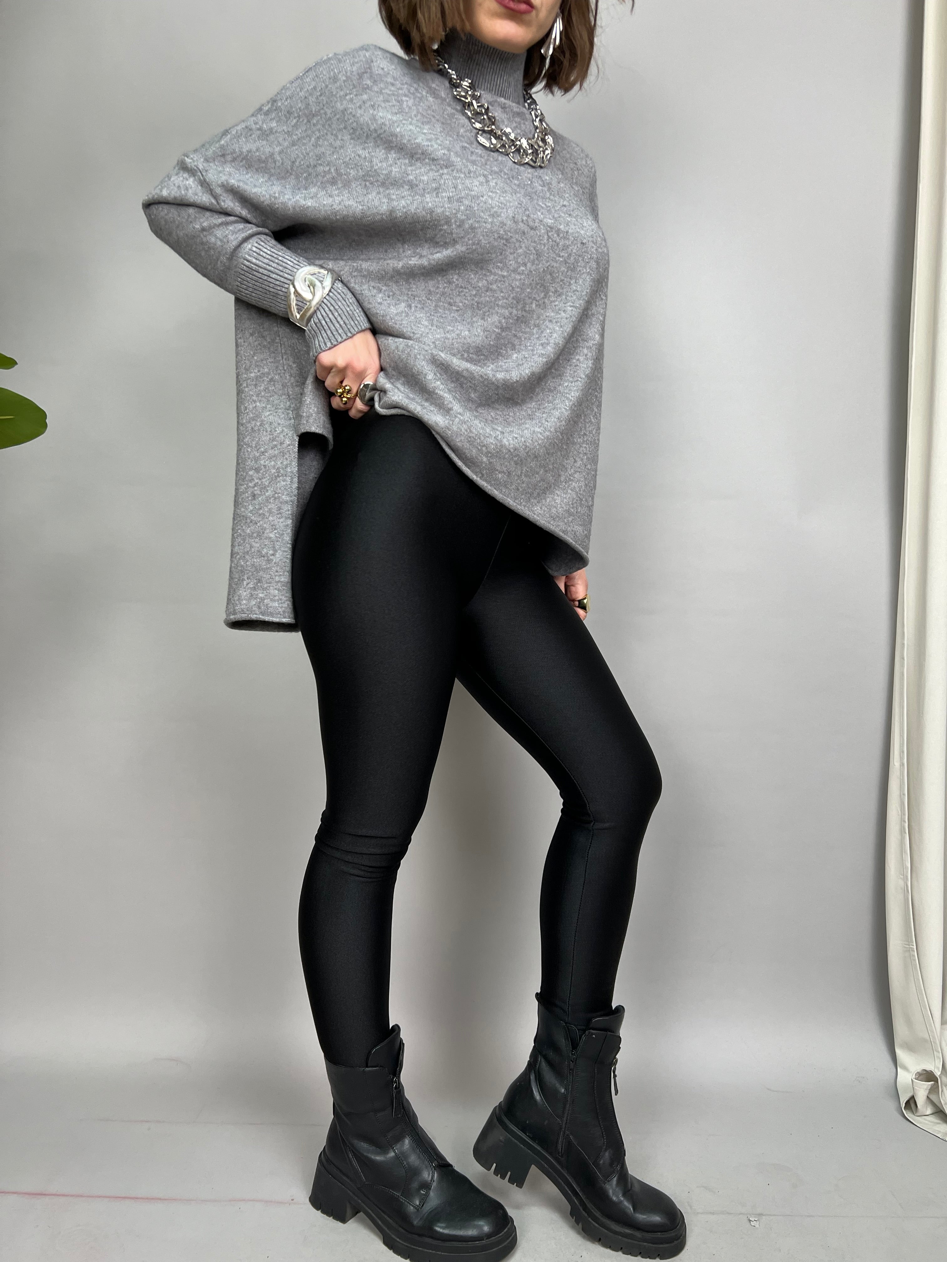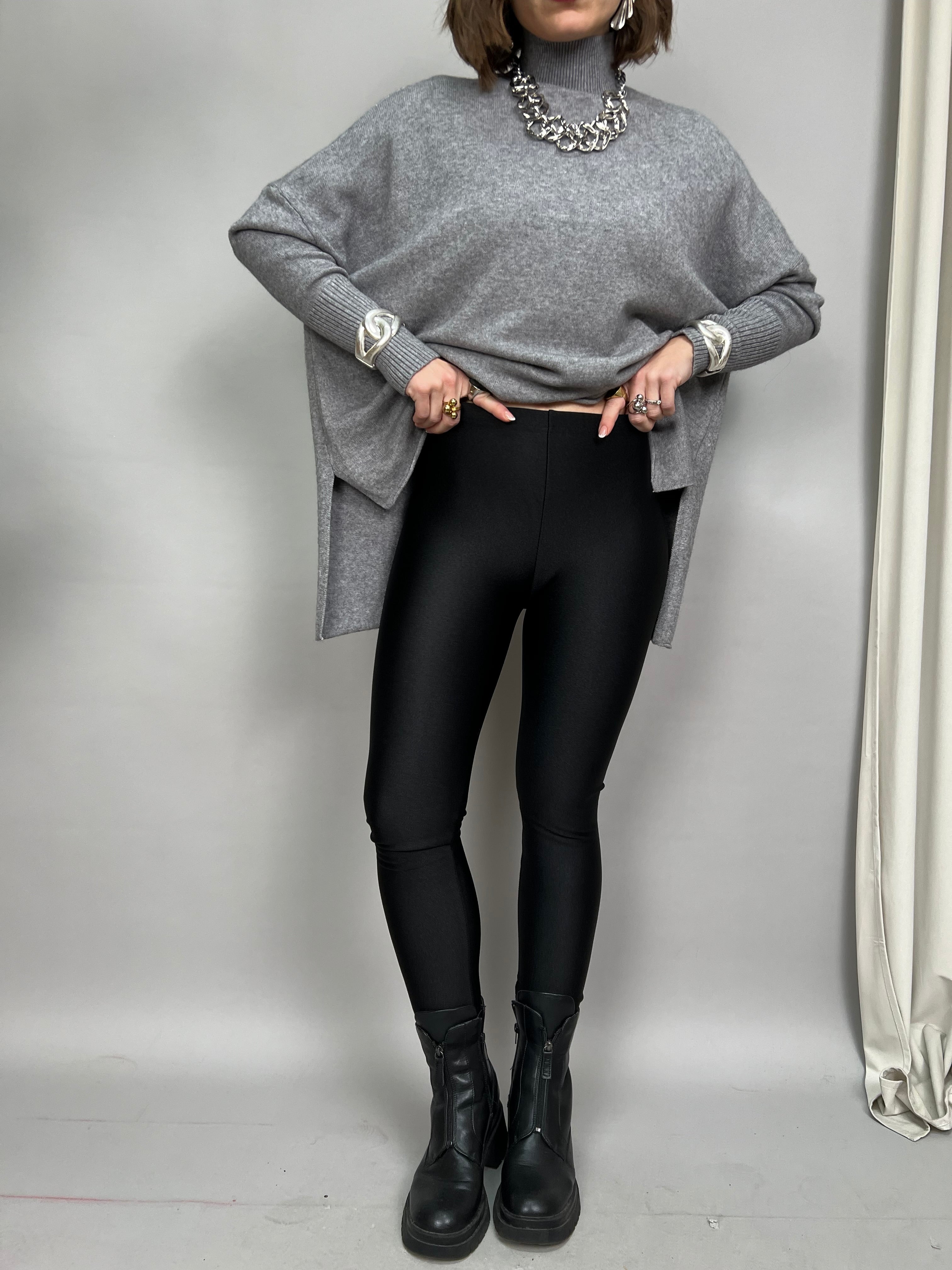 Leggings satinato con elastico in vita. Il modello internamente è felpato.