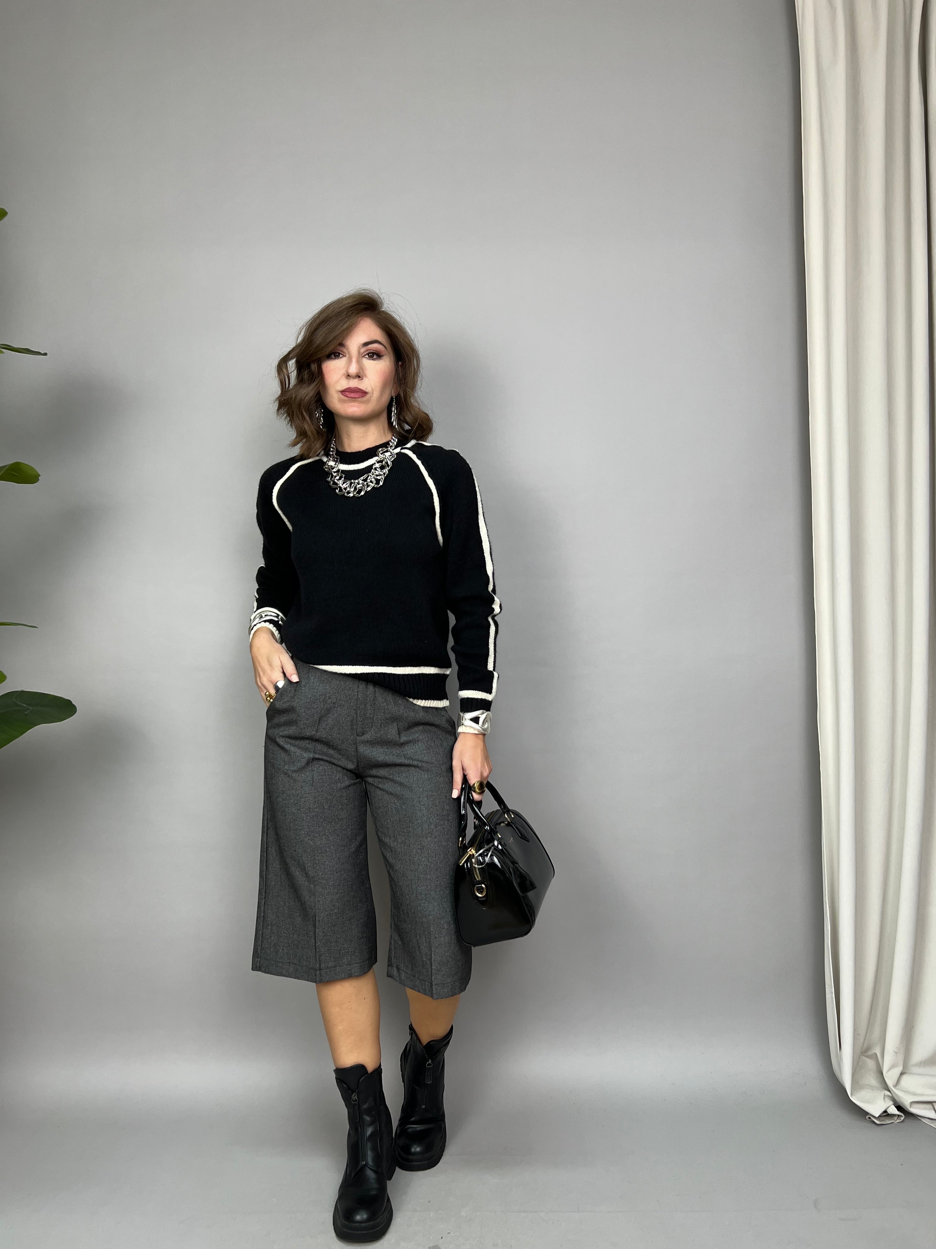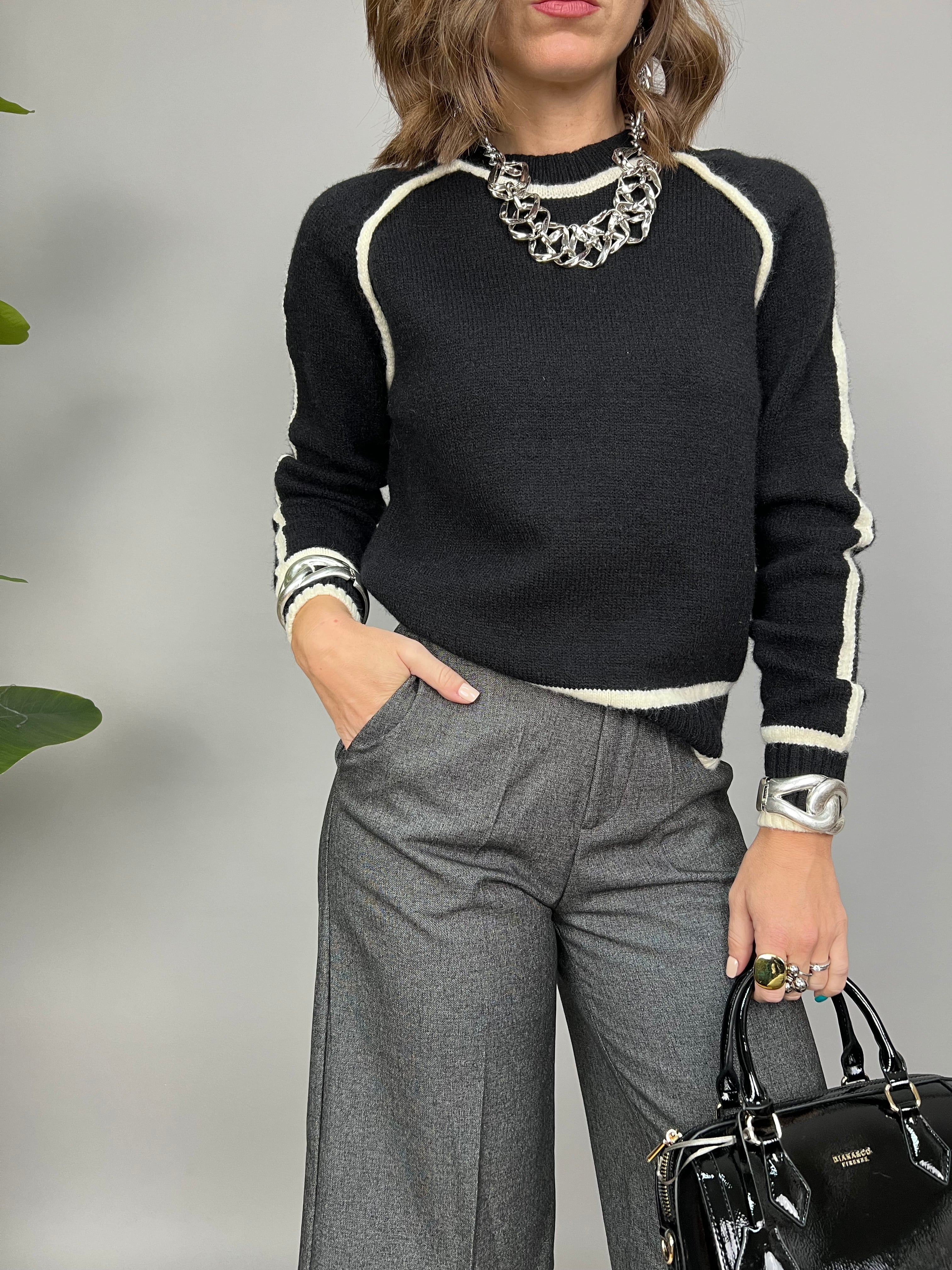 Maglione caldo e morbido con maniche "raglan" e rifiniture a contrasto