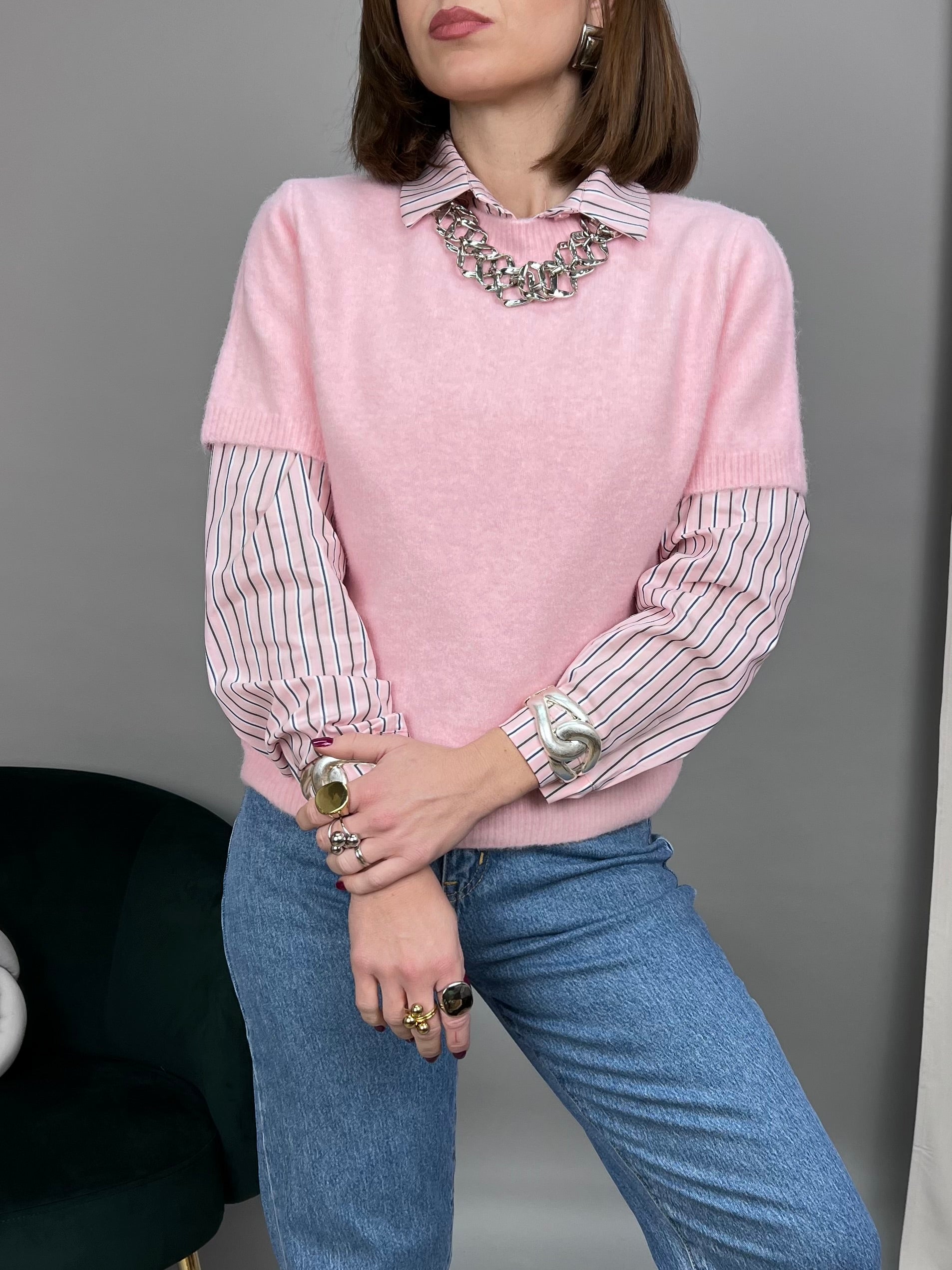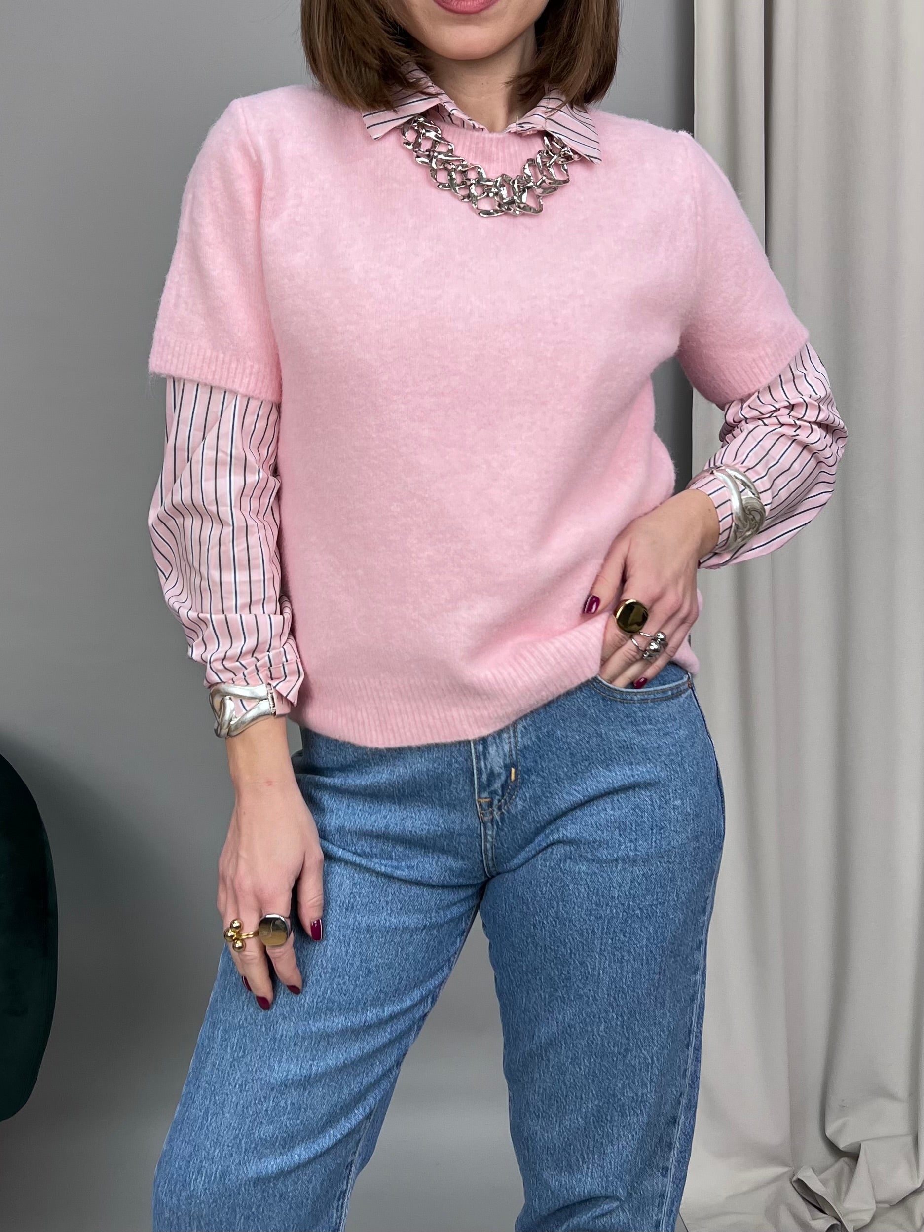 Maglione collo tondo e maniche corte. Realizzato in maglia calda e morbida. La vestibilità è comoda.