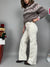Pantalone in velluto elasticizzato, modello palazzo. La vita è medio-alta.
