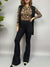 Pantalone elasticizzato in tessuto simil punto milano, modello bootcut con elastico in vita