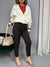 Pantalone modello "carrot fit", dalla vestibilità comoda che va a stringersi sulla lunghezza, con un risvolto fisso. Presenta pinces frontali, tasche laterali ed elastico in vita.