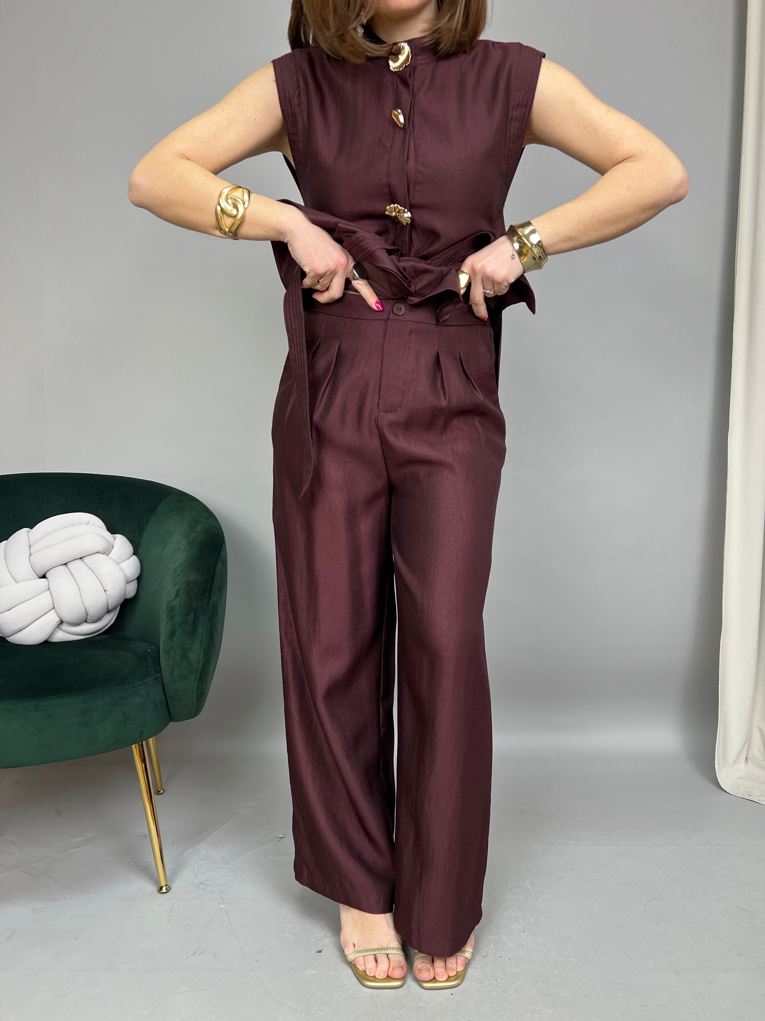 Set Coordinato in tessuto lucido e brillante, composto da: