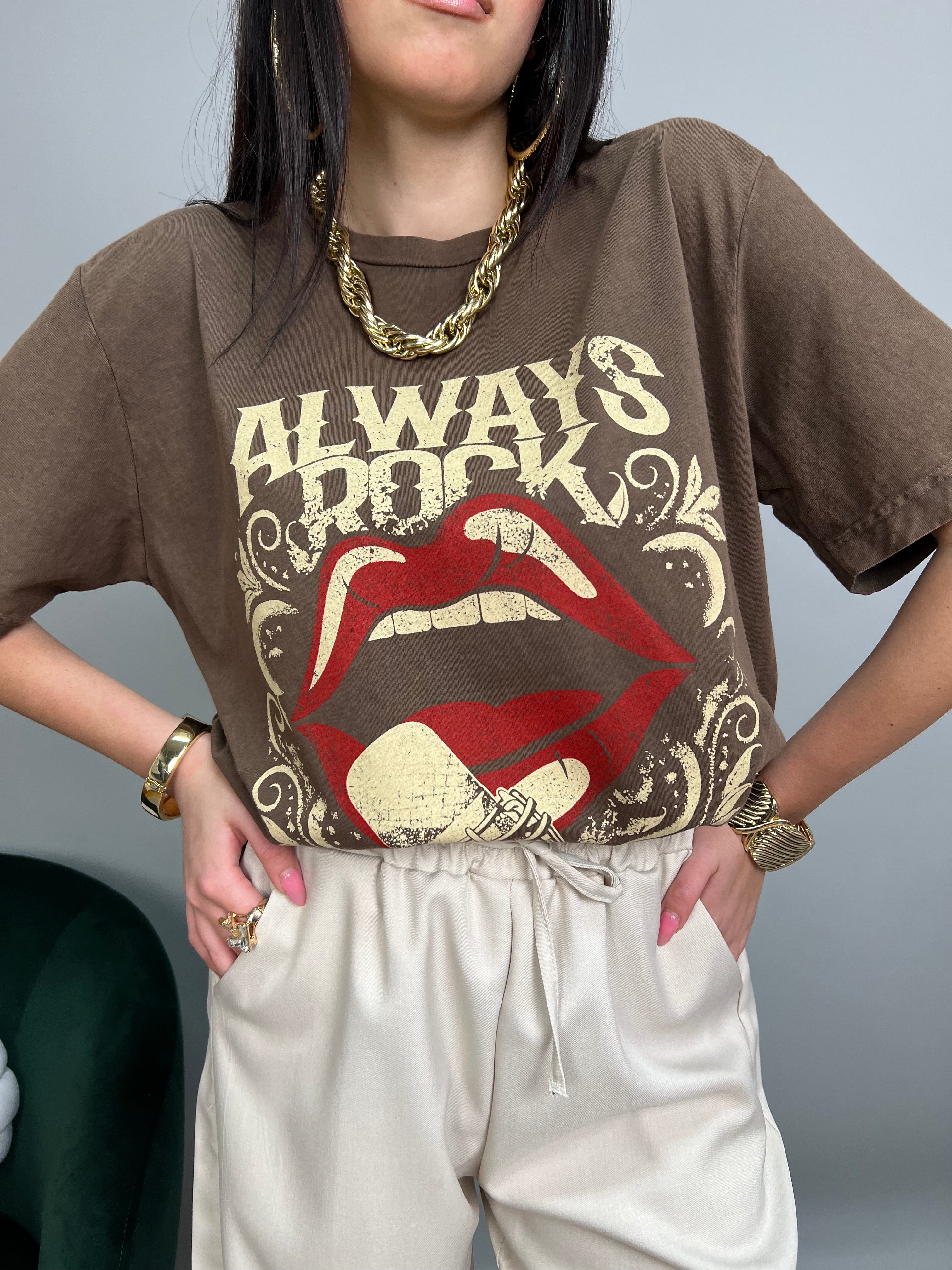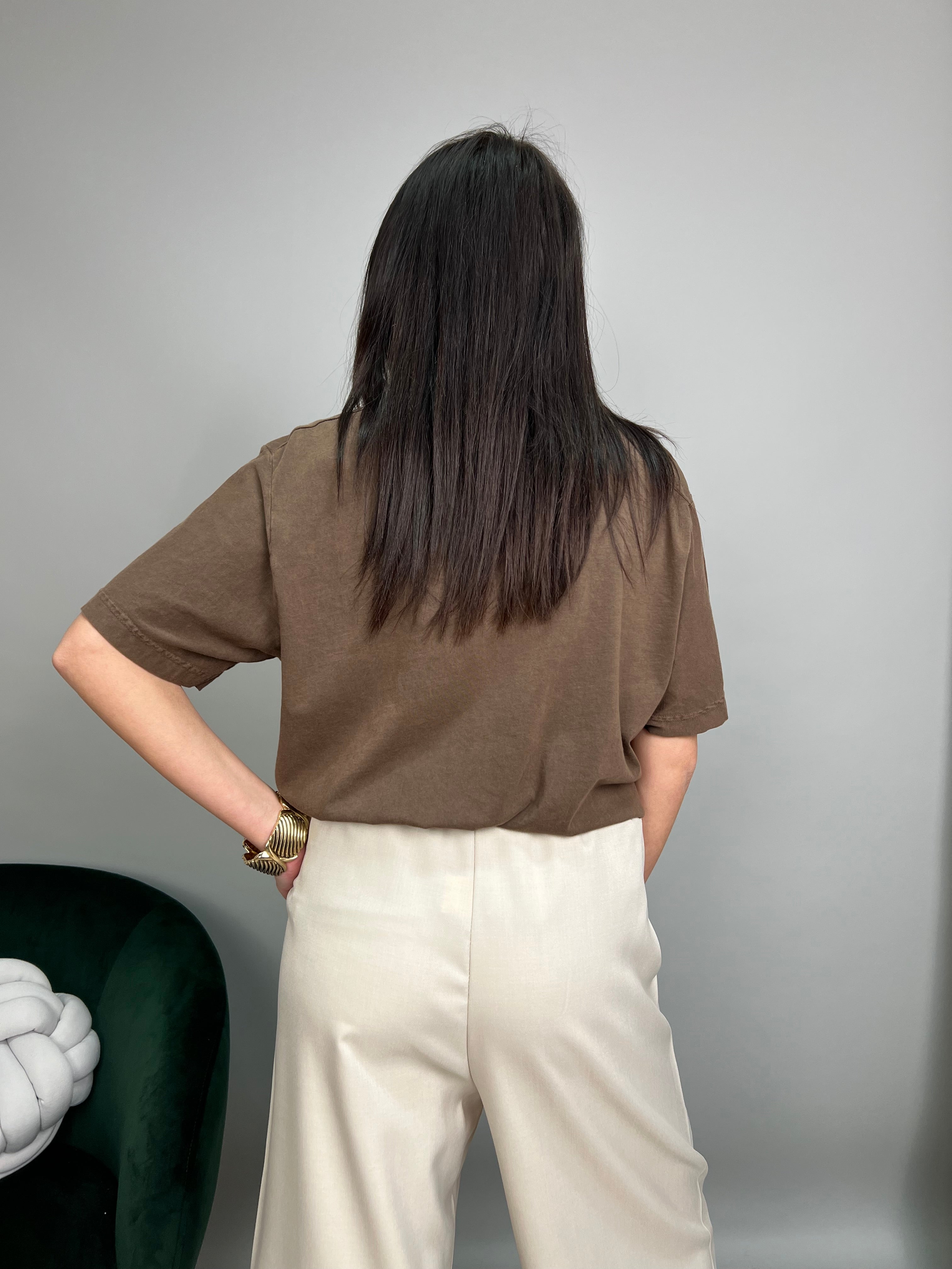 T-shirt in cotone con collo tondo e manica corta. Il modello è realizzato in tessuto Stone Washed e presenta una stampa colorata sulla parte frontale. La vestibilità è comoda e regolare.